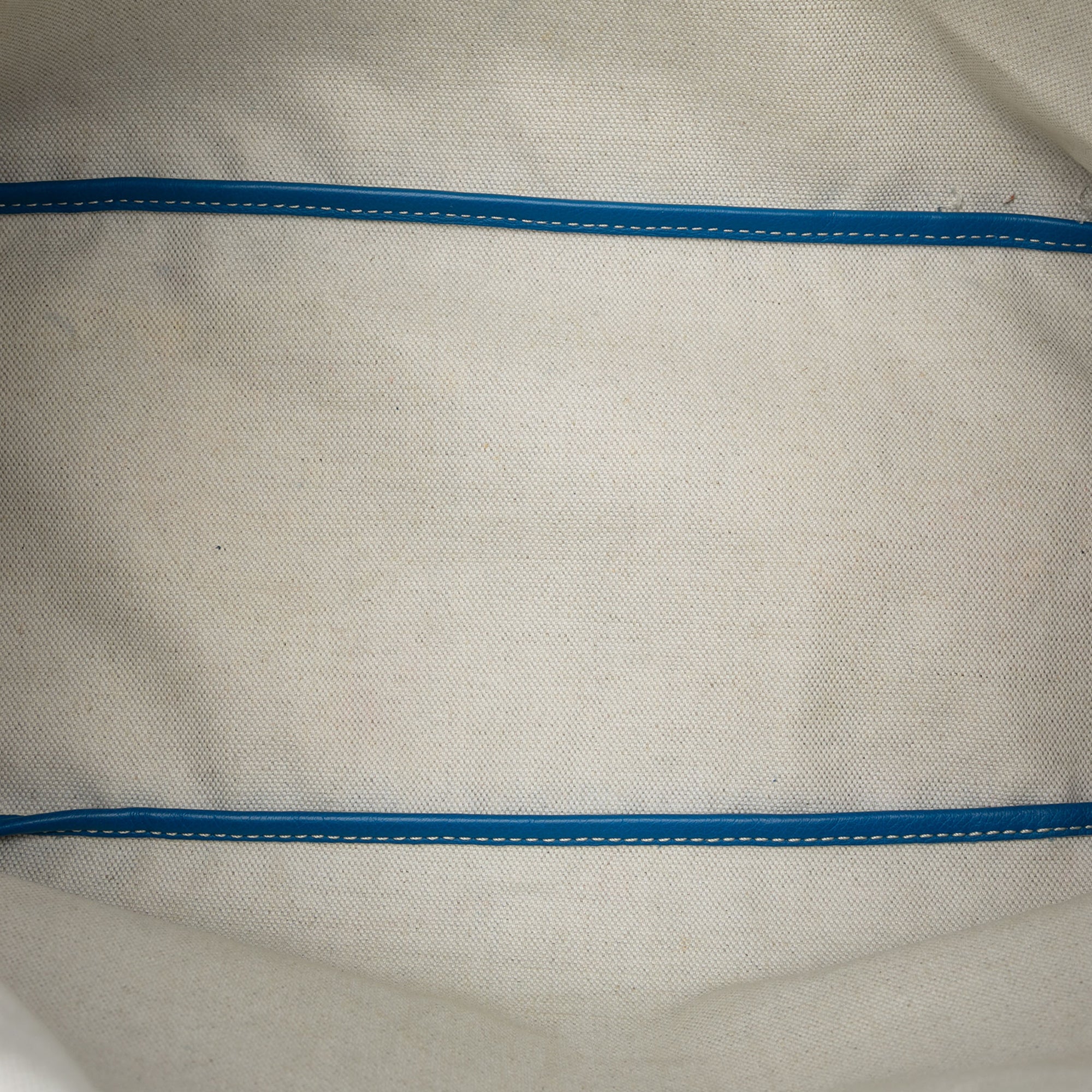 The Saint Louis PM features a coated canvas body, flat leather handles, an open top, and a detachable flap pouch. Retail Price: 3650.00