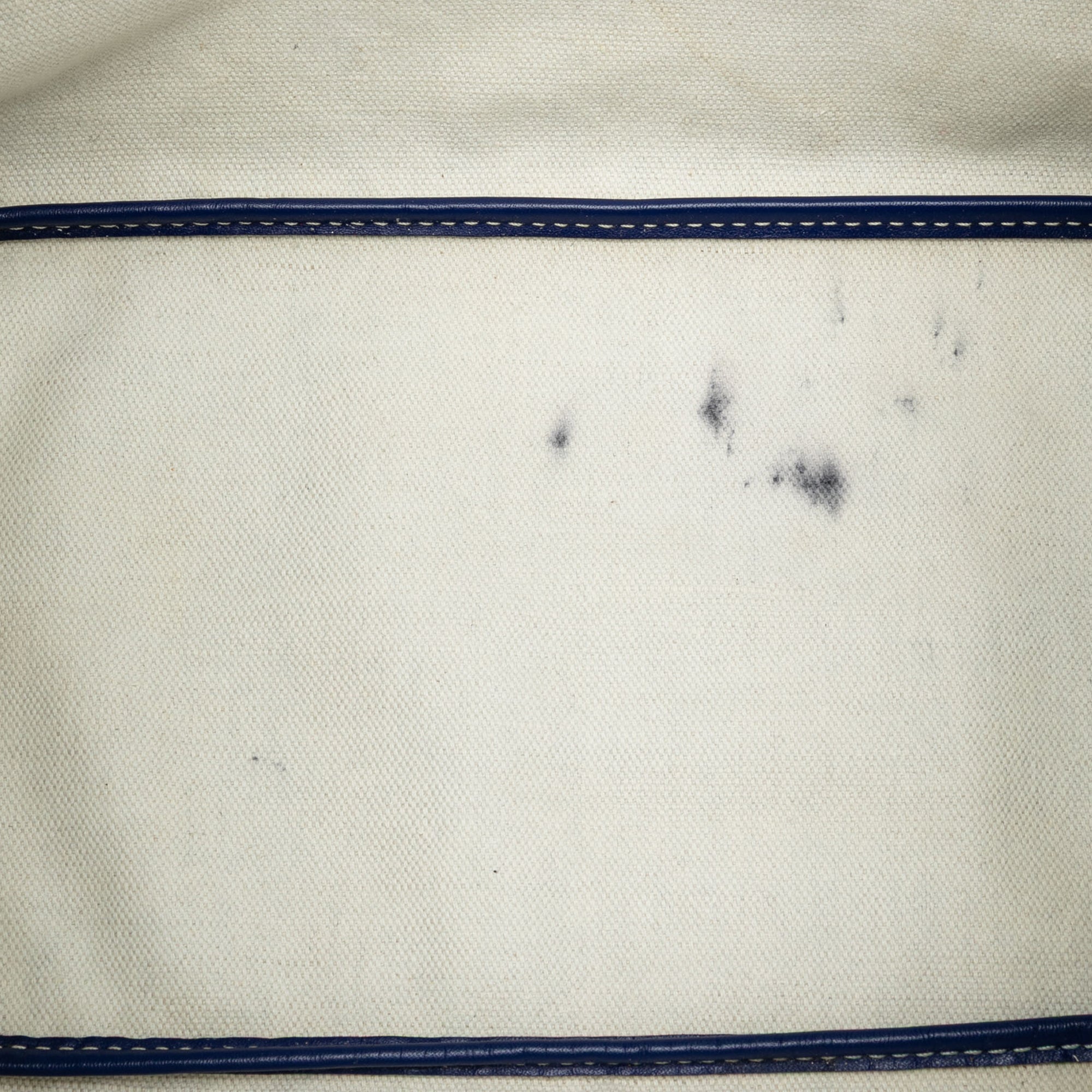The Saint Louis PM features a coated canvas body with leather trim, flat leather straps, an open top, and an interior pouch. Retail Price: 2900.00