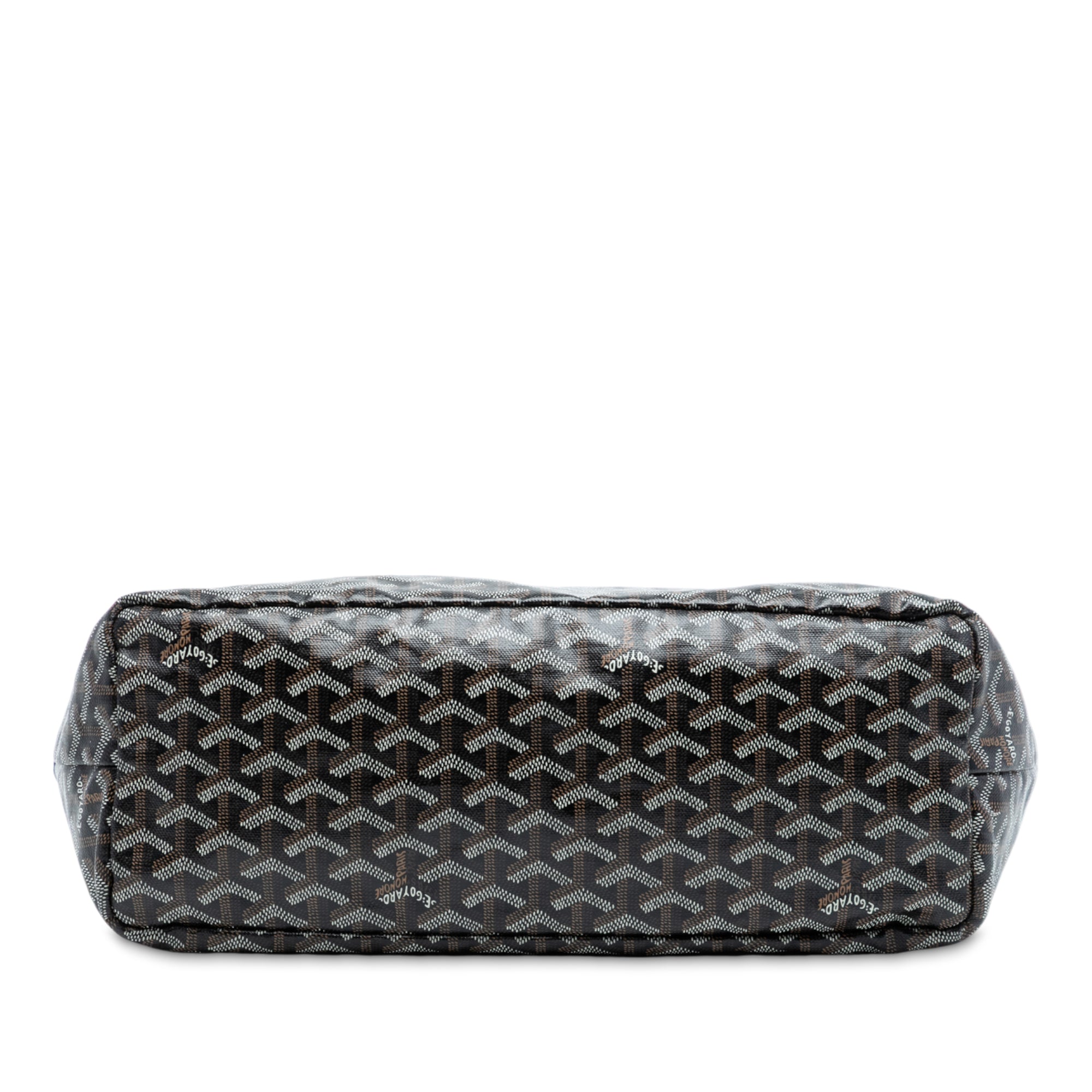 The Saint Louis PM features a coated canvas body, flat leather handles, an open top, and a detachable flap pouch. Retail Price: 3660.00