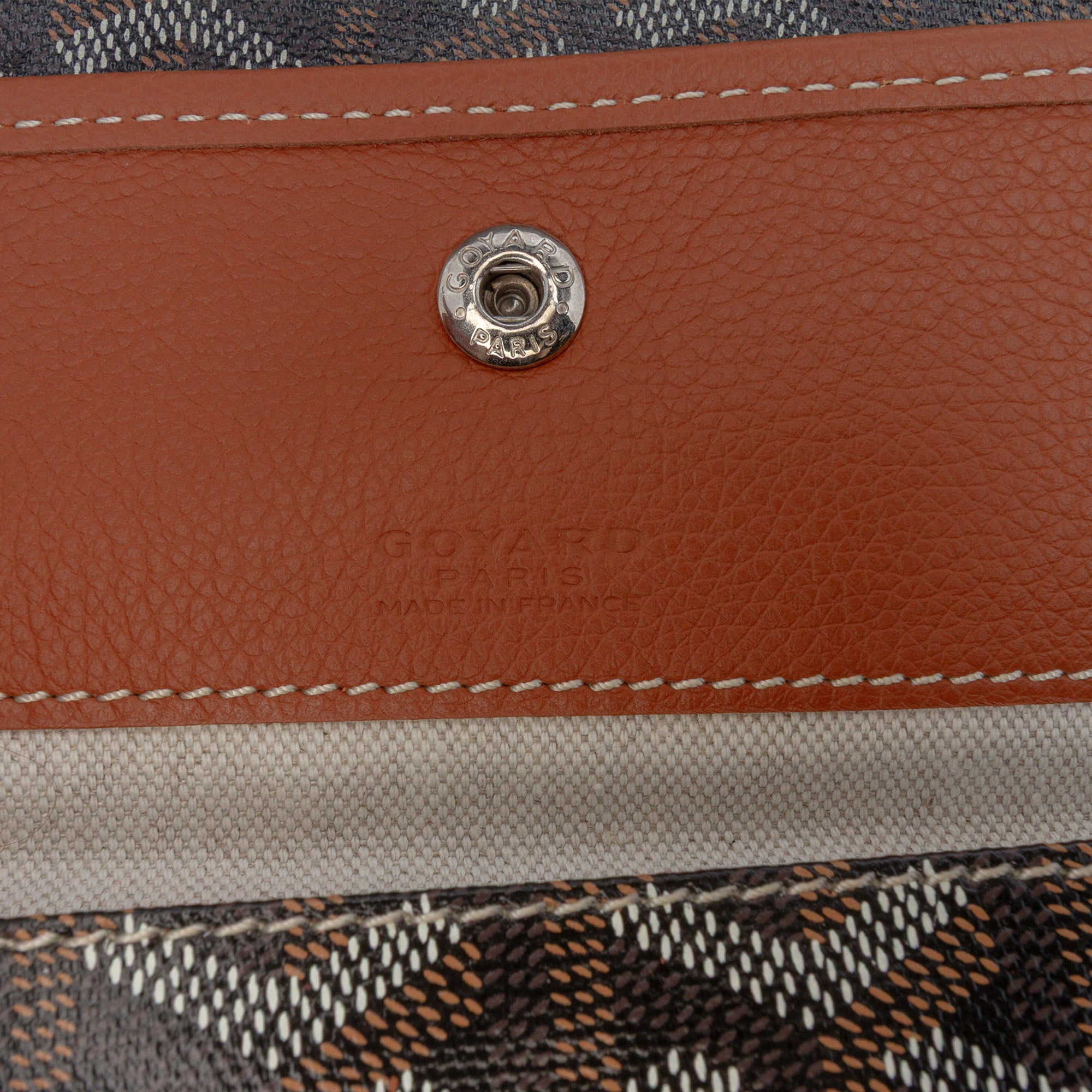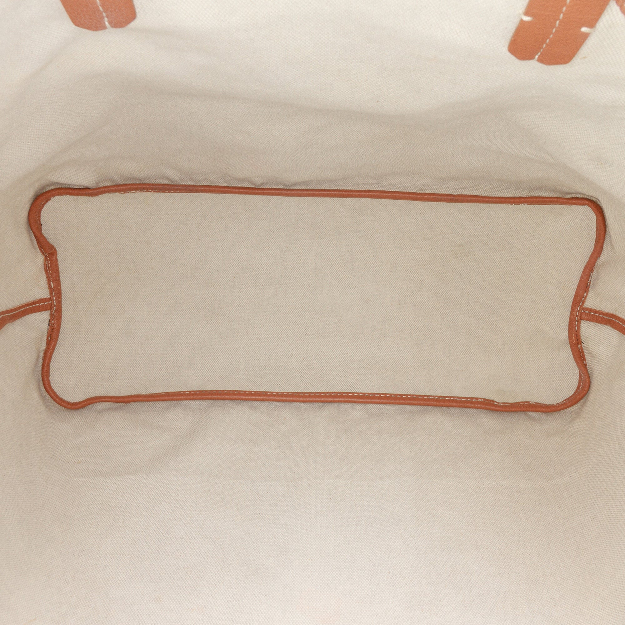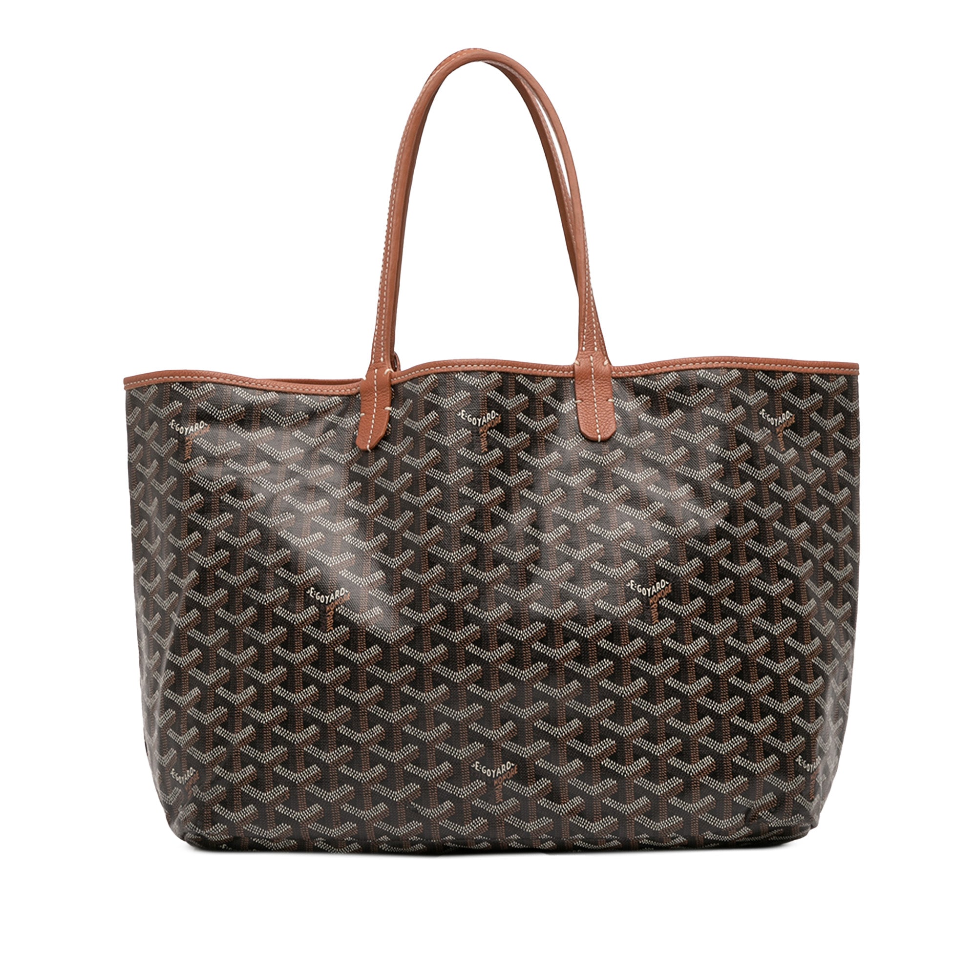 The Saint Louis PM features a coated canvas body with leather trim, flat leather shoulder straps, and an open top and a detachable pouch inclusion. Retail Price: 3355.00