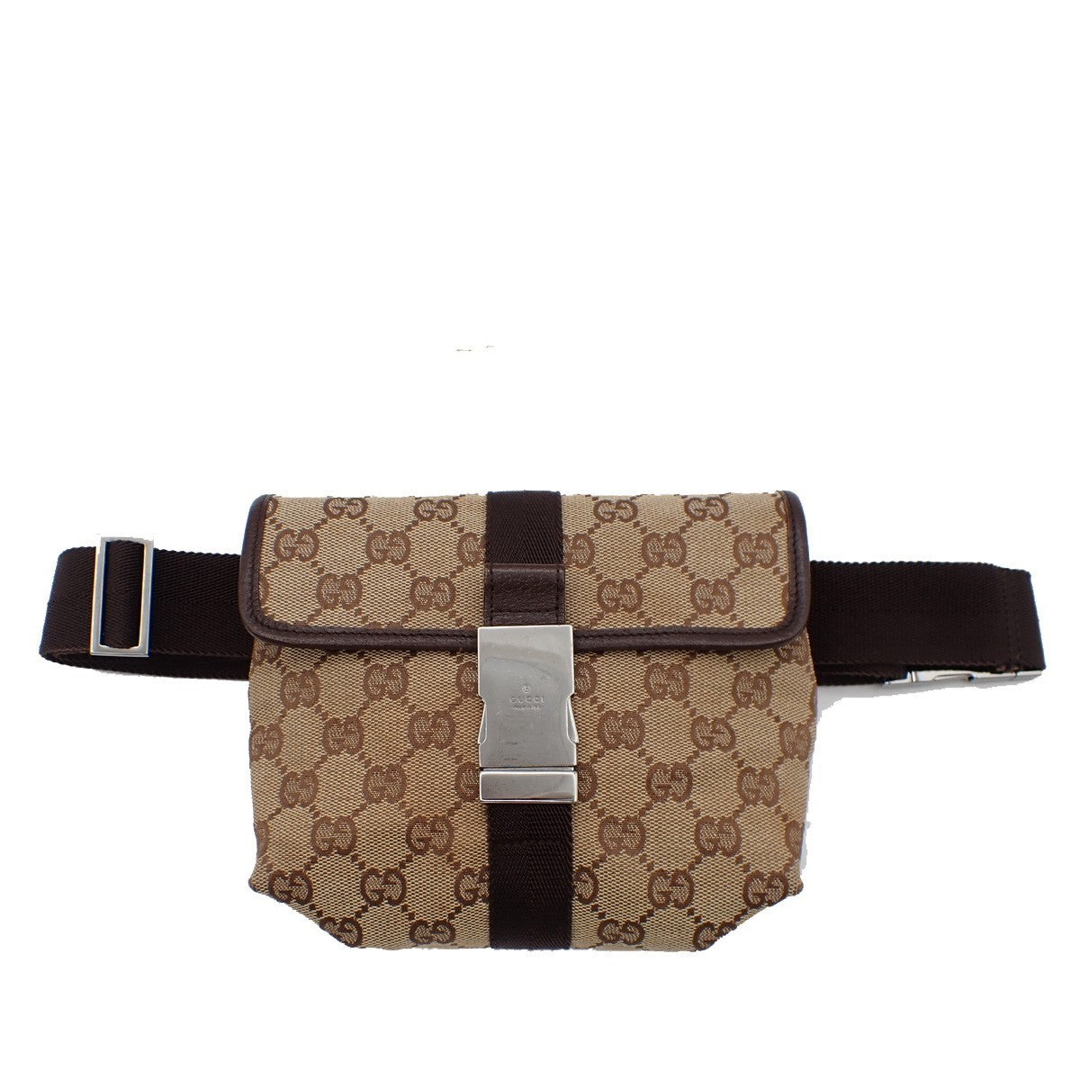 Brand : Gucci Model : Buckle Belt Bag Style : GG Canvas Serial number : 121336 200047 Inclusions : Zip pocket inside
