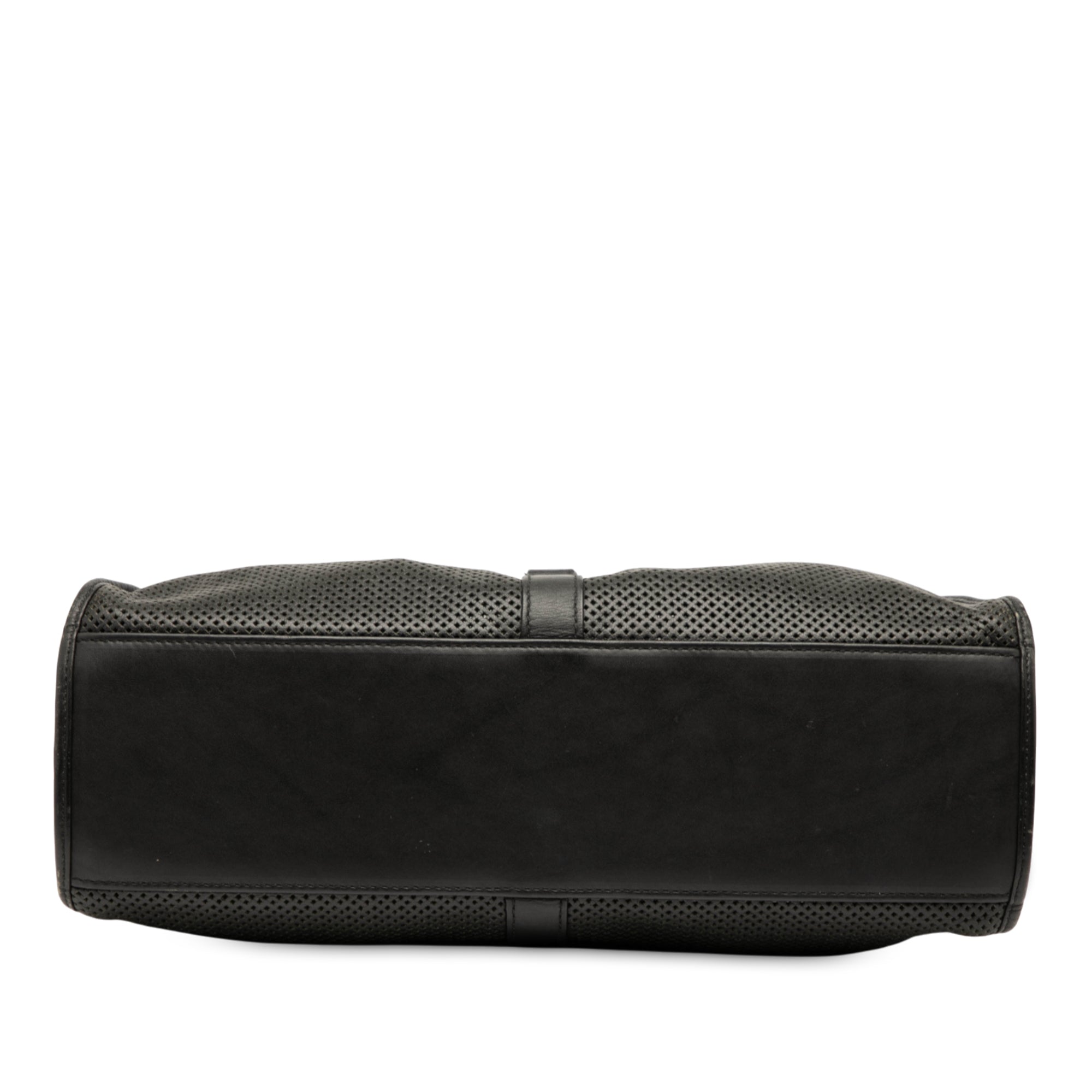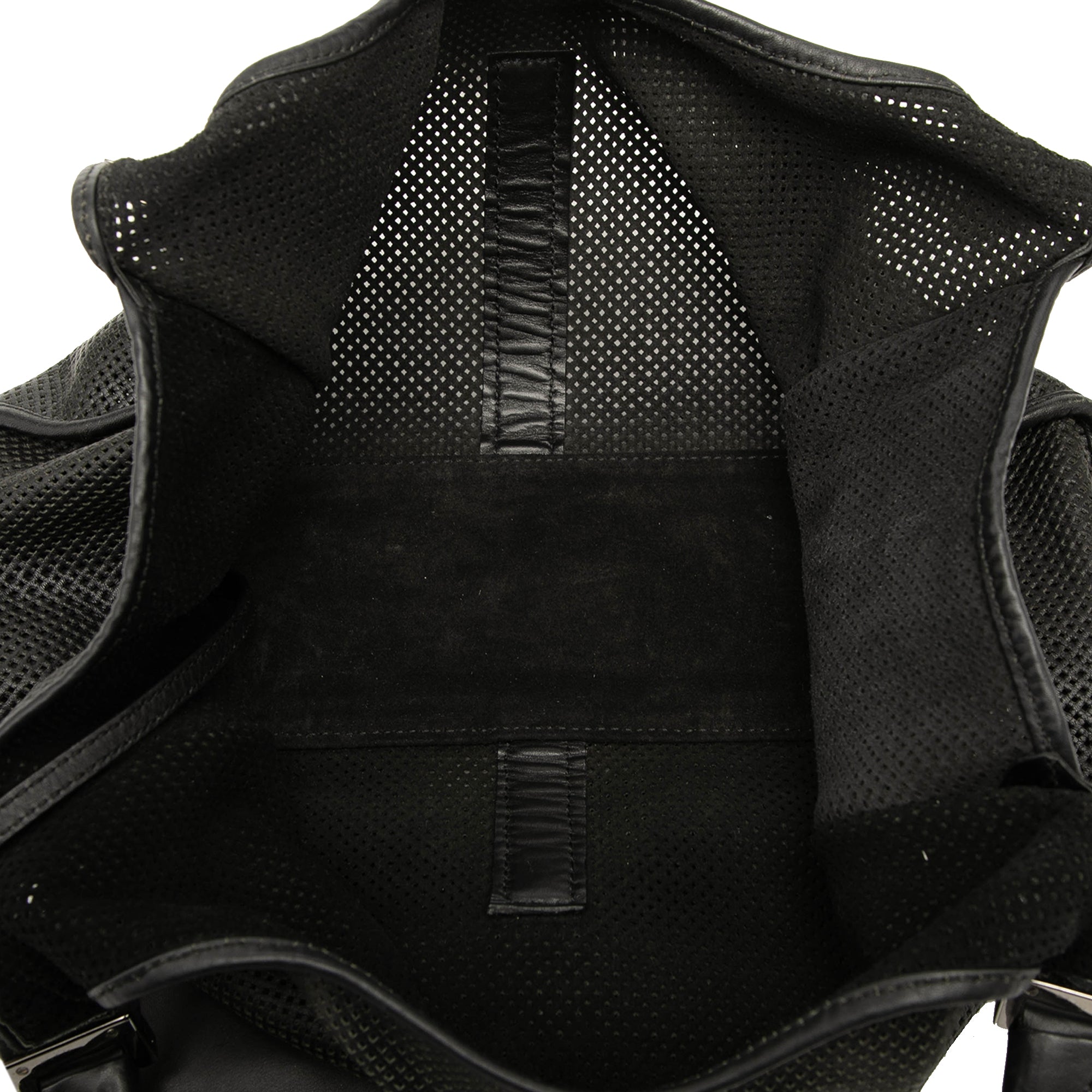 The Jackie features a perforated leather body, rolled leather straps, an open top with a leather strap and a push lock closure, an interior zip pocket, and a pouch inclusion. Inclusion: Dust bag. Retail Price: 890.00