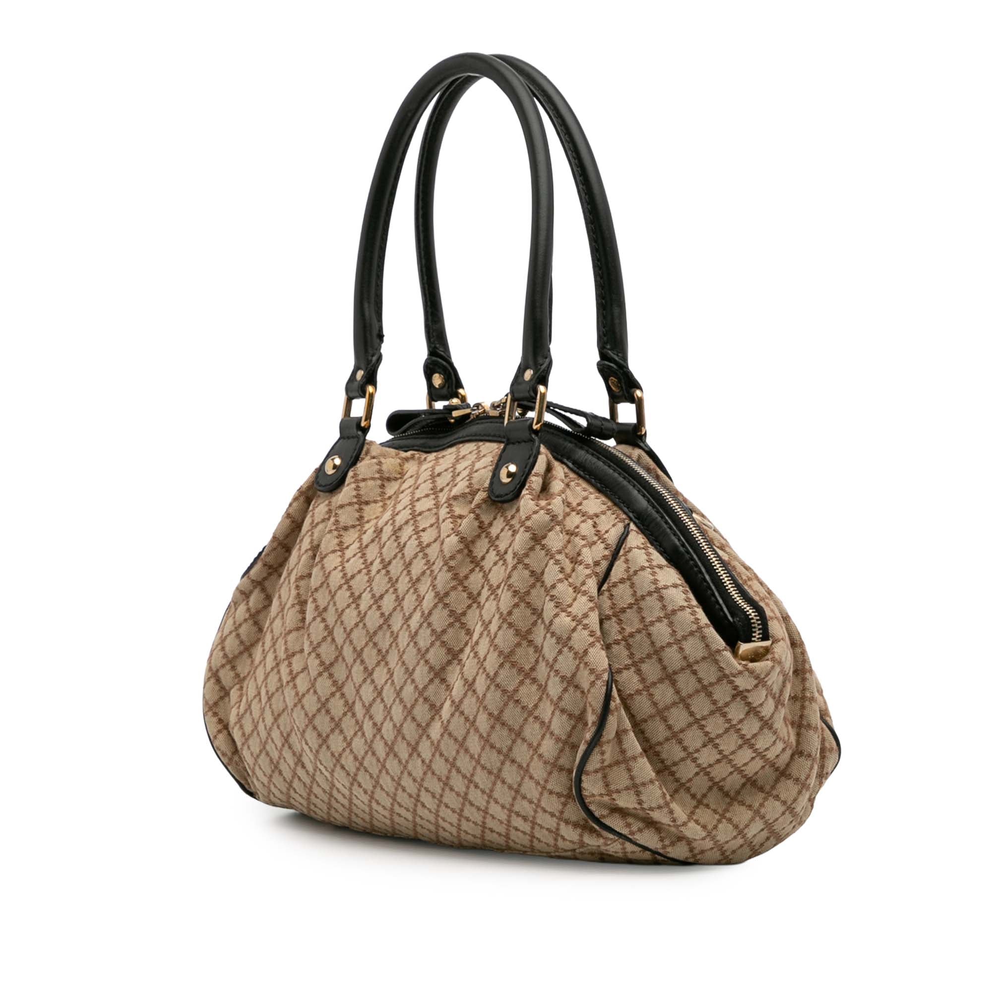 This satchel features a canvas body with leather trim, rolled leather handles, a top zip closure, and an interior zip pocket. Retail Price: 990.00