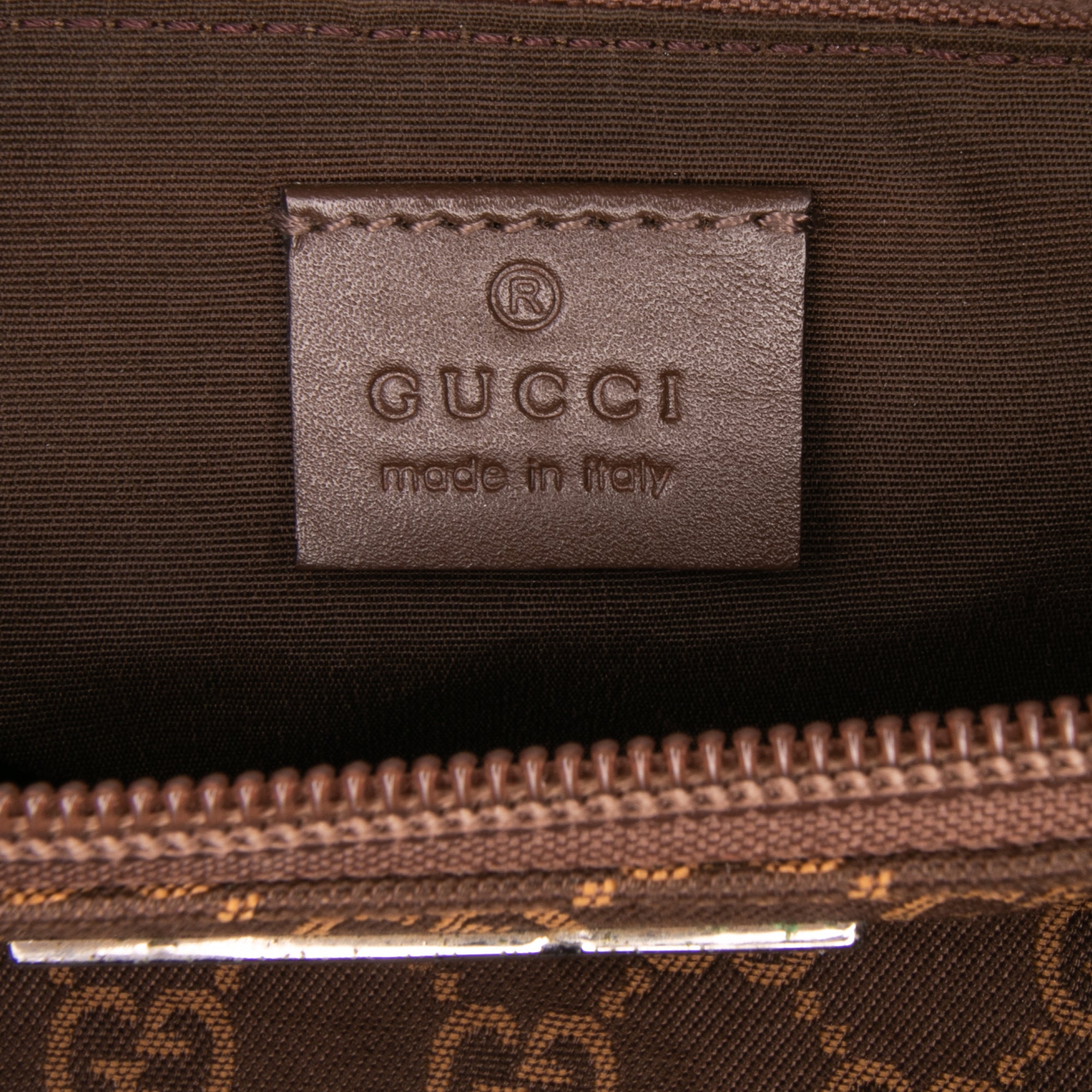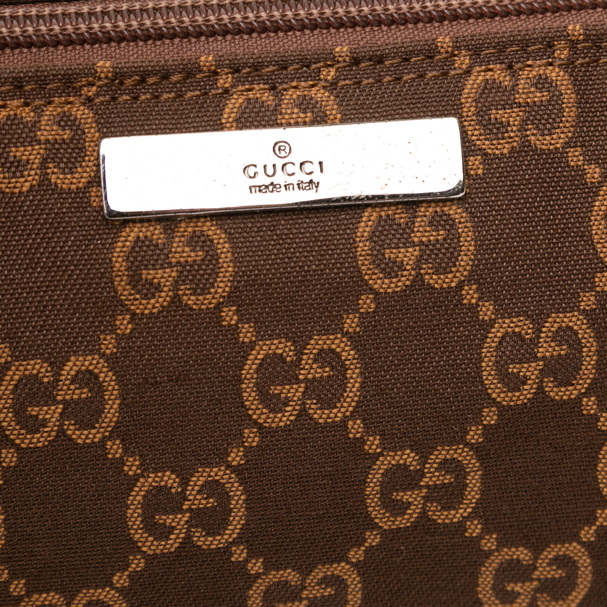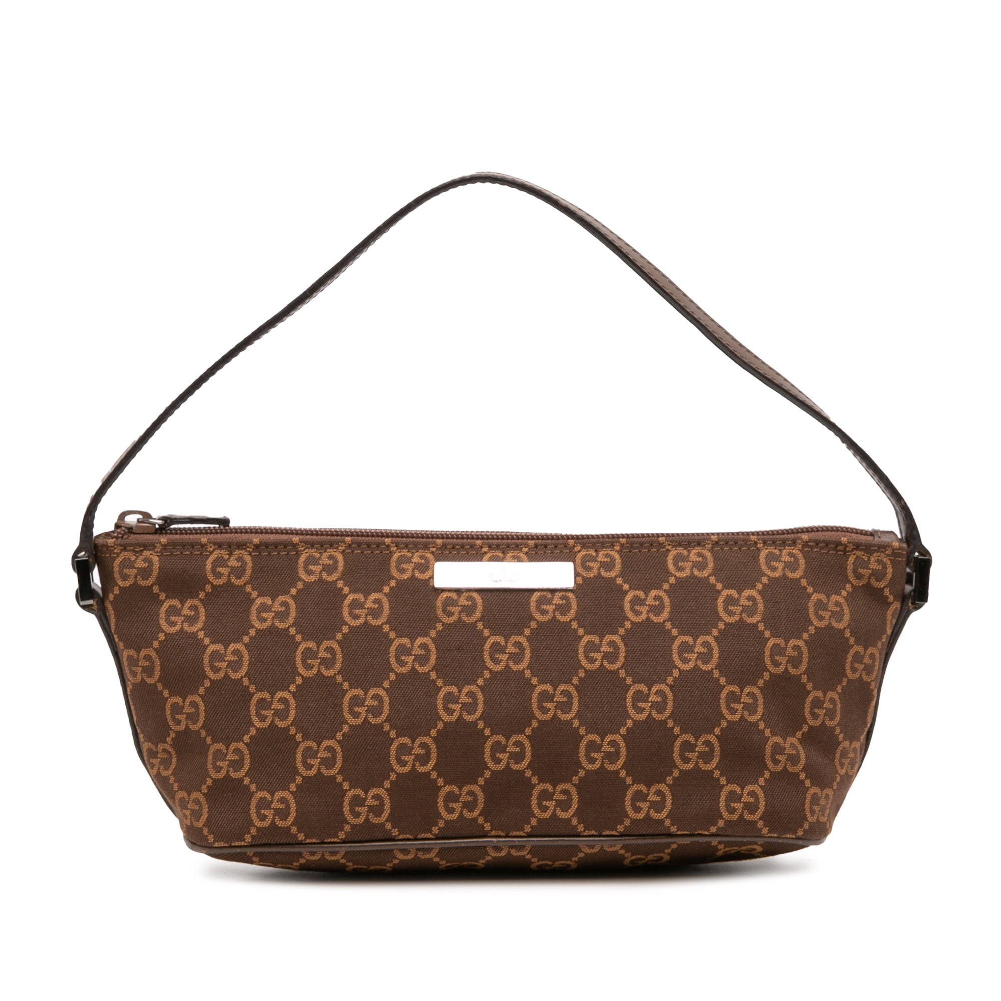 This baguette features a canvas body with leather trim, a flat leather strap, and a top zip closure. Inclusion: Dust bag. Retail Price: 675.00