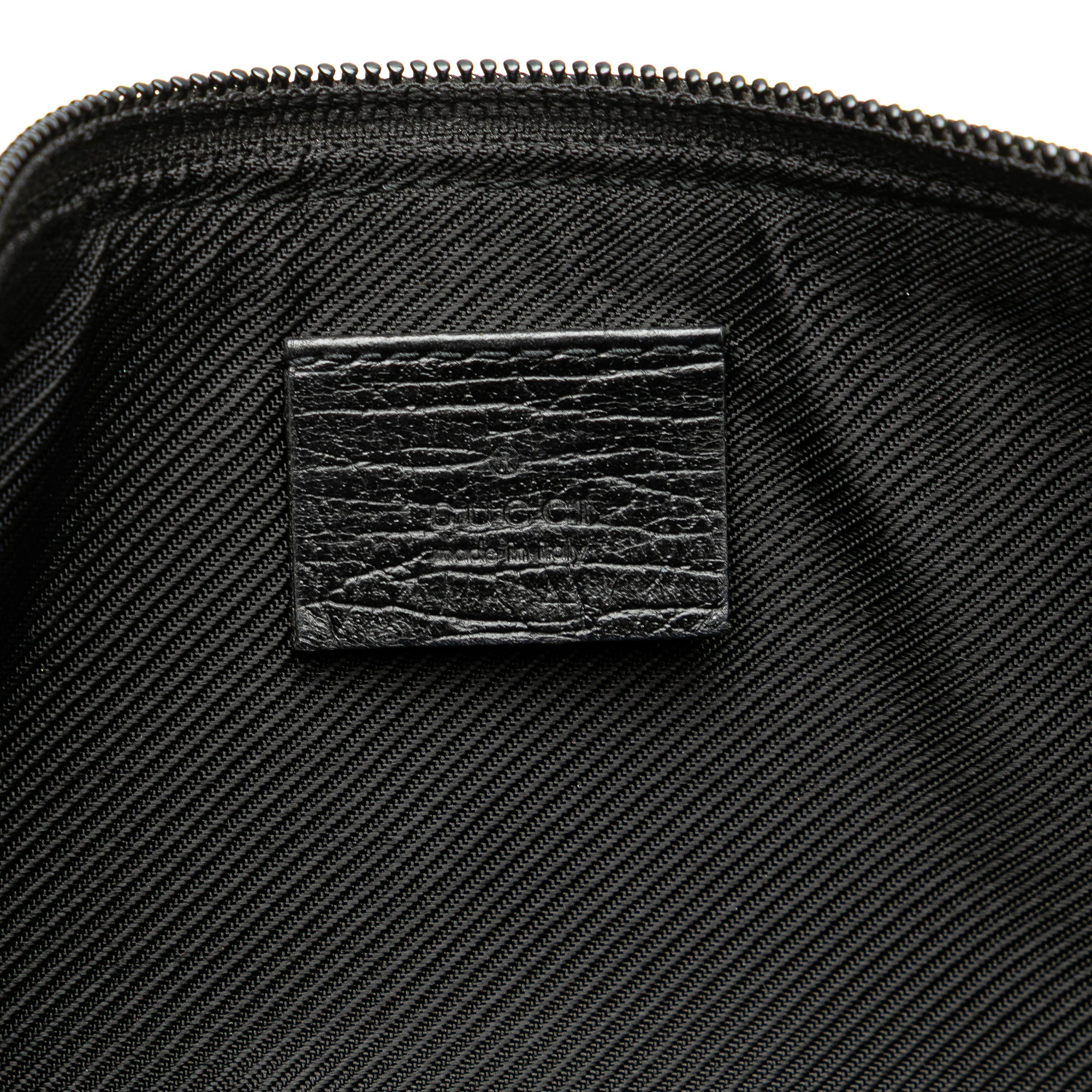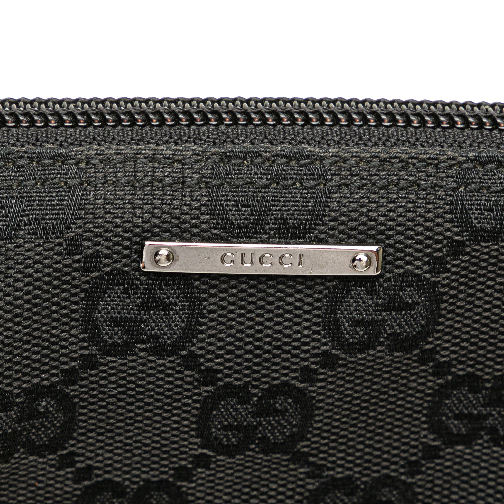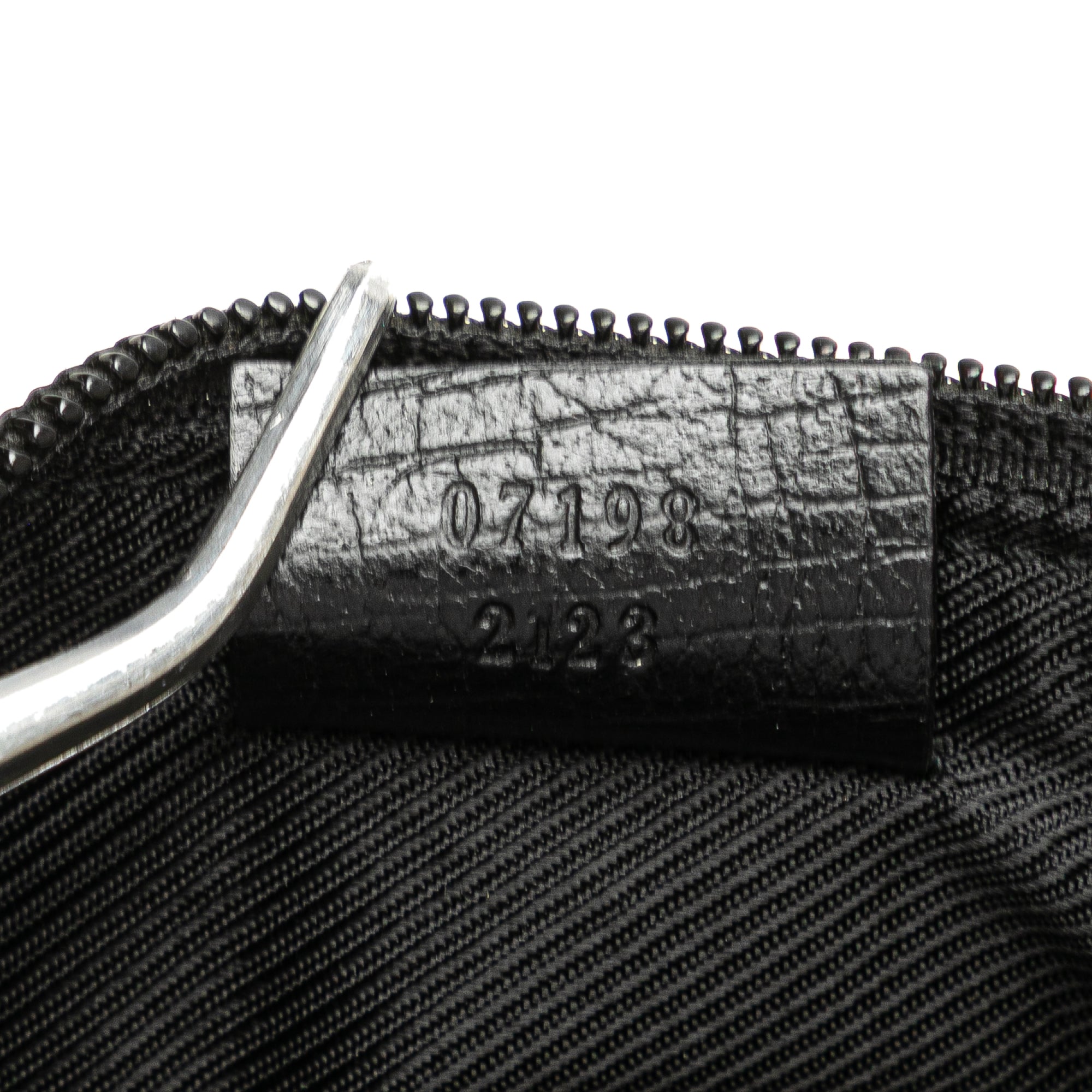 This shoulder bag features a canvas body with leather trim, a flat leather strap, and a top zip closure. Retail Price: 675.00