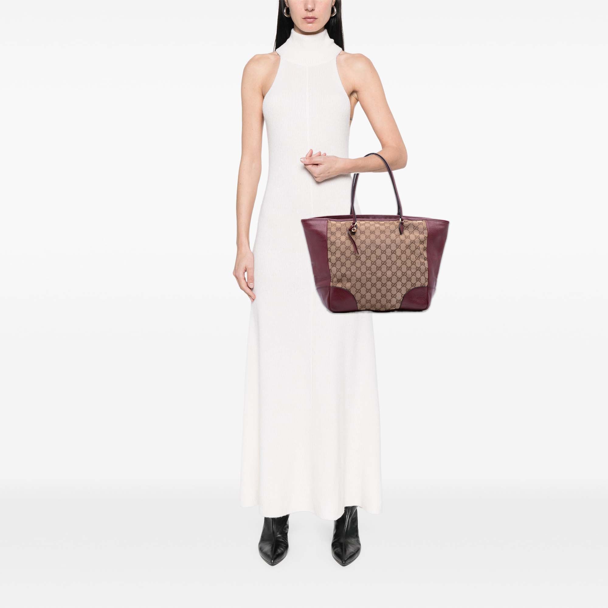 The Bree tote bag features a canvas body with leather trim, flat leather handles, a top zip closure, and interior zip and slip pockets. Retail Price: 1230.00