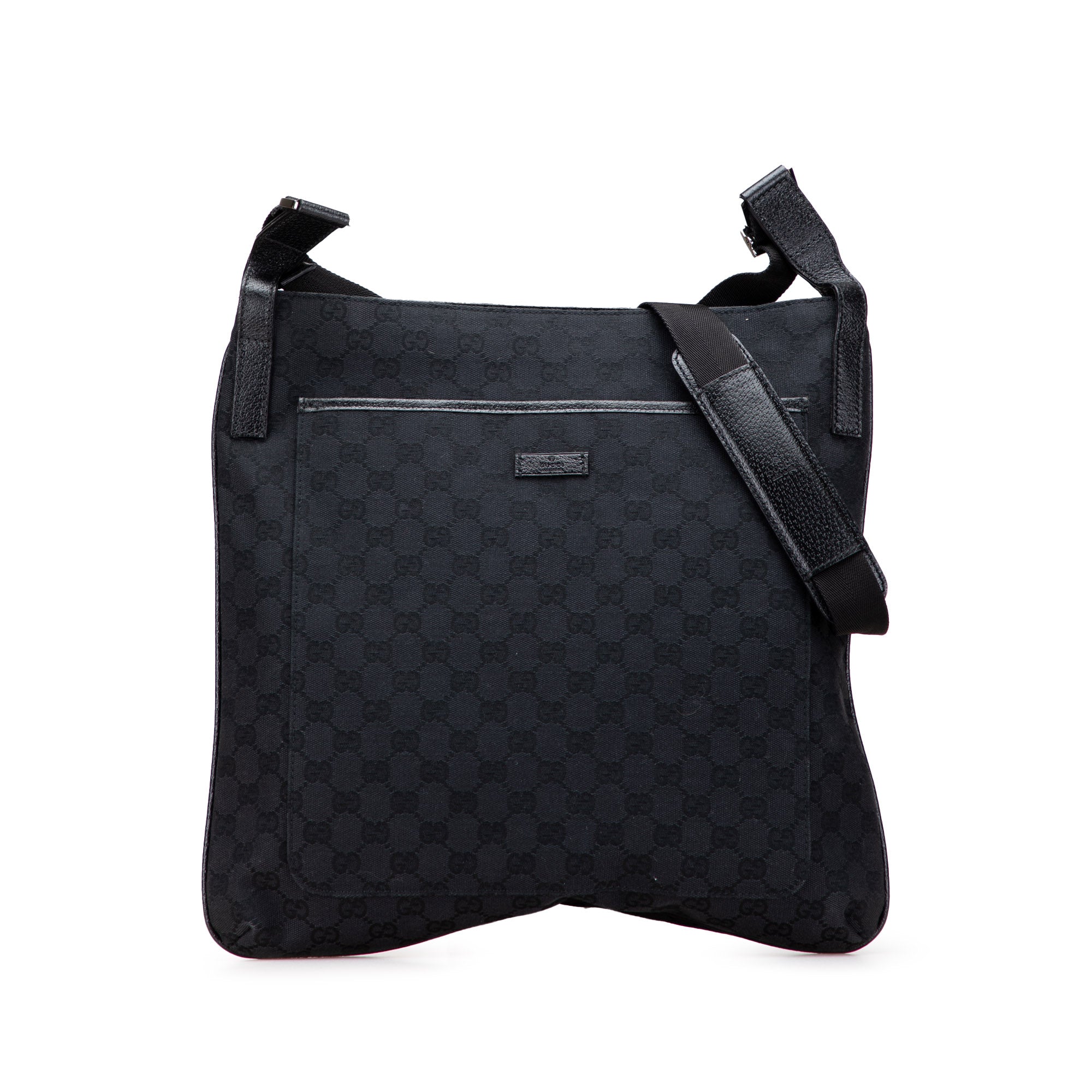 This crossbody bag features canvas body with leather trim, an adjustable flat strap, a top zip closure, an exterior front slip pocket, and an interior zip pocket. Inclusion: Dust bag. Retail Price: 785.00