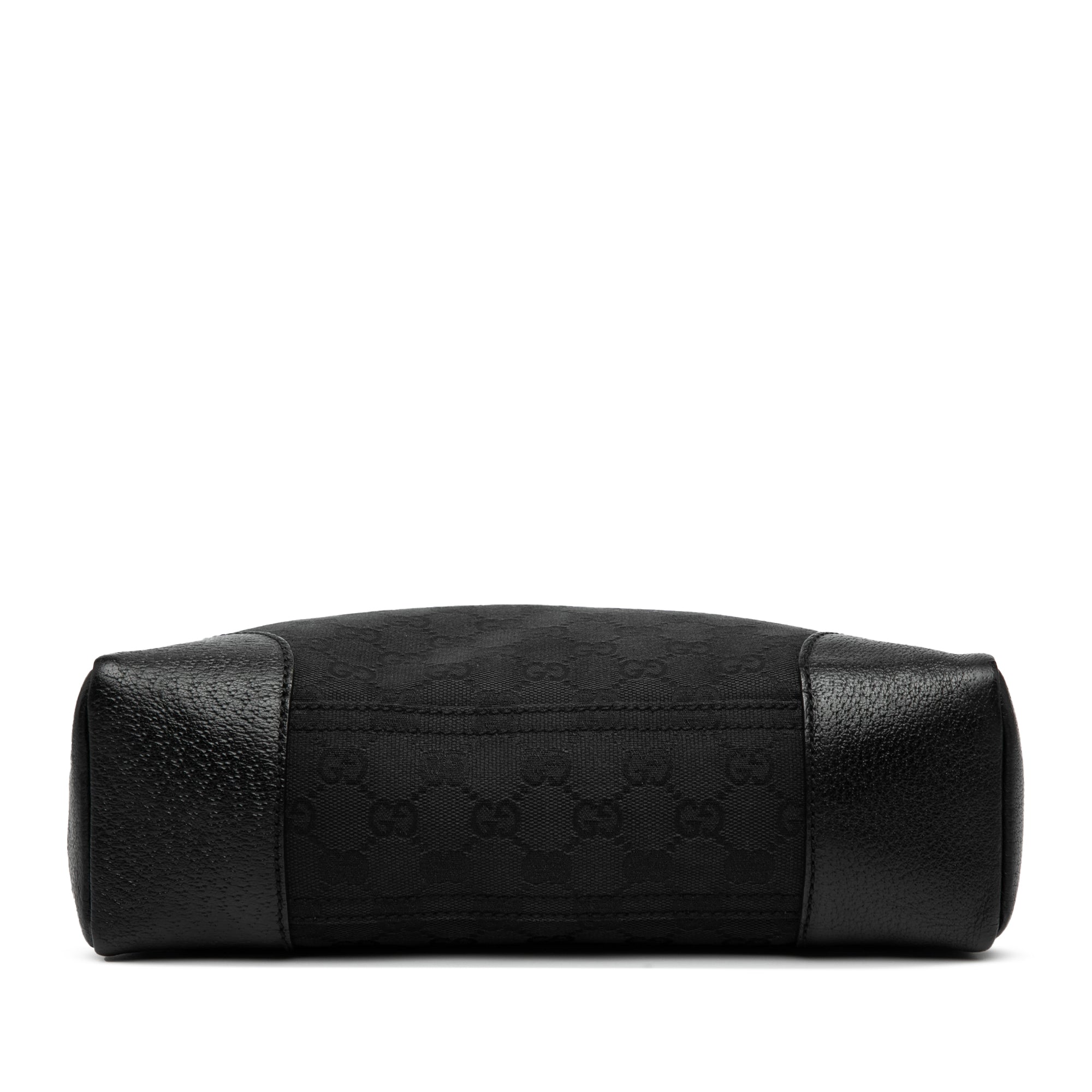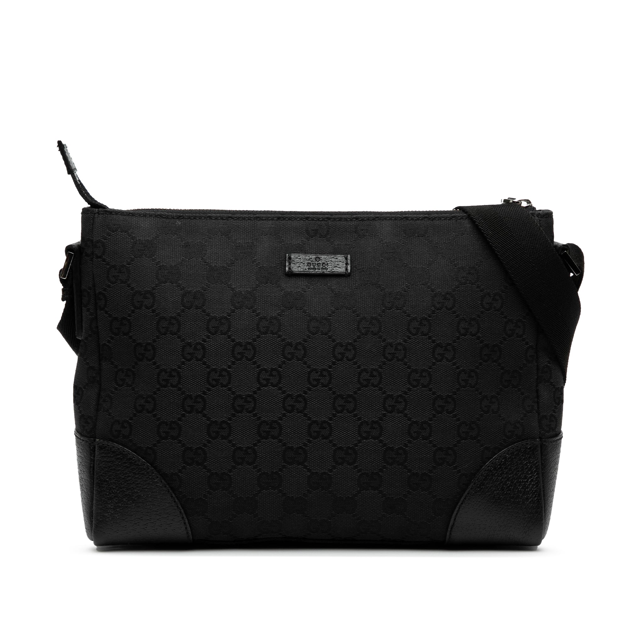 This crossbody bag features a canvas body with leather trim, an adjustable flat canvas strap, a top zip closure, and an interior zip pocket. Retail Price: 640.00