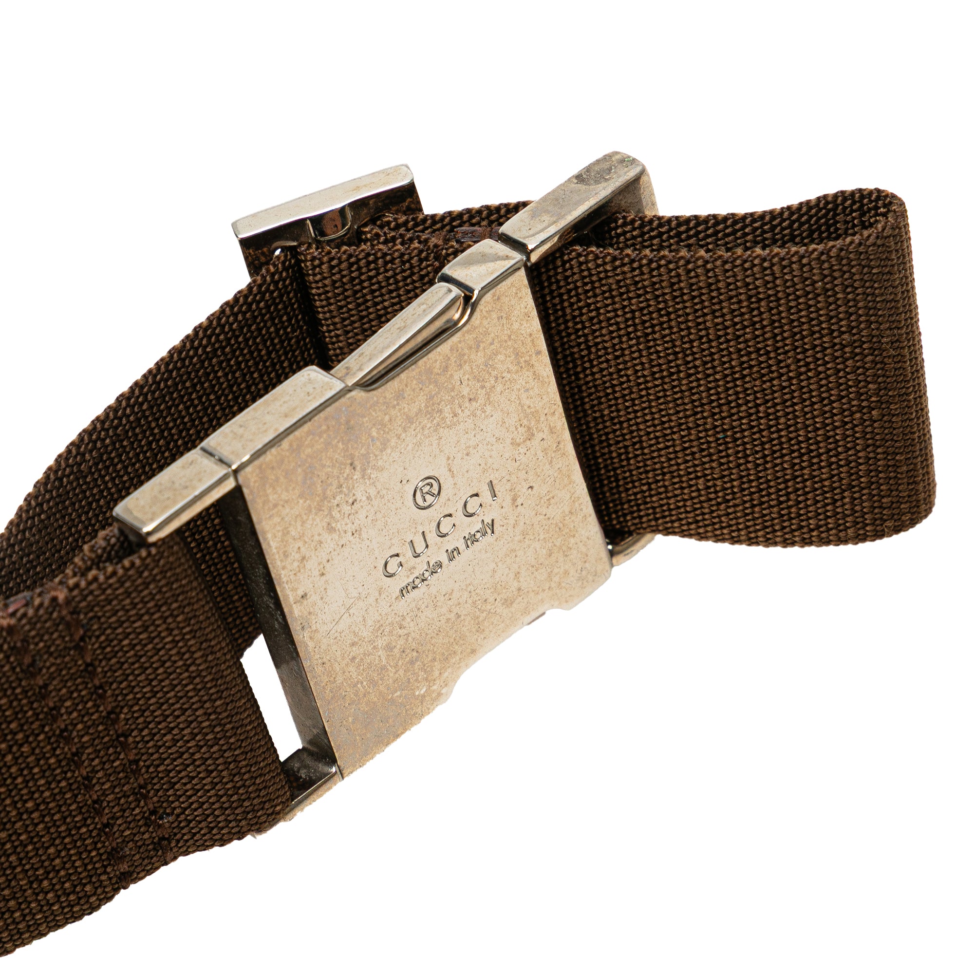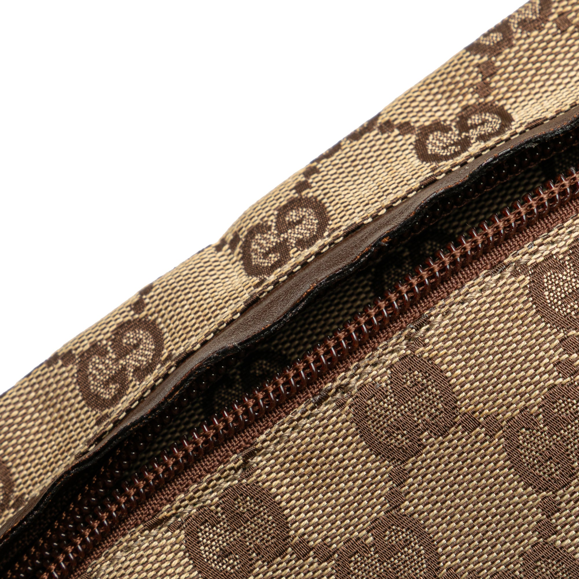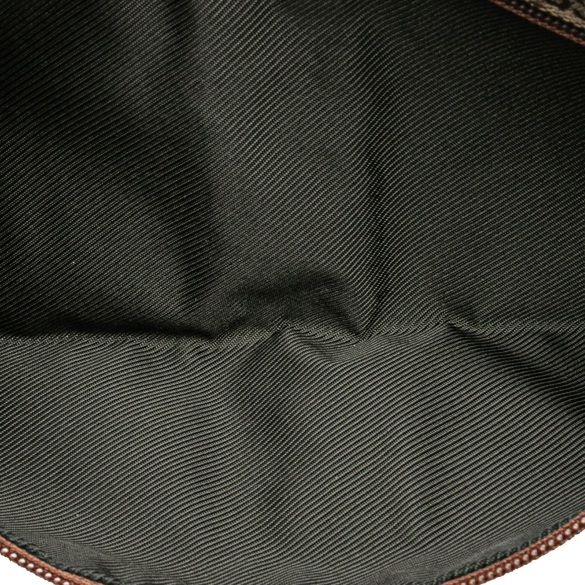 This belt bag features a canvas body with leather trim, an adjustable flat waist strap, exterior front flap and zip compartments, and an exterior back zip pocket. Retail Price: 1188.00
