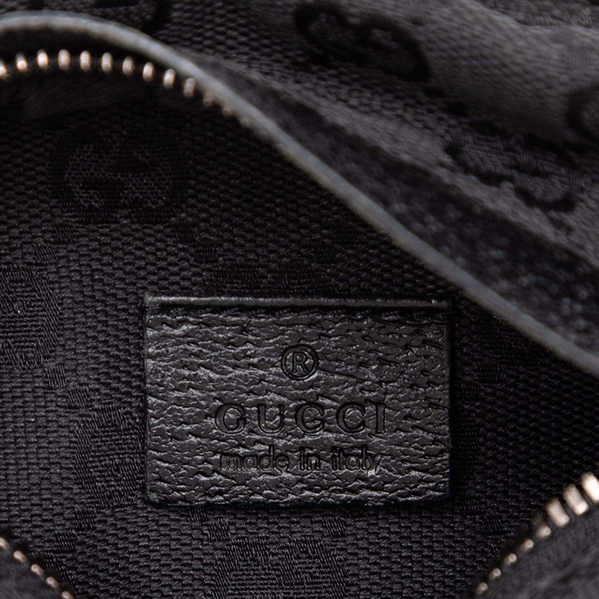 The GG Canvas Double Pocket features canvas body, an adjustable waist strap, exterior front flap and zip compartments, and an exterior back zip pocket. Retail Price: 700.00