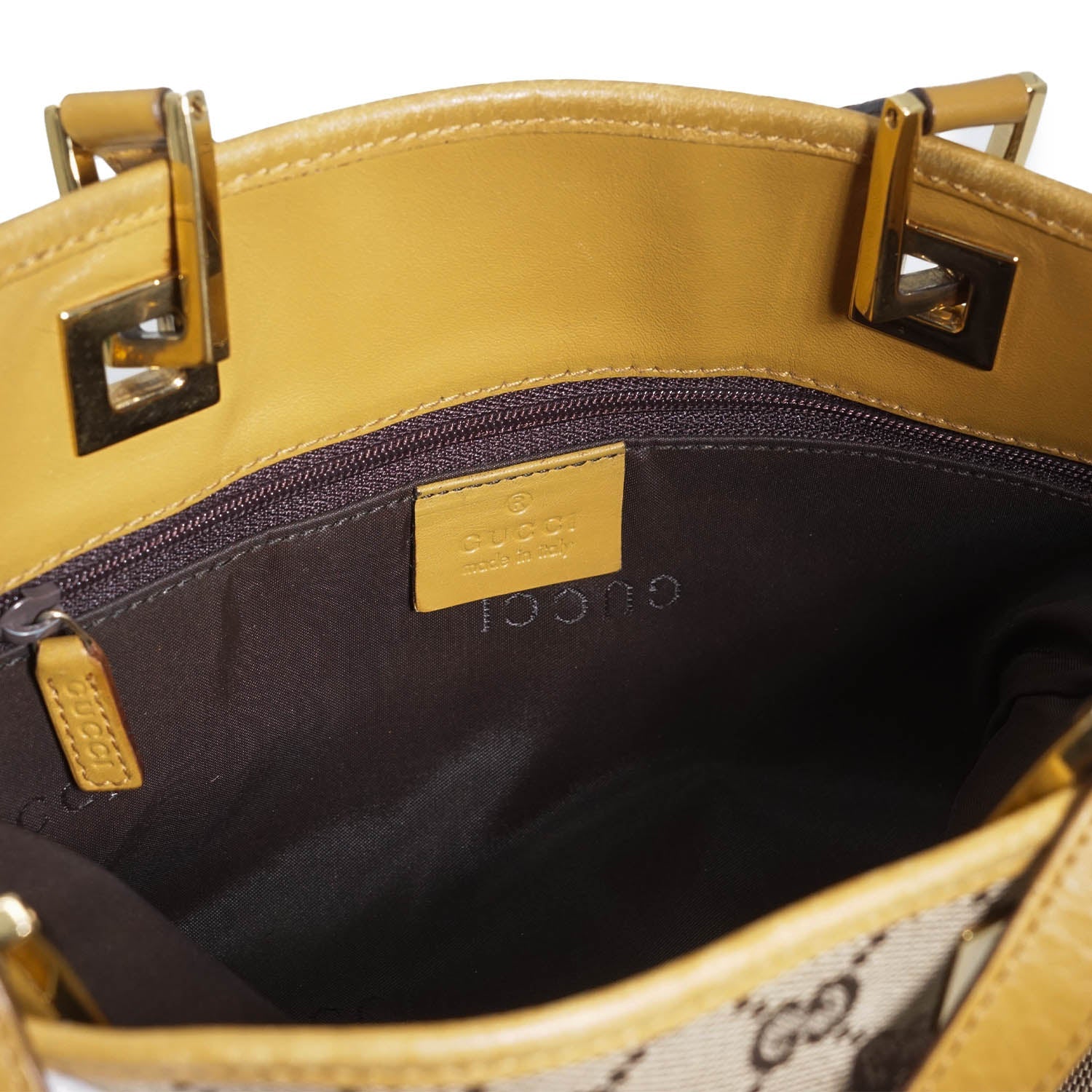 GG Canvas Mini Tote Brown Canvas, LeatherDepth: 9cmHeight: 25cmWidth: 17cmWidth at Top: 27.5cmHand Drop: 18.5cmOutside Rank: BInside Rank: BStain: Minor stains on the inside (leather parts)Discoloration: Some hardware tarnishScratch: Slight scratches on the bottom (leather part), minor rubbing along the upper leather trim and the top handlesWorn: Minor signs of wear overallOdor: No odor presentSerial code: 002.1099 001998SKU: 7050022