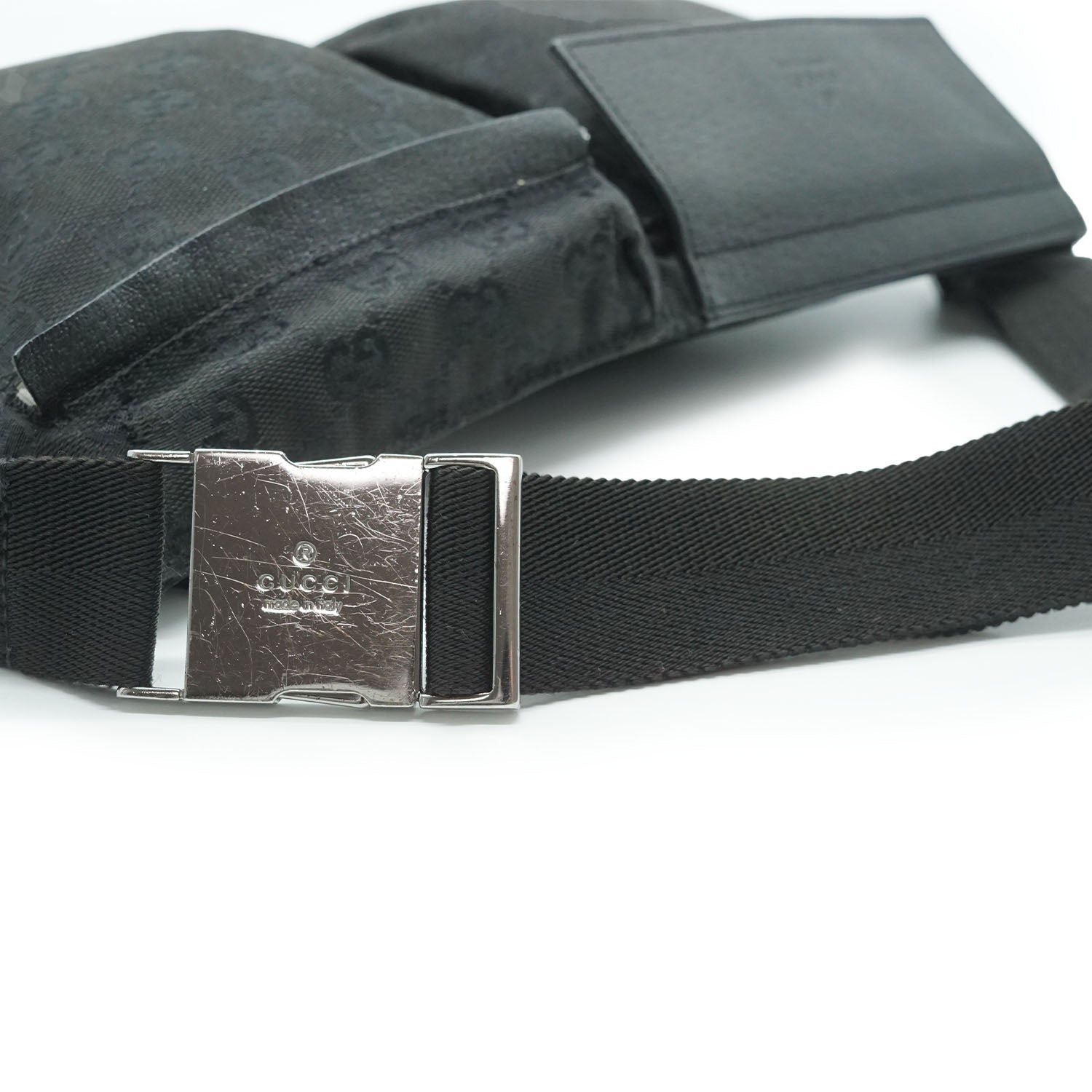 GG Canvas Pocket Waist Bag Black Canvas, LeatherDepth: 1.5cmHeight: 17.5cmWidth: 30cmShoulder Drop: 38cmOutside Rank: BInside Rank: ABDiscoloration: Some hardware tarnishScratch: Visible scratches on the hardware, minor corner rubWorn: Minor signs of wear overallOdor: No odor presentInclude: Dust bagSerial code: 28566 200047SKU: 7030018