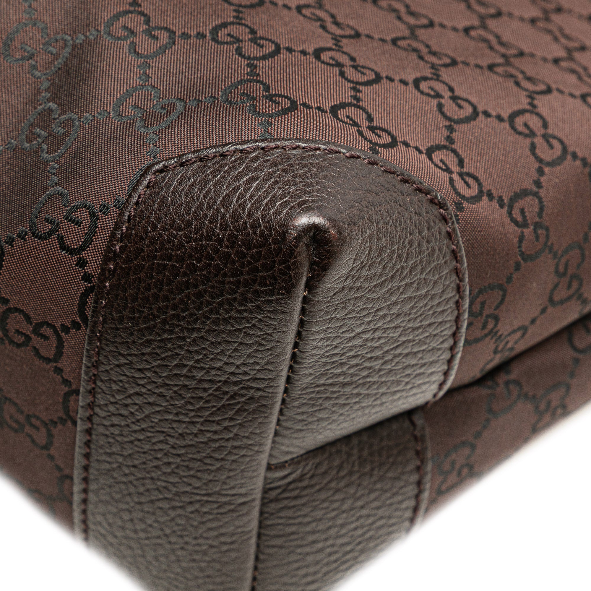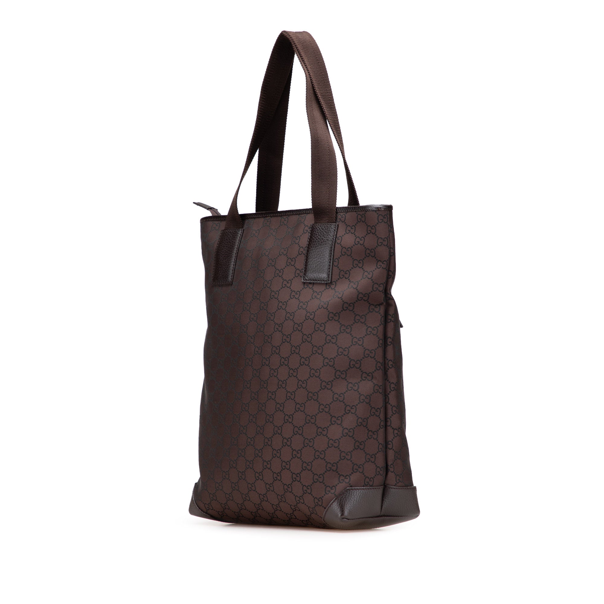 This tote bag features a canvas body with leather trim, flat leather handles, top zip closure, exterior zip pocket and interior zip pocket. Retail Price: 995.00