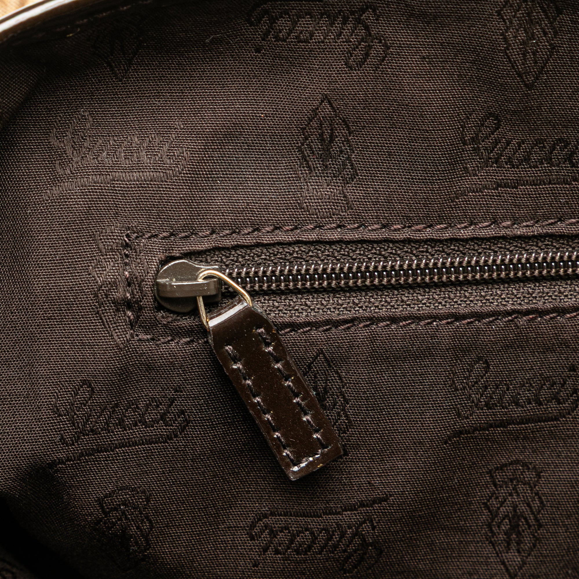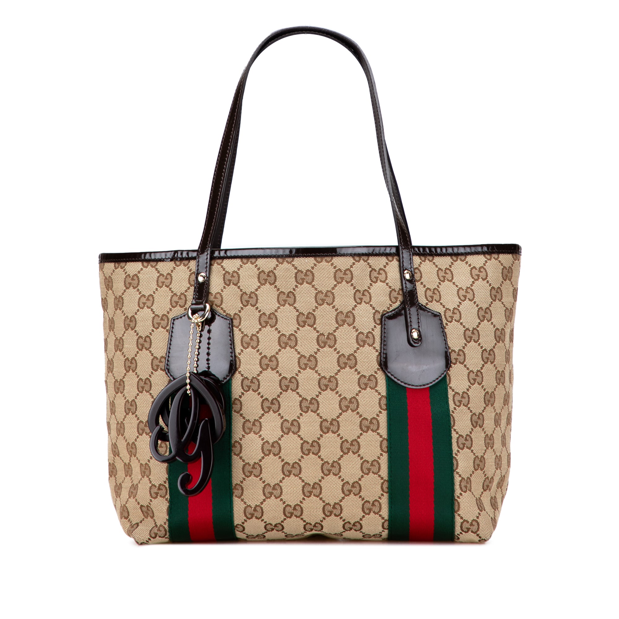 The Jolicoeur tote bag features a canvas body with patent leather trim and web details, flat leather straps, an open top, and interior zip and slip pockets. Retail Price: 990.00