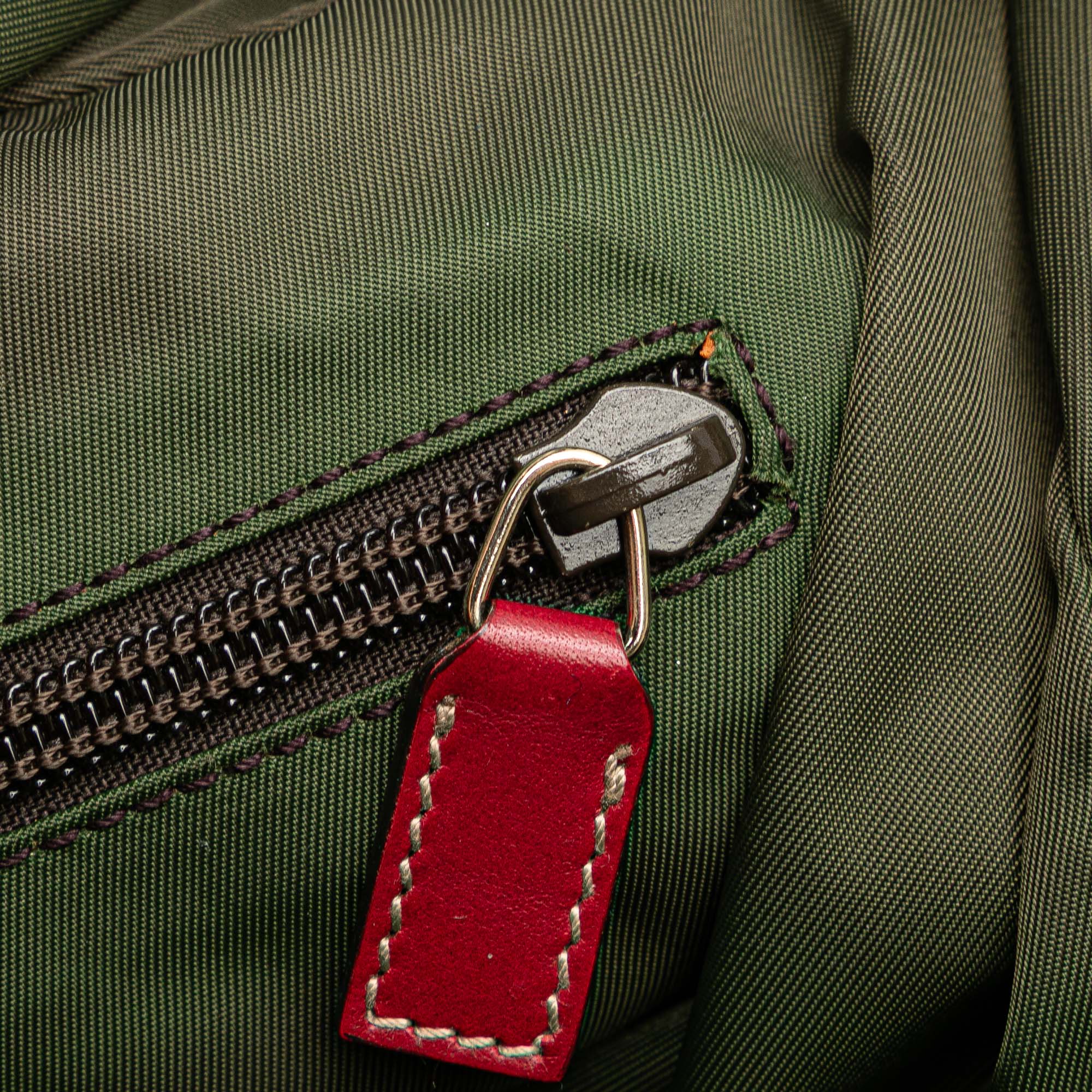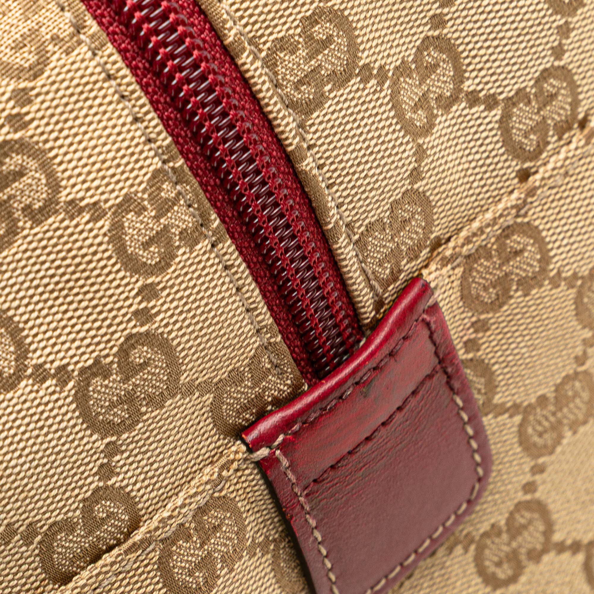 This travel bag features a canvas body with leather trim, flat handles, a top zip closure, and an interior zip pocket. Retail Price: 900.00