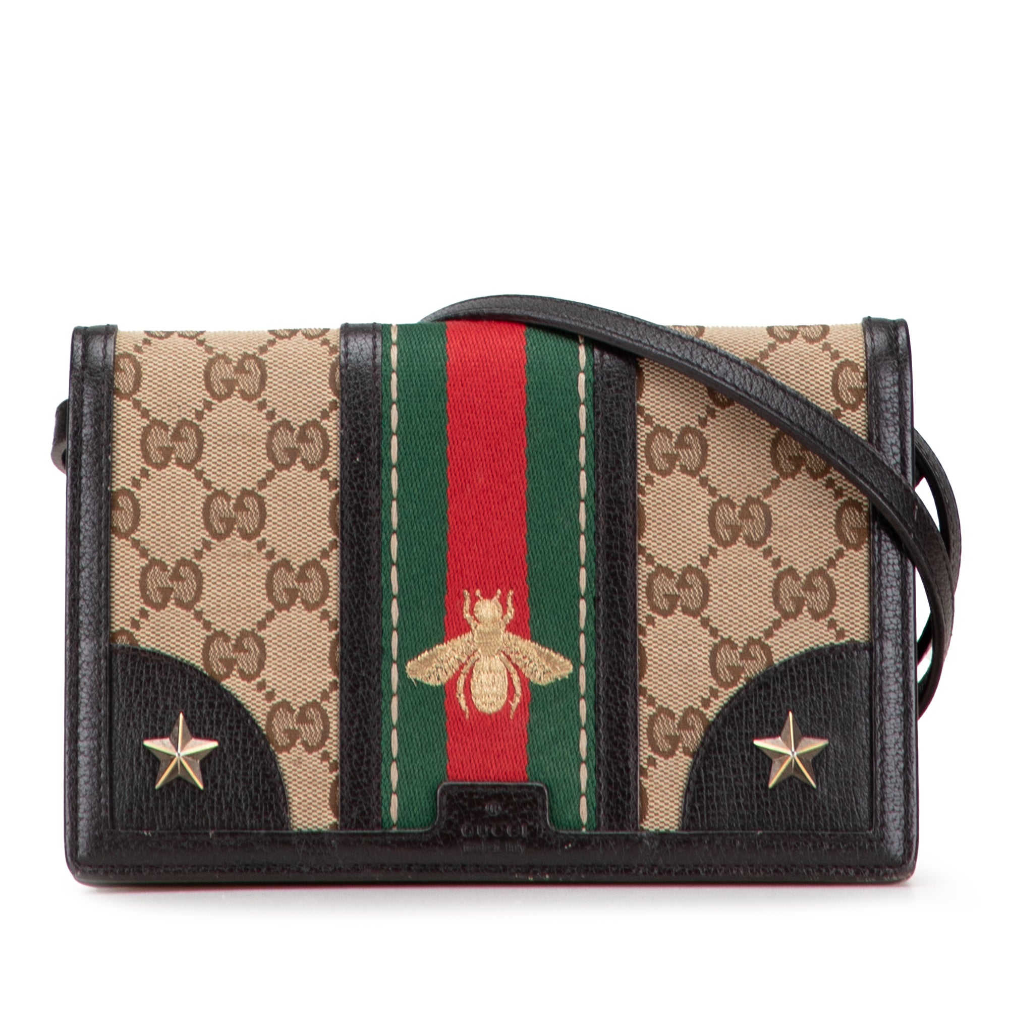 Gucci GG Canvas Webby Bee Wallet on Strap Secondhand