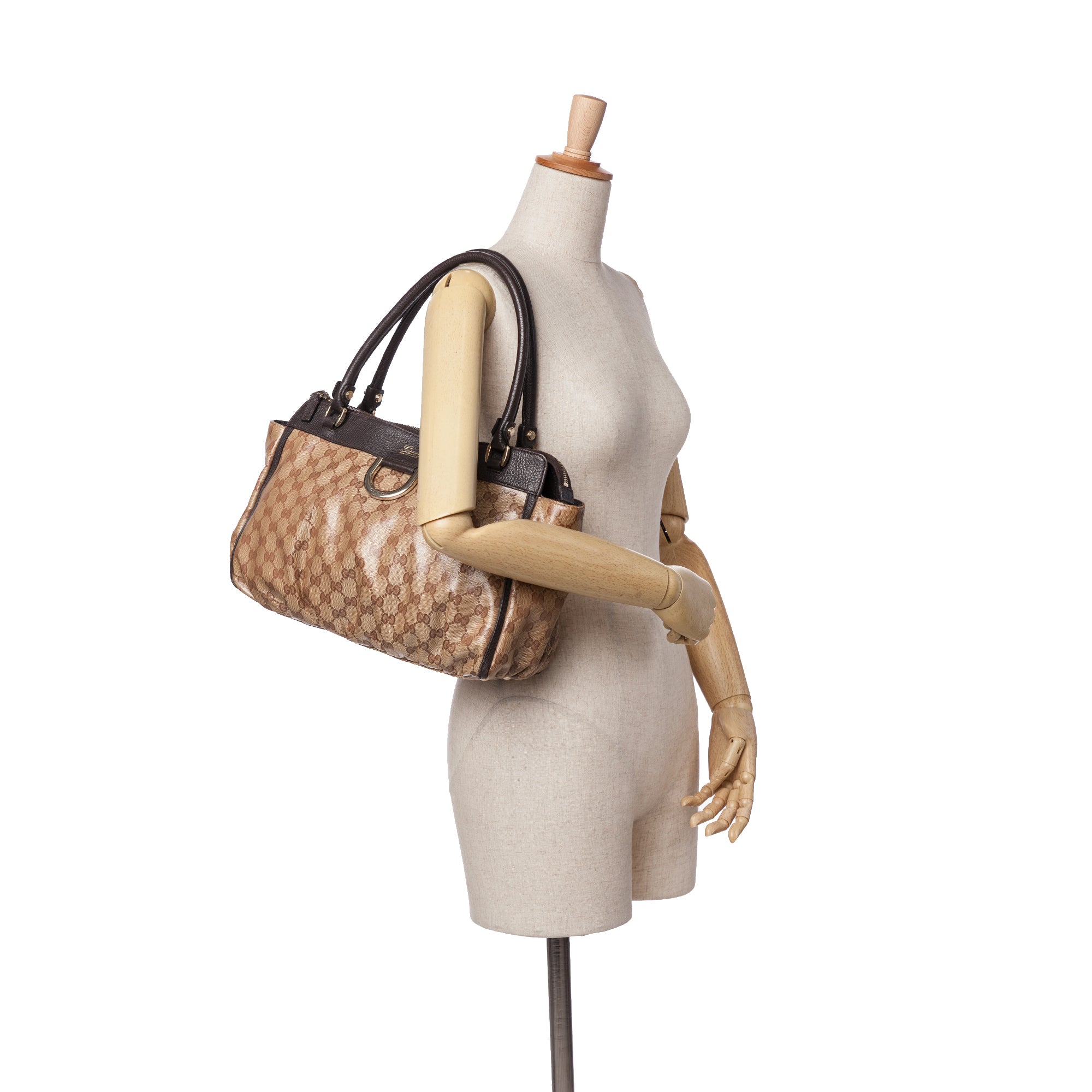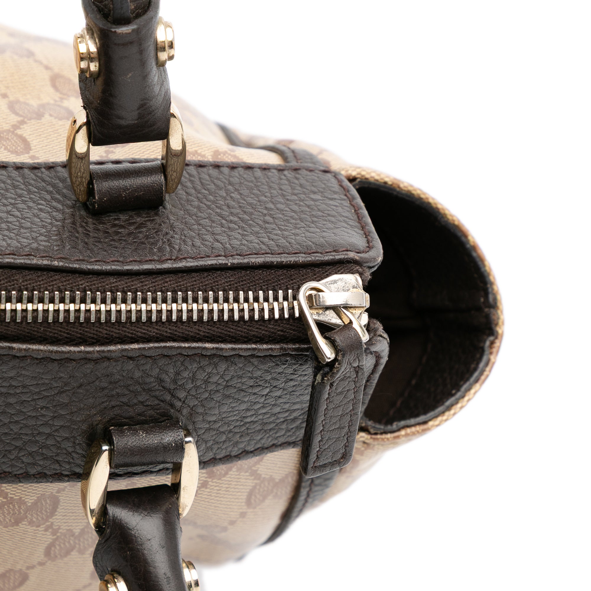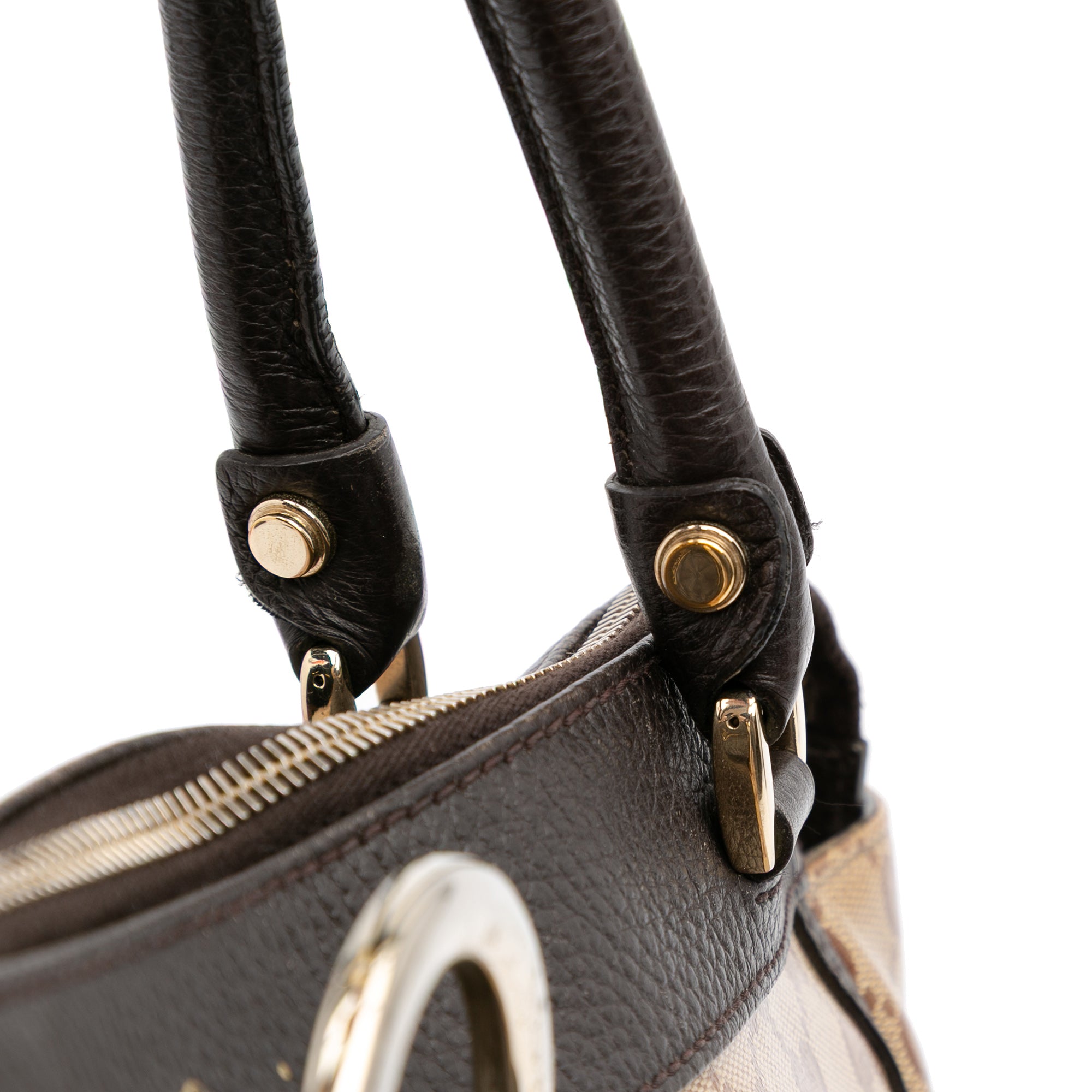 This tote bag features a coated canvas body with leather trim, rolled leather straps, a top zip closure, and an interior zip pocket. Retail Price: 635.00