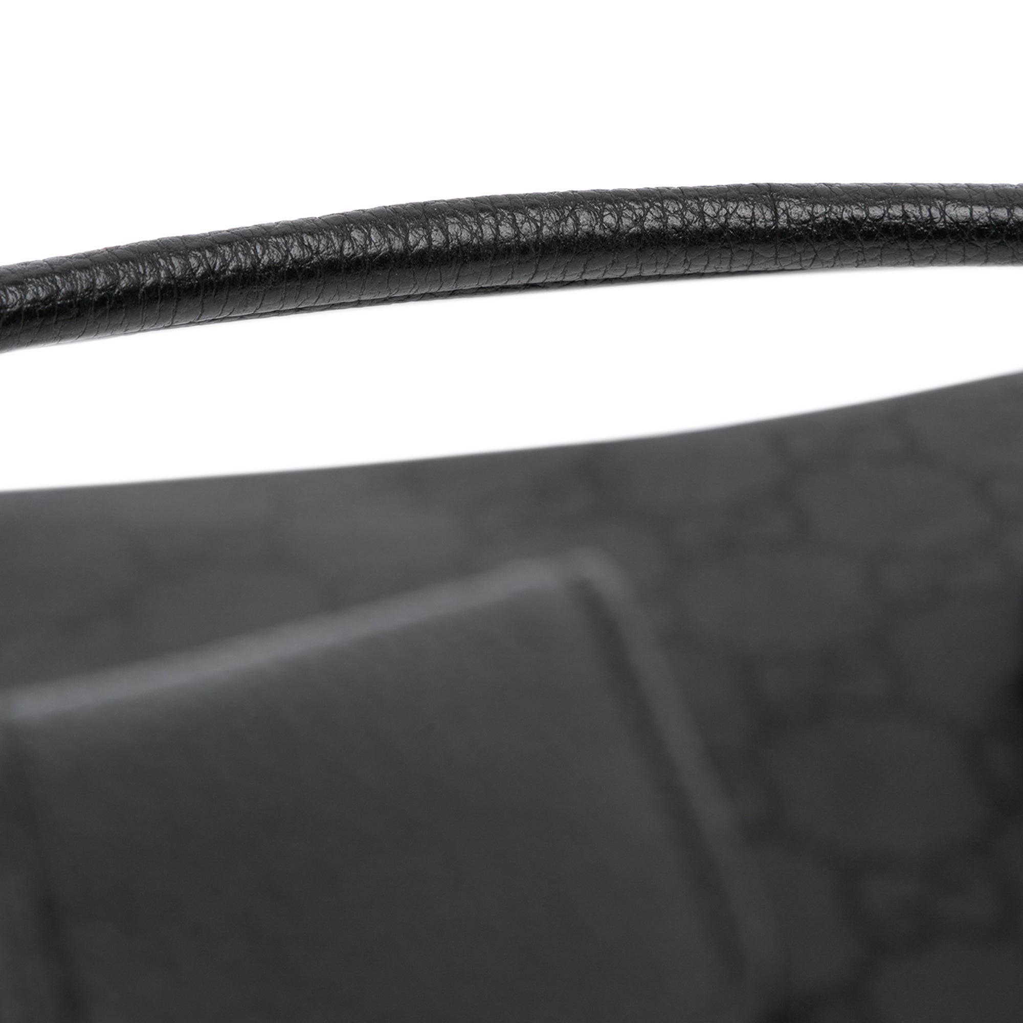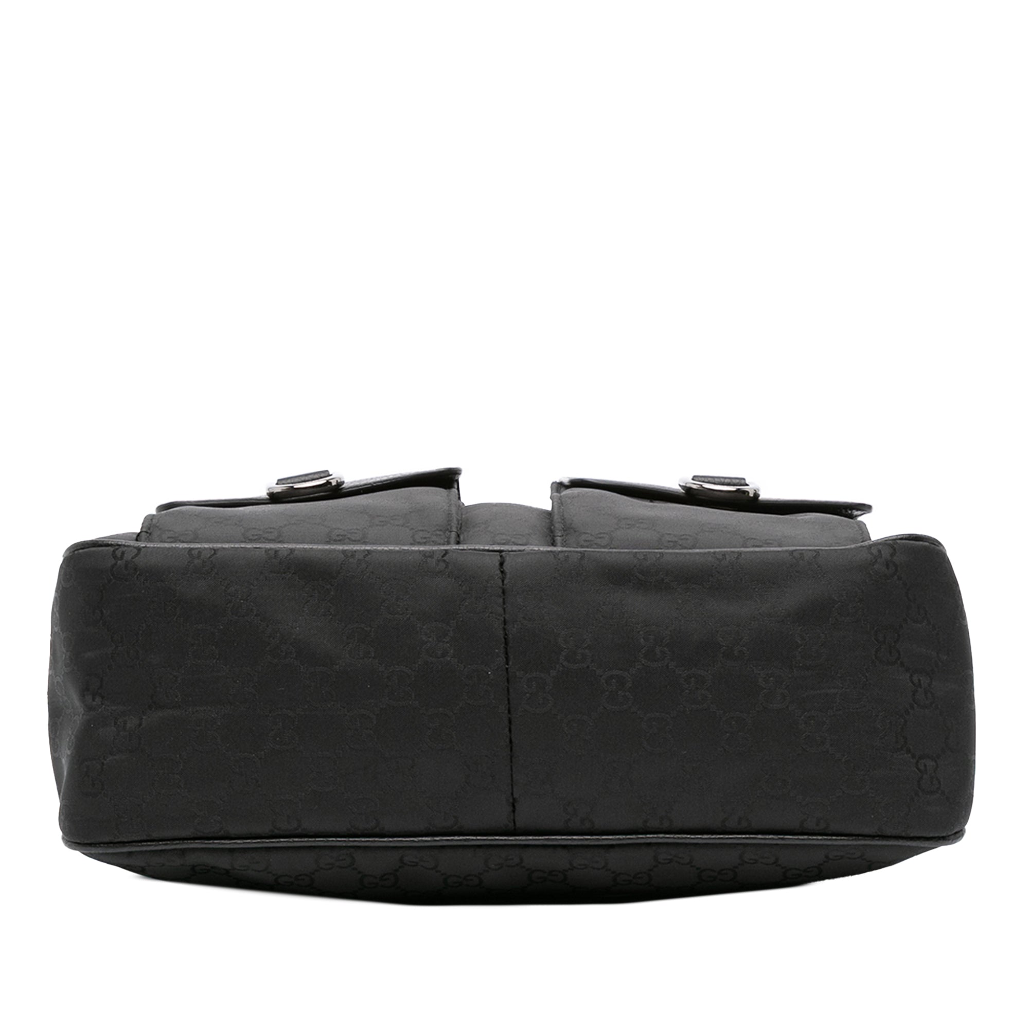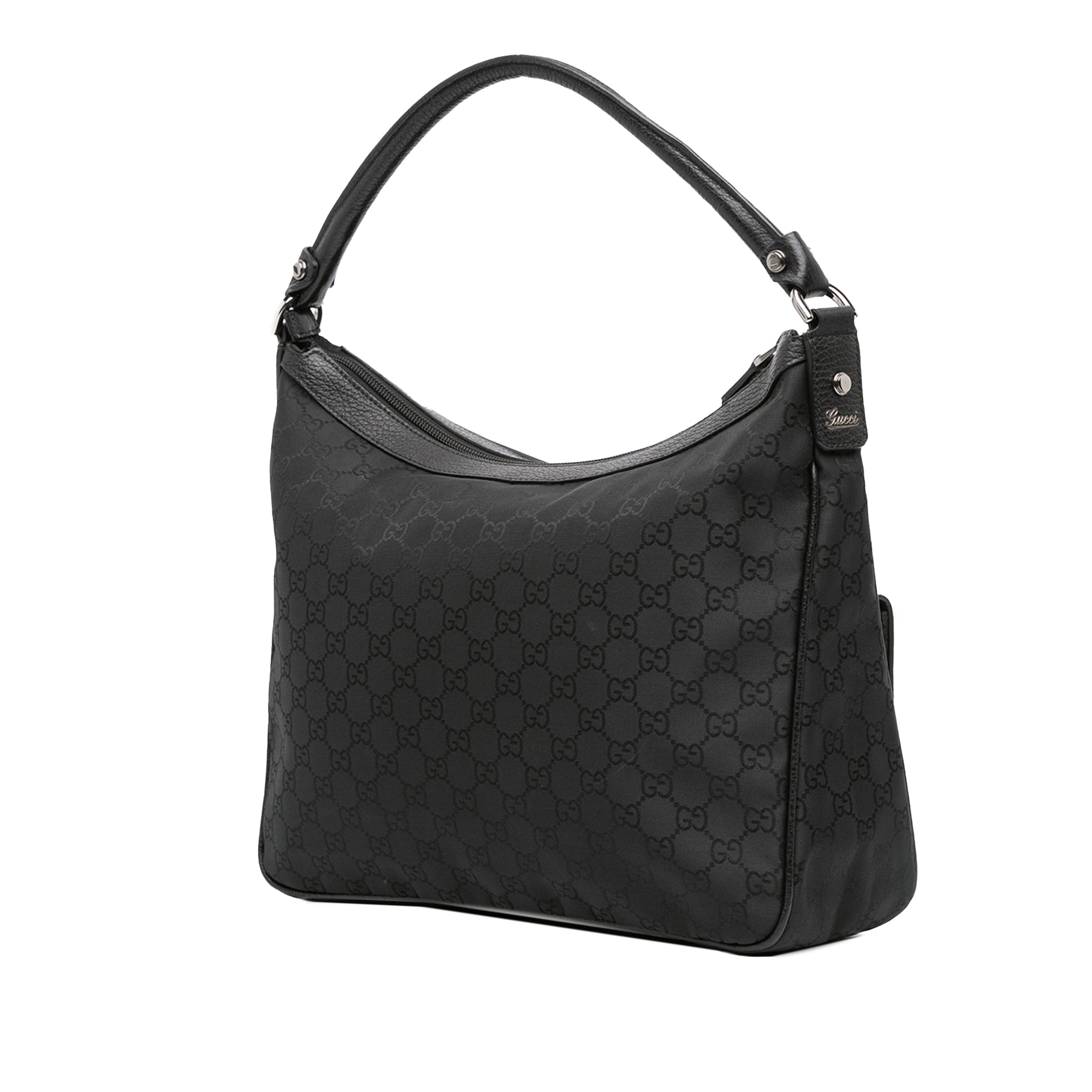 This handbag features a nylon body, rolled leather handle, a top zip closure, exterior front flap pockets, and interior zip and slip pockets. Retail Price: 1100.00
