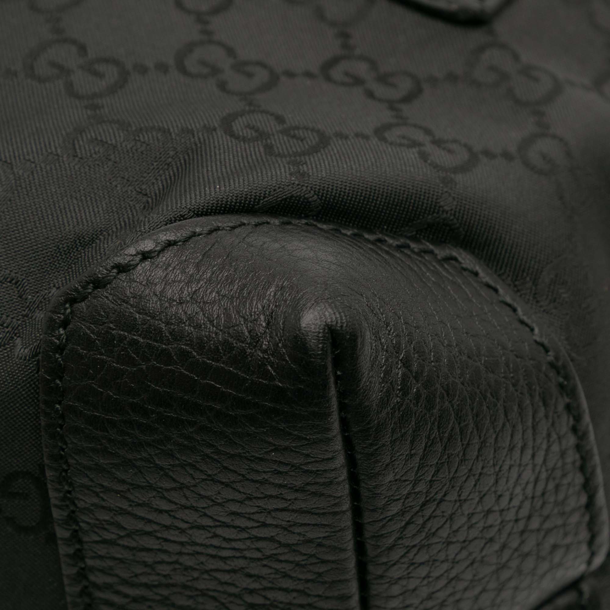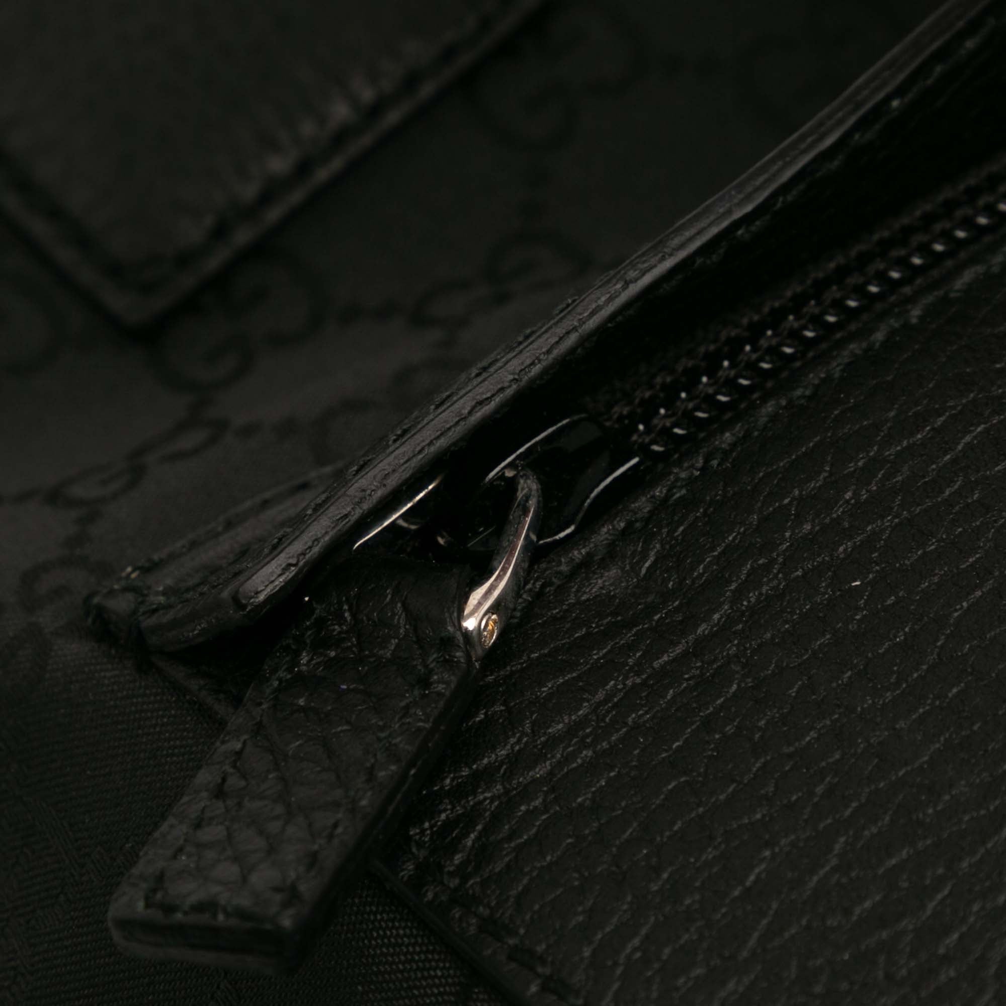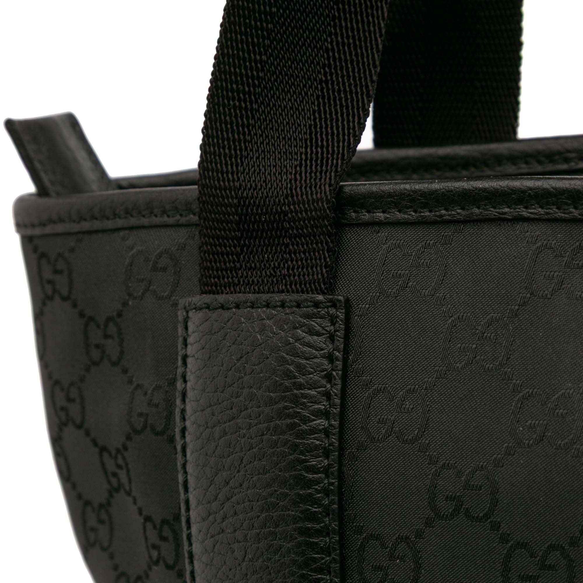 This tote bag features a nylon body with leather trim, flat straps, a top zip closure, an exterior front zip compartment, and an interior zip pocket. Inclusion: Dust bag. Retail Price: 995.00