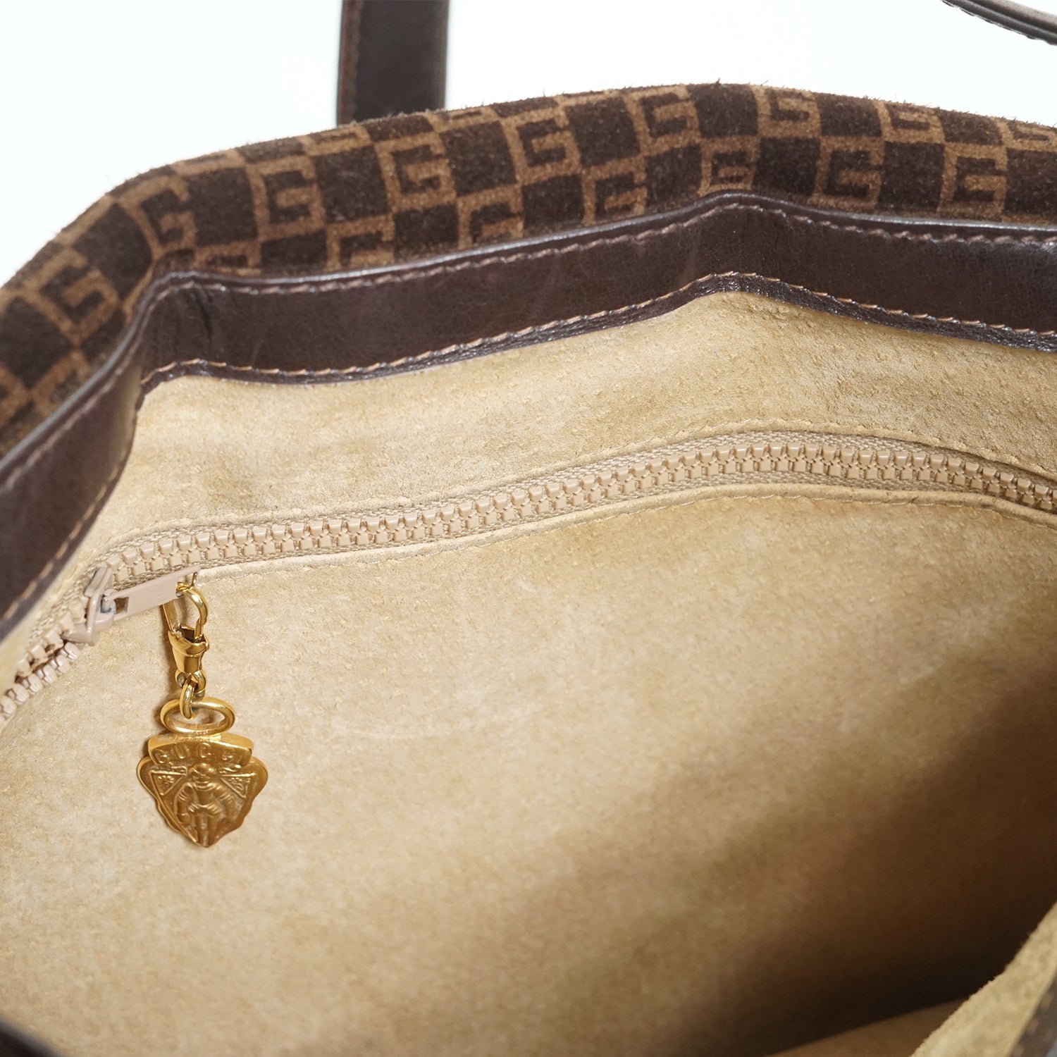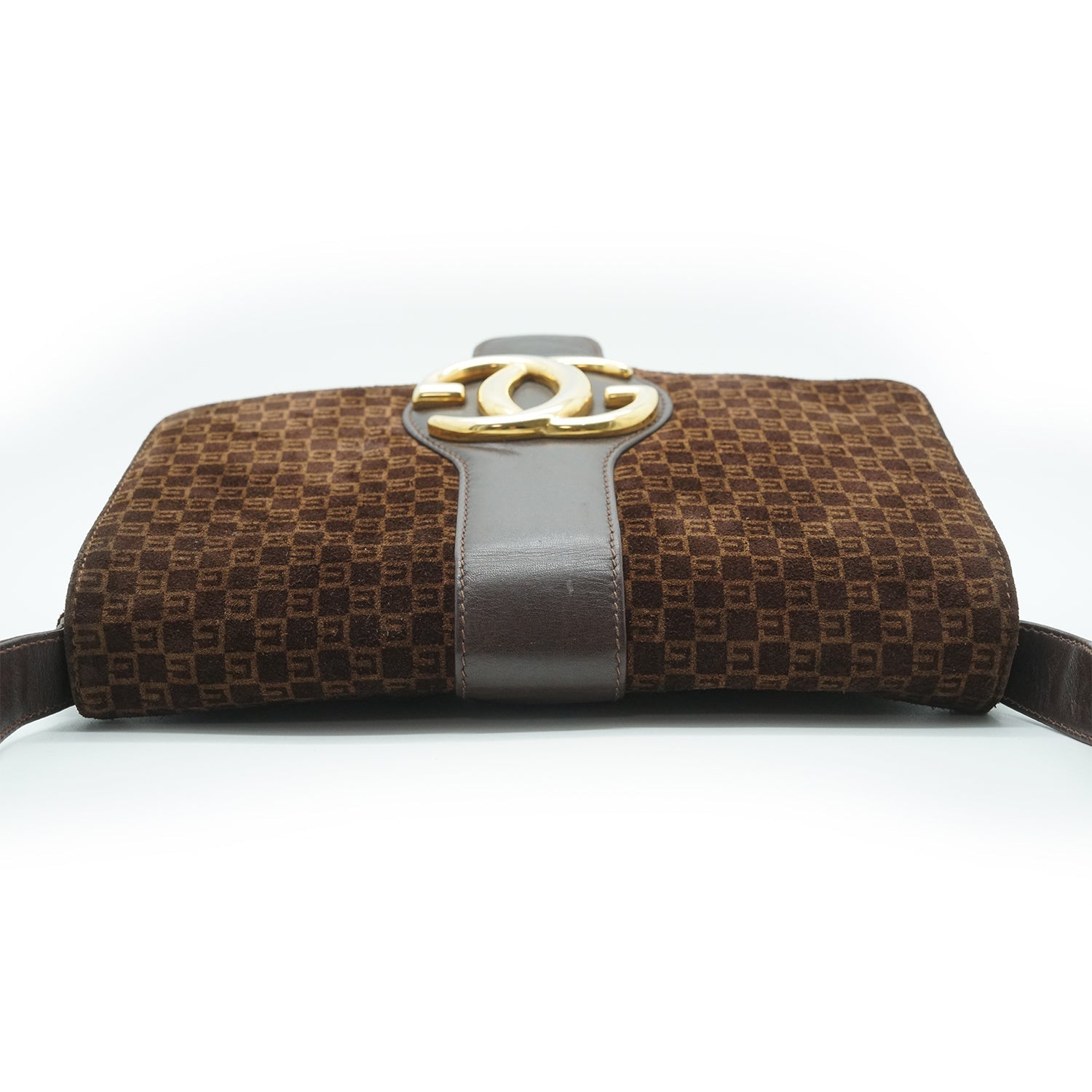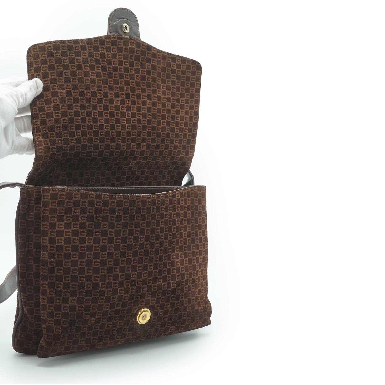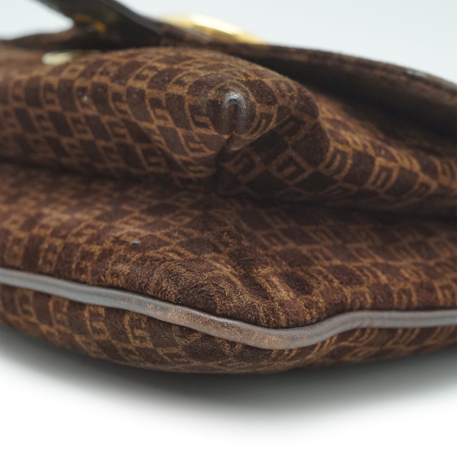 GG Suede Vintage Box Shoulder Bag Brown Suede, LeatherDepth: 3.5cmHeight: 20cmWidth: 26cmShoulder Drop: 34cmCOutside Rank: BCInside Rank: BDiscoloration: Some hardware tarnishScratch: Some scratches throughout the inside fabric, some rubbing marks along the edges (leather piping), minor scratches on the leather parts (shoulder strap) and on the hardwareComments: The clasp is brokenSerial code: BRFV.N.53289