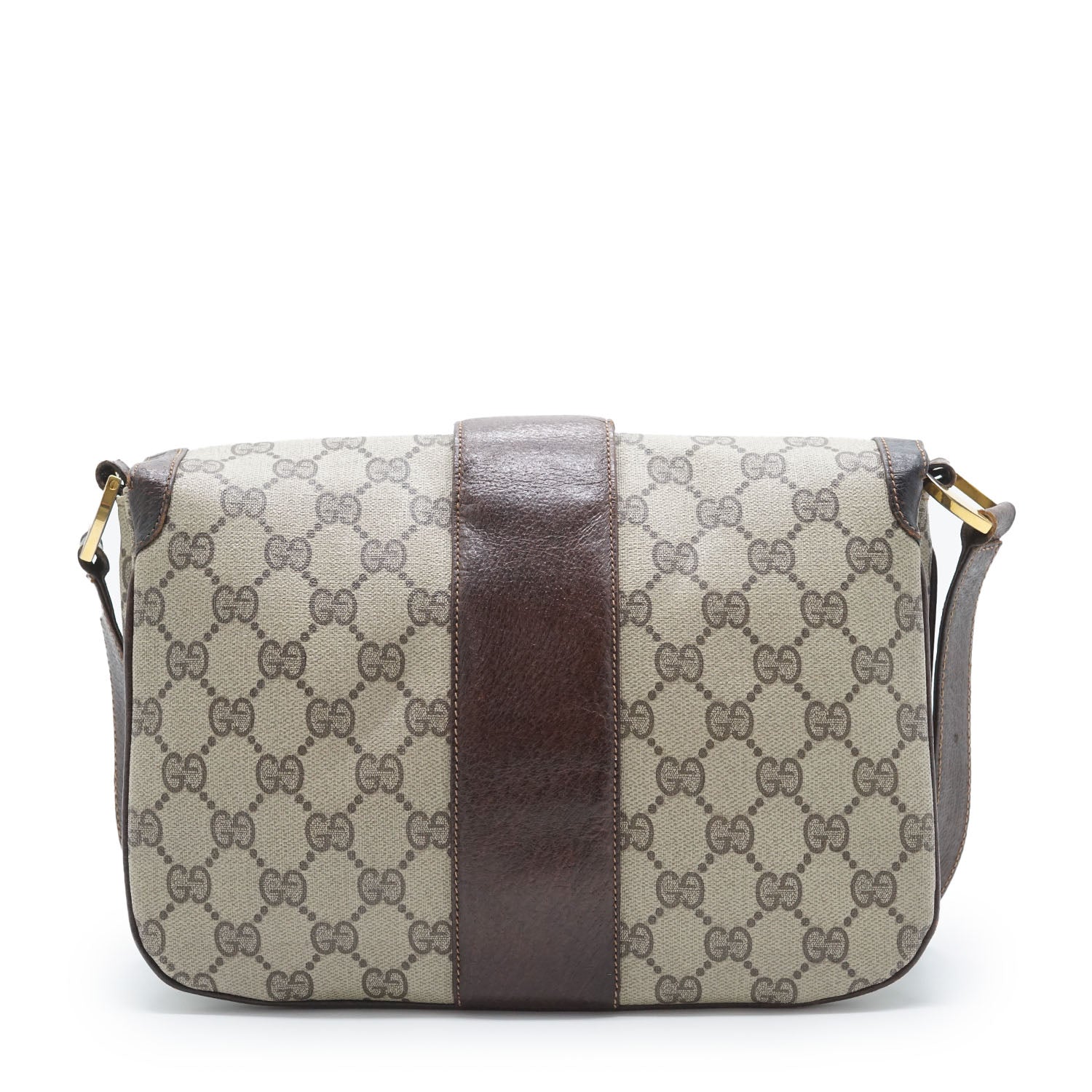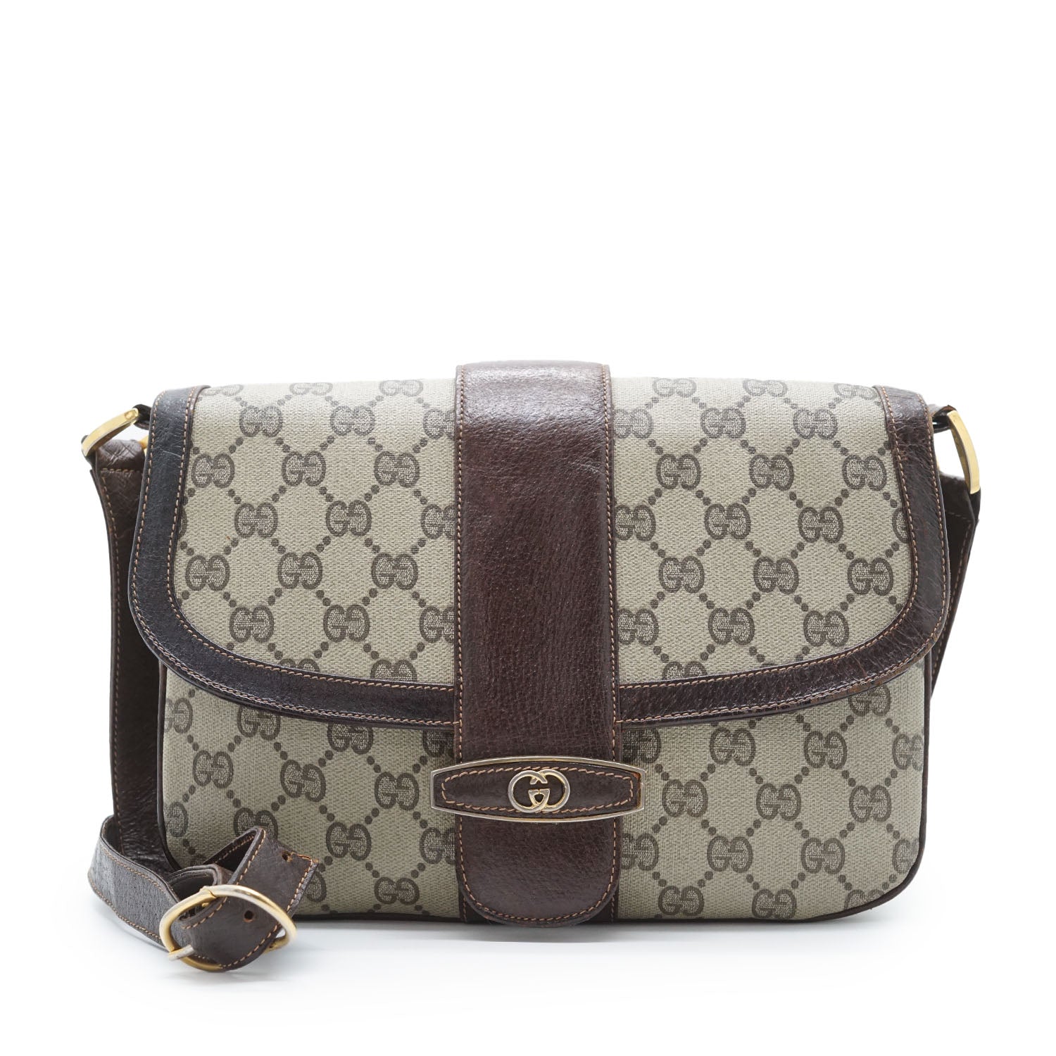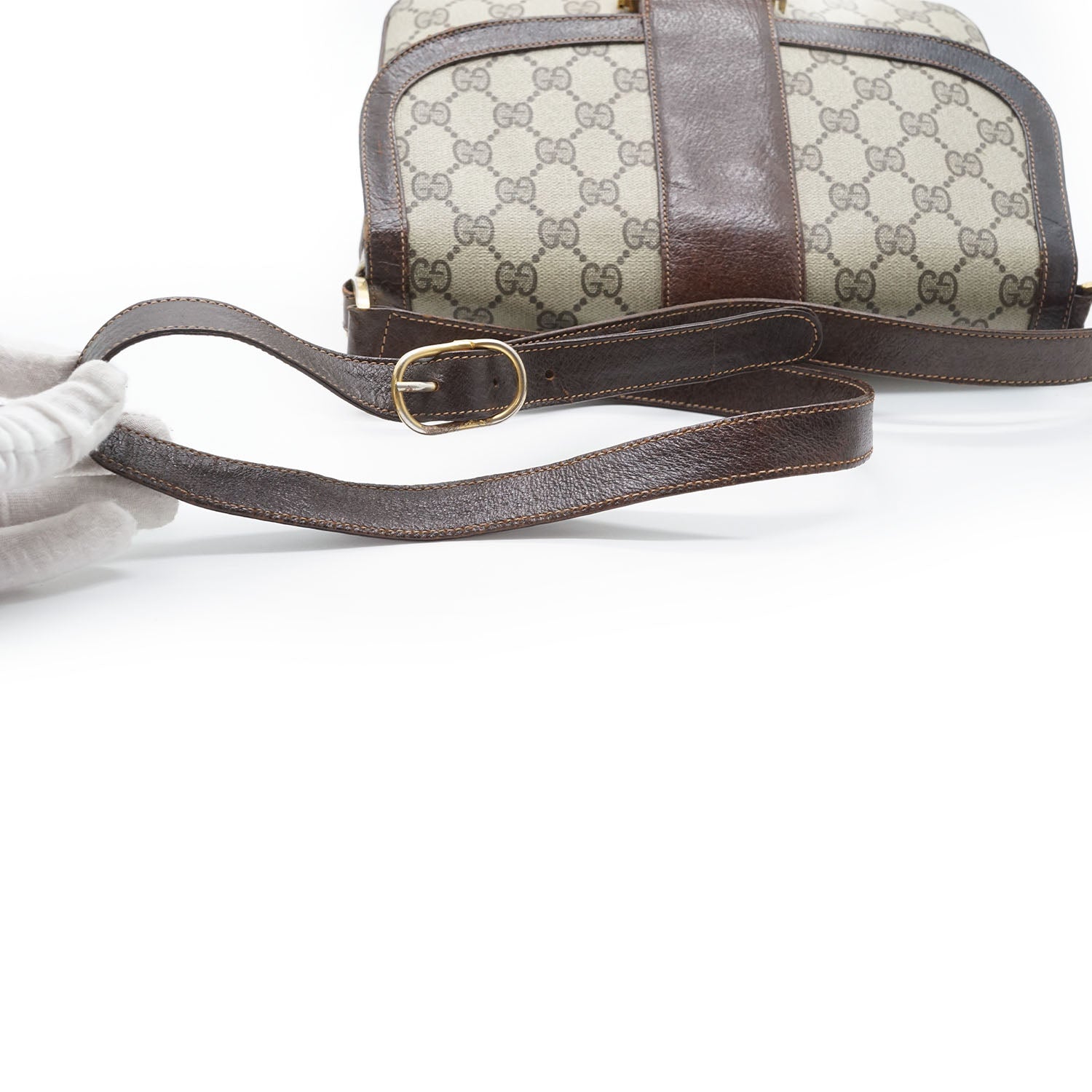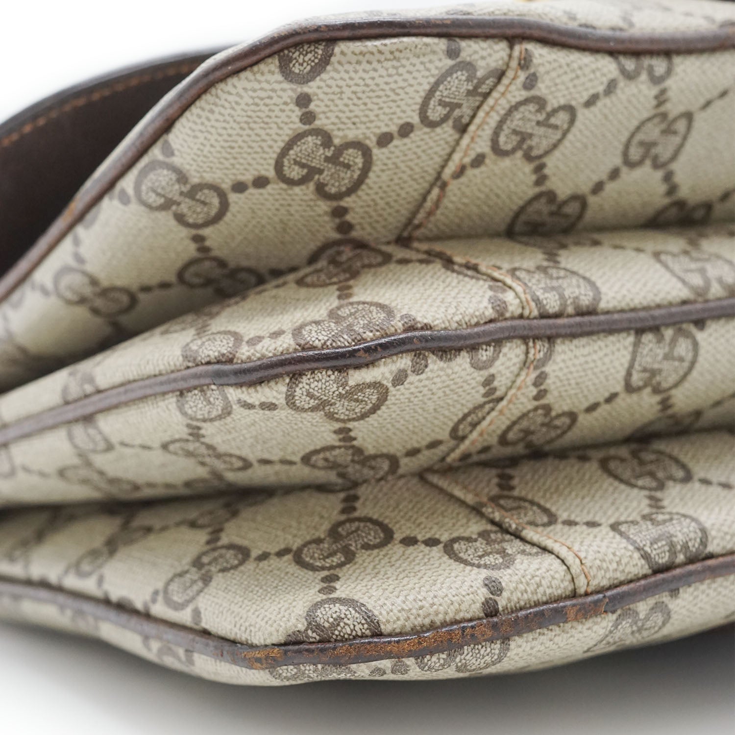GG Supreme Coated Canvas Shoulder Bag Brown Canvas, LeatherDepth: 9.5cmHeight: 19cmWidth: 25.5cmShoulder Drop: 45cmOutside Rank: BCInside Rank: BDiscoloration: Some hardware tarnish/rustPeeling: Visible leather cracking on the strapComments: The clasp is slightly stiff when opening. Verified authentic by Entrupy, certificate available.