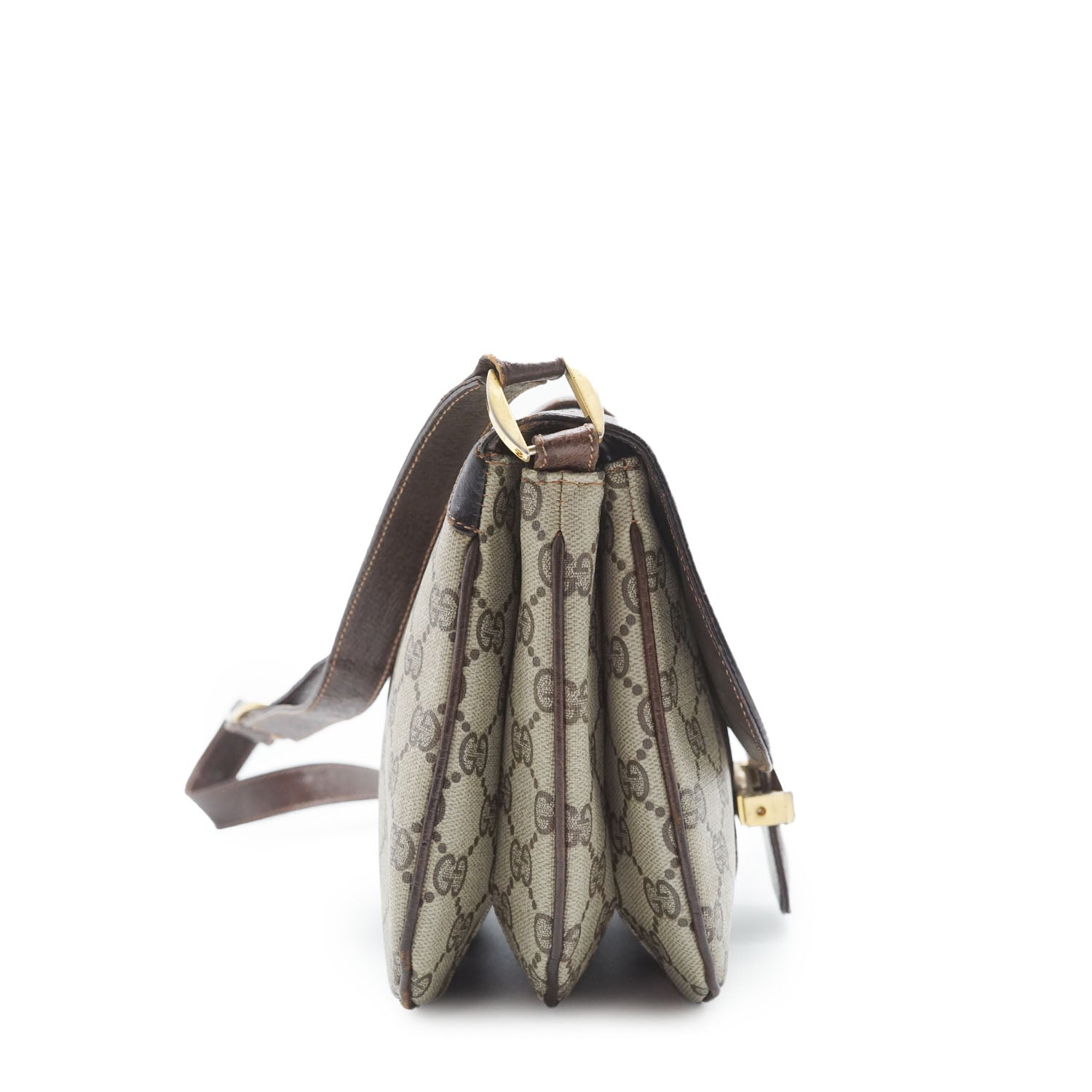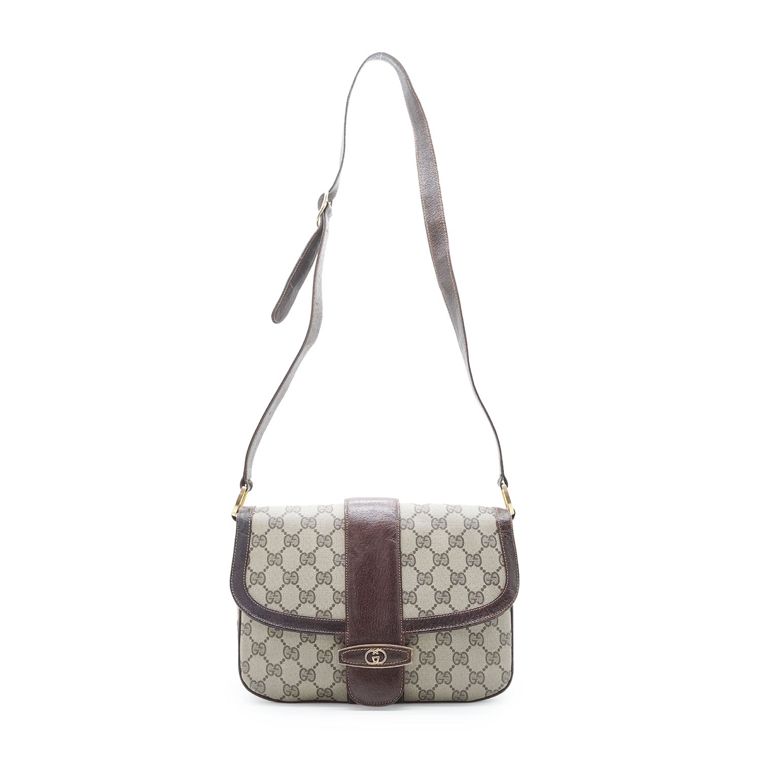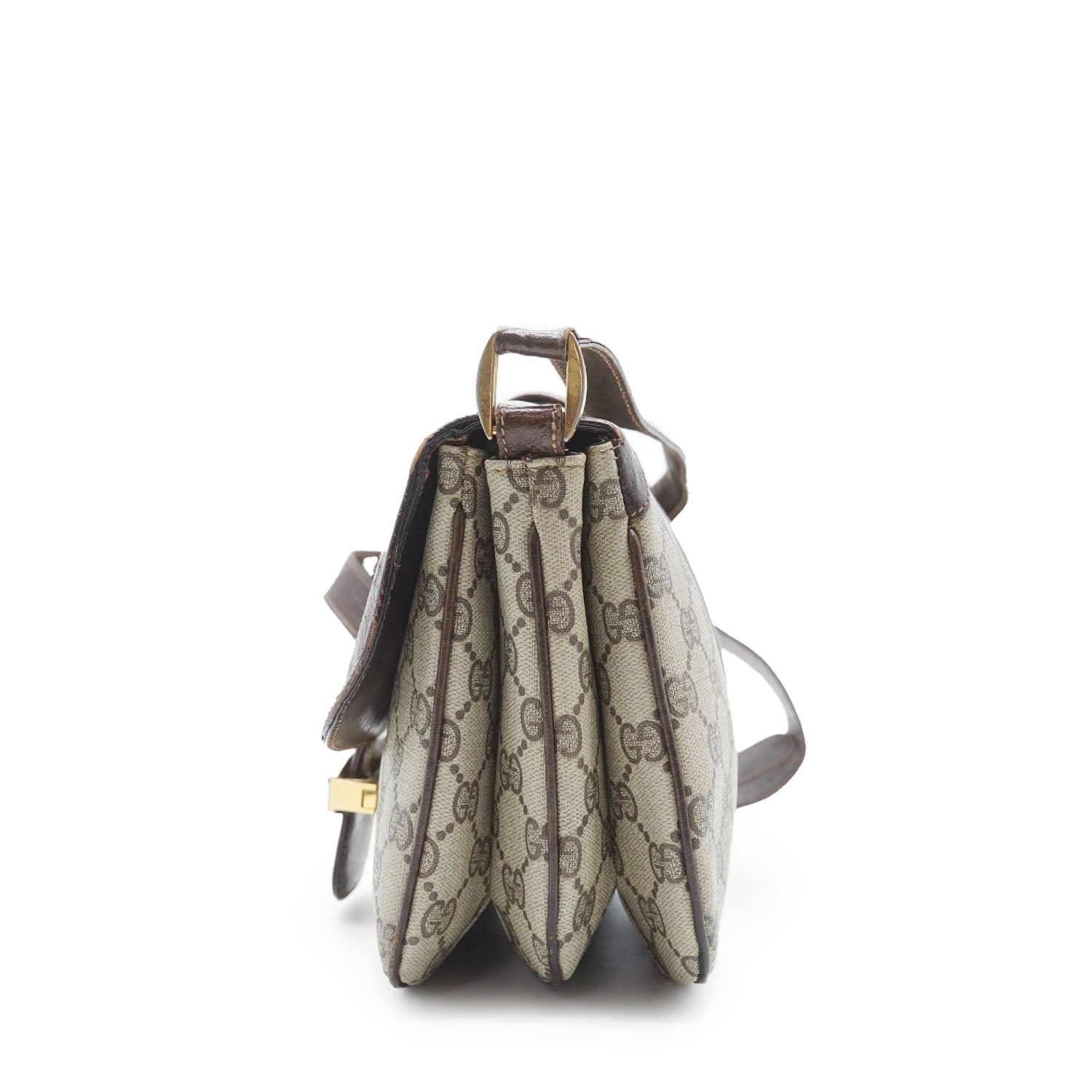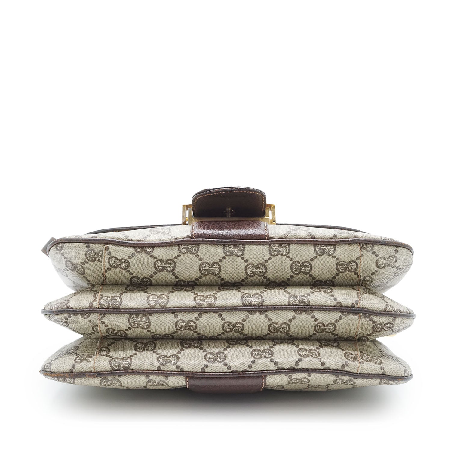 GG Supreme Coated Canvas Shoulder Bag Brown Canvas, LeatherDepth: 9.5cmHeight: 19cmWidth: 25.5cmShoulder Drop: 45cmOutside Rank: BCInside Rank: BDiscoloration: Some hardware tarnish/rustPeeling: Visible leather cracking on the strapComments: The clasp is slightly stiff when opening. Verified authentic by Entrupy, certificate available.