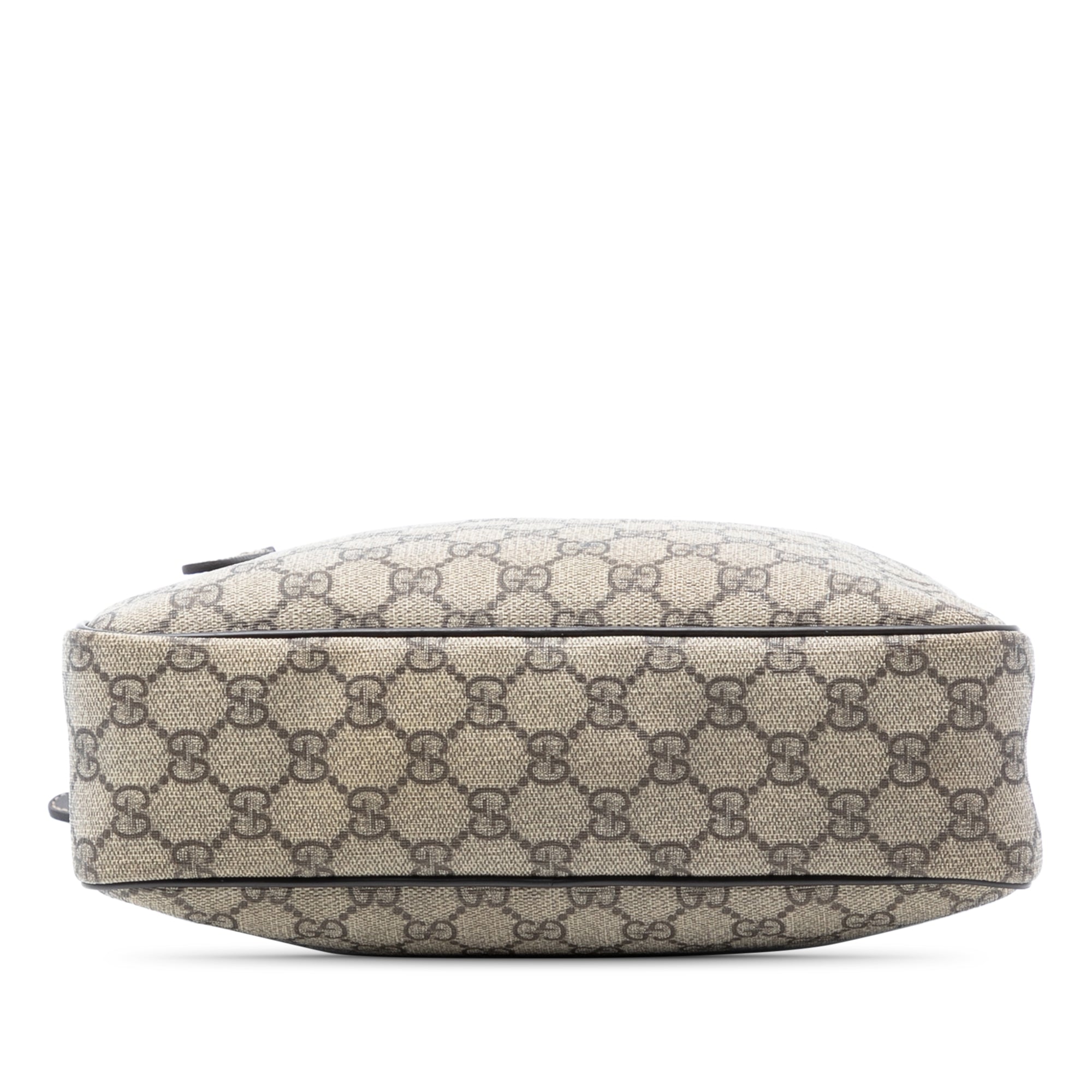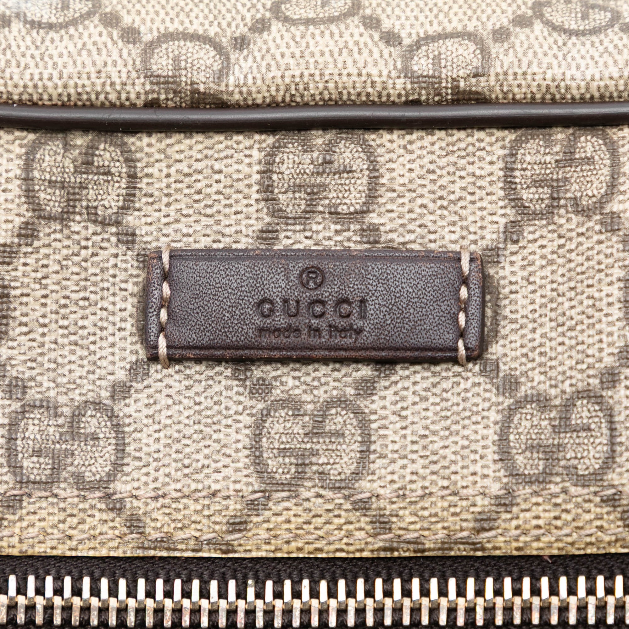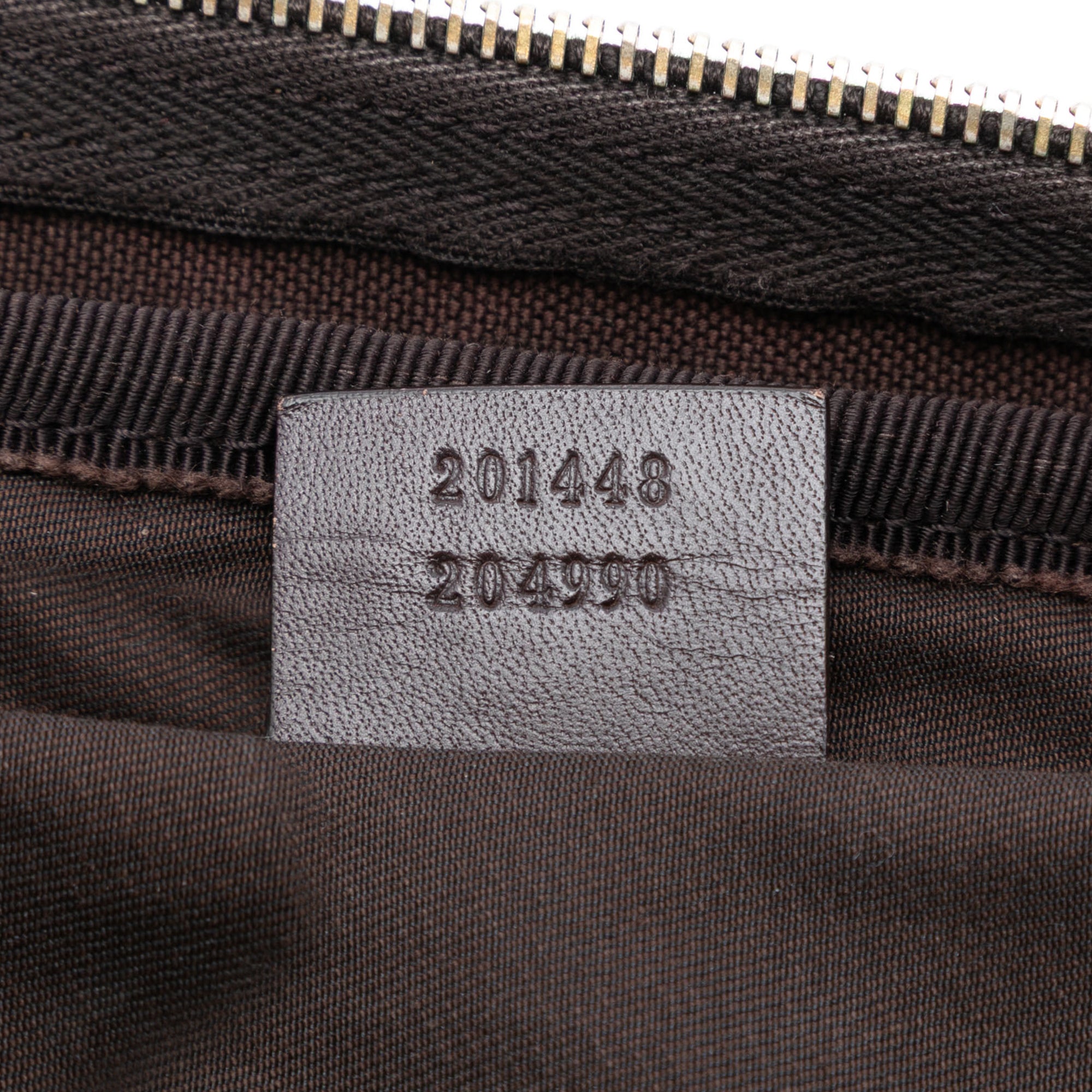 This crossbody bag features a coated canvas body with leather trim, a flat strap, a top zip closure, an exterior front zip pocket, and an interior slip pocket. Retail Price: 1350.00