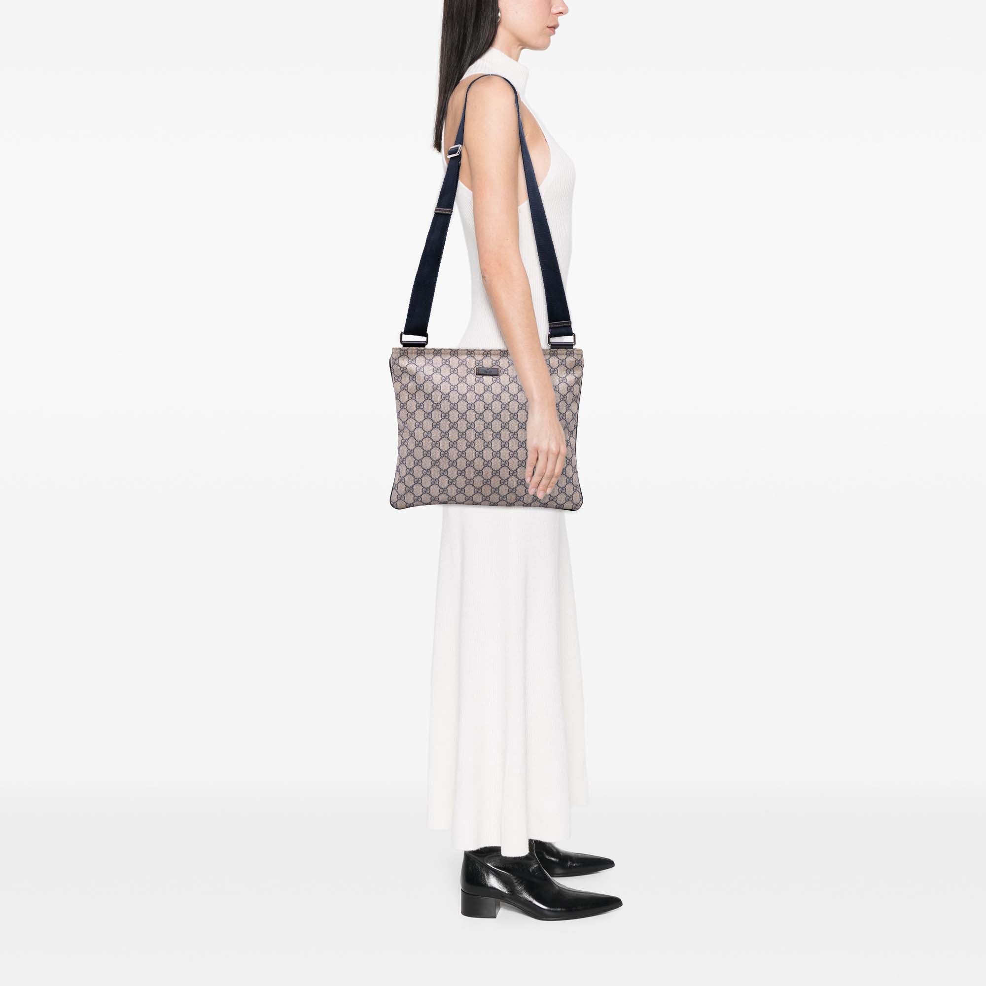 This crossbody bag features a coated canvas body with leather trim, an adjustable flat shoulder strap, a top zip closure, and an interior slip pocket. Inclusion: Dust bag. Retail Price: 990.00