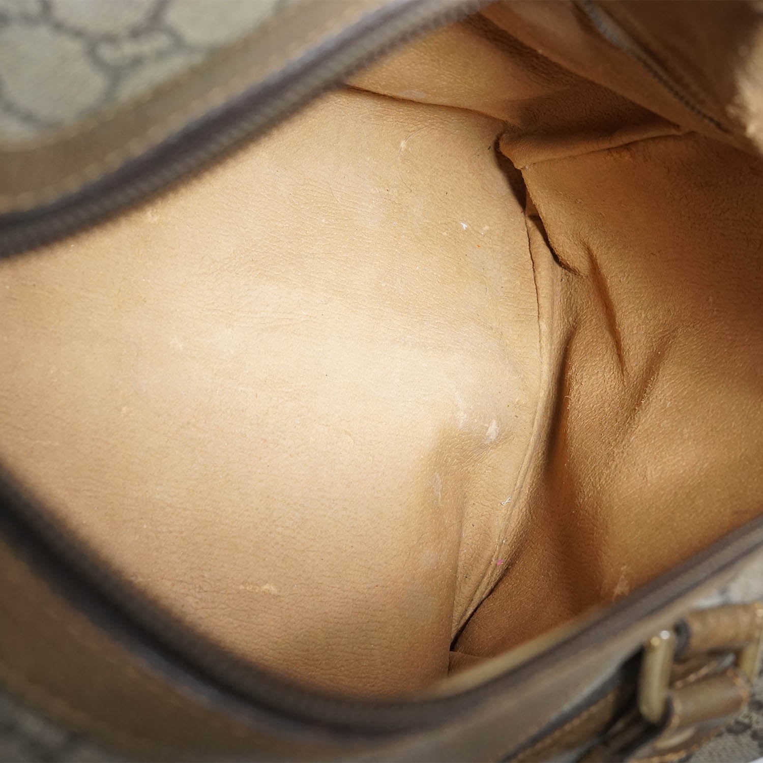 GG Supreme Gucci Plus Vintage Coated Canvas Boston Bag Brown Canvas, LeatherDepth: 16cmHeight: 20cmWidth: 28cmHand Drop: 15cmCOutside Rank: BCInside Rank: BCStain: Some pen marks on the insideDiscoloration: Hardware tarnishScratch: Corner rub, rubbing along the leather piping, some scratches on the leather parts and insidePeeling: Some peeling throughout the inside fabricInclude: Authenticity card, guarantee certificateComments: The leather zipper pull has been fixed by staples (external repair)Serial code: 15995