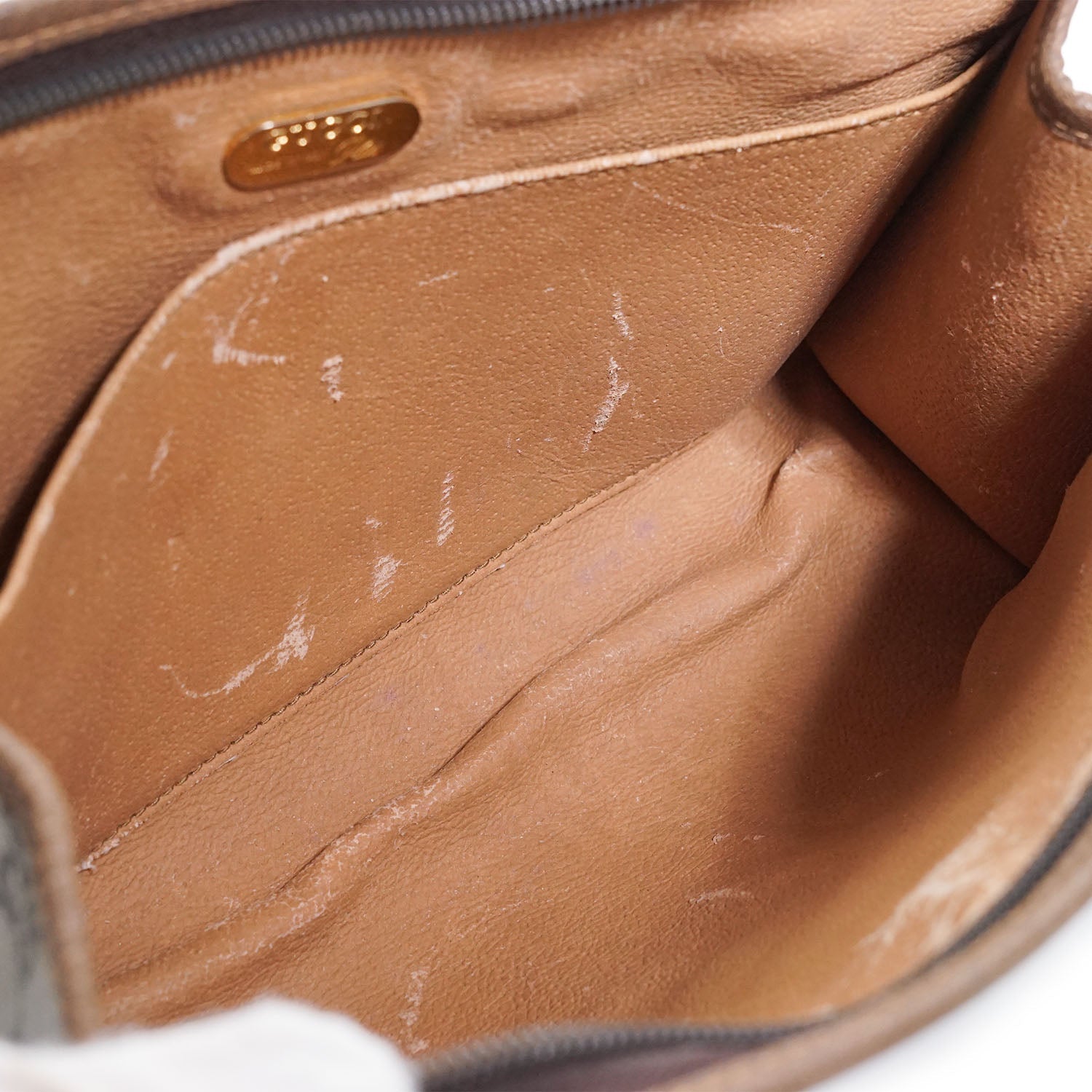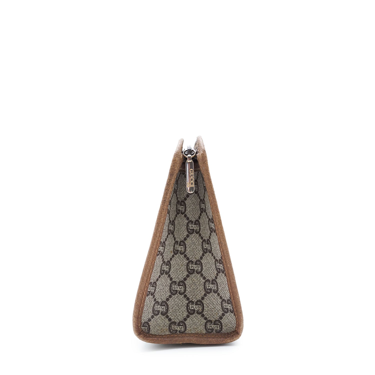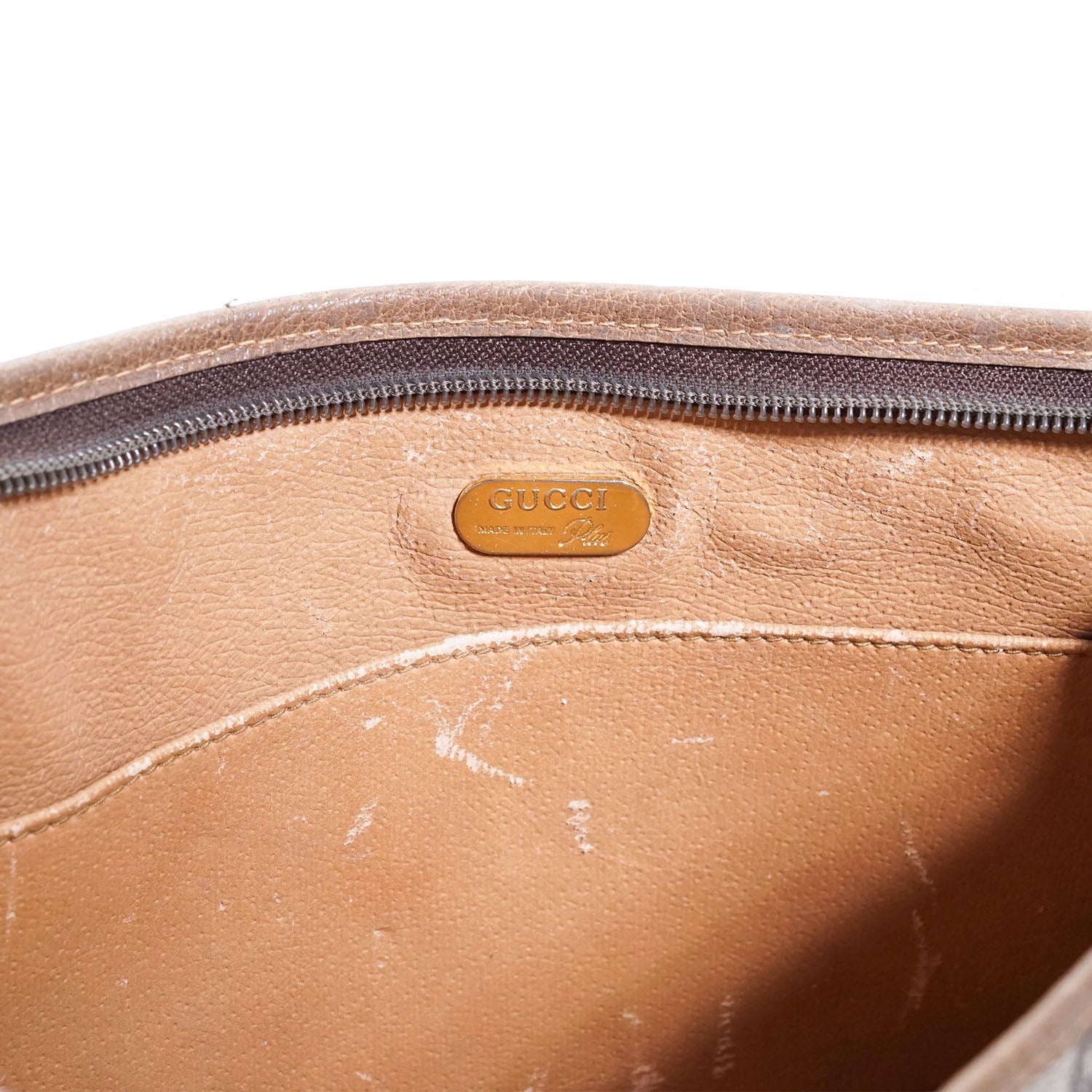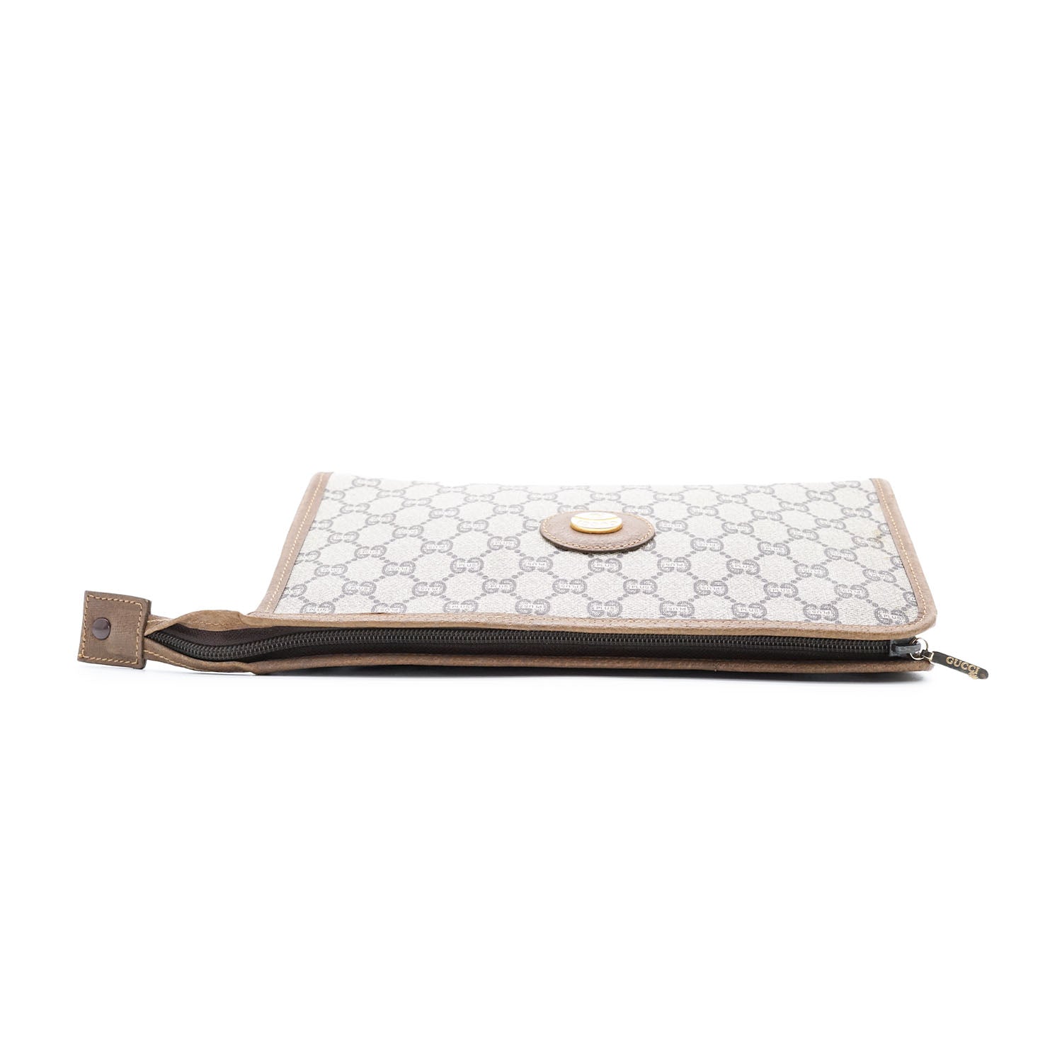 GG Supreme Gucci Plus Vintage Coated Canvas Clutch Brown Canvas, LeatherDepth: 8.5cmHeight: 16.5cmWidth: 27.5cmStain: Small pen marks on the insideDiscoloration: Some tarnish on the hardwarePeeling: Some peeling throughout the inside/inside pocket (with no fabric residue)