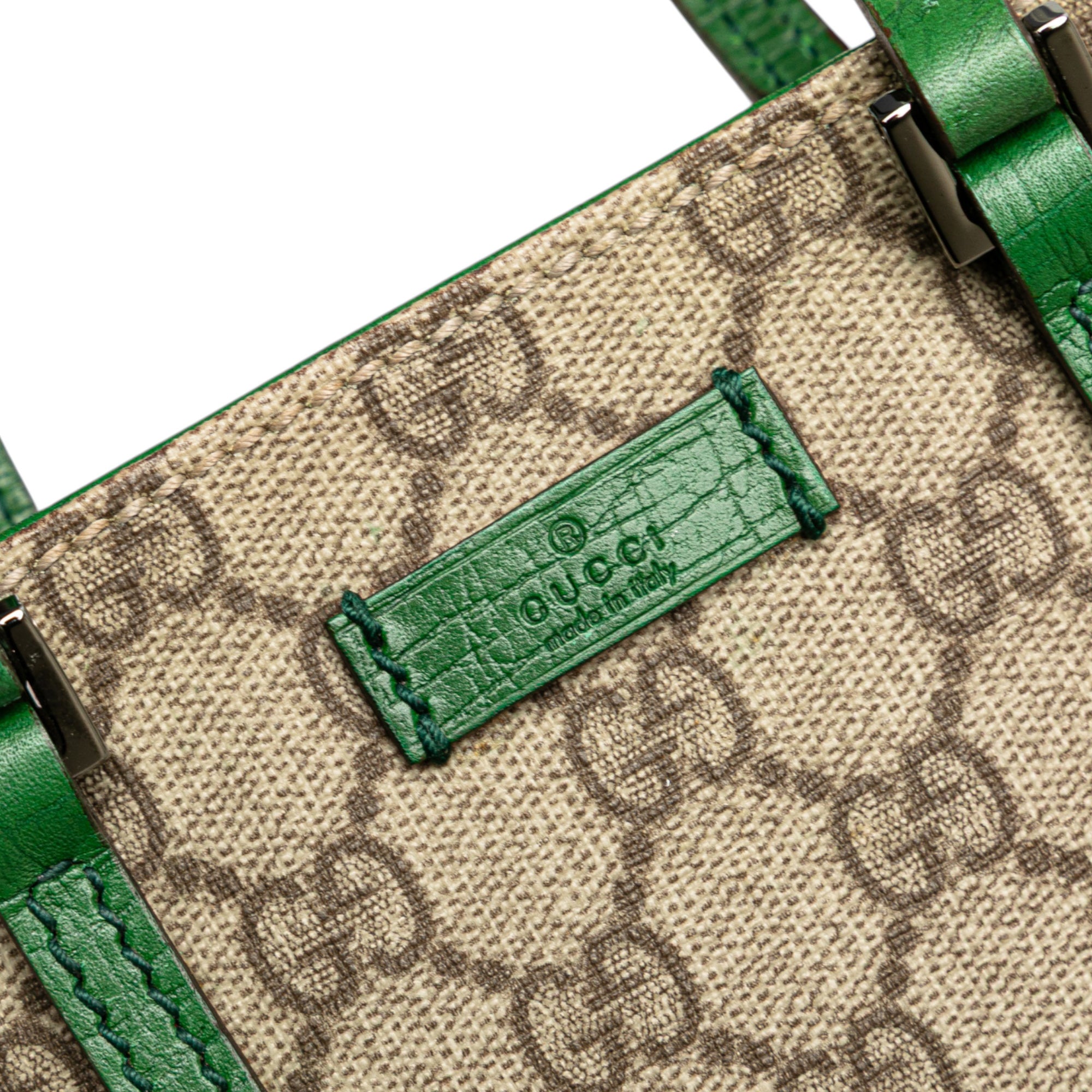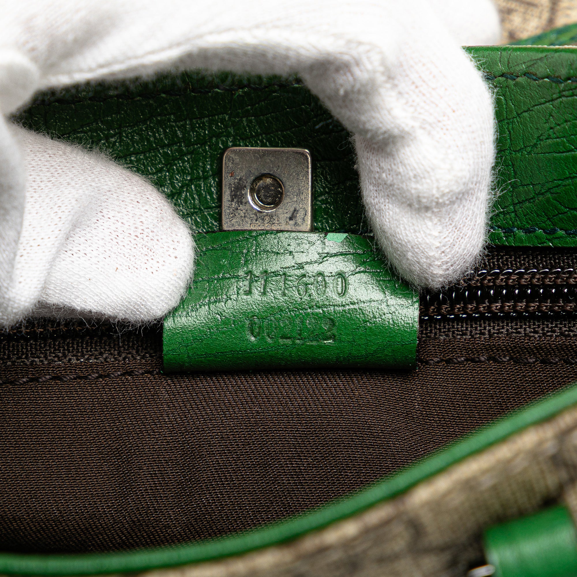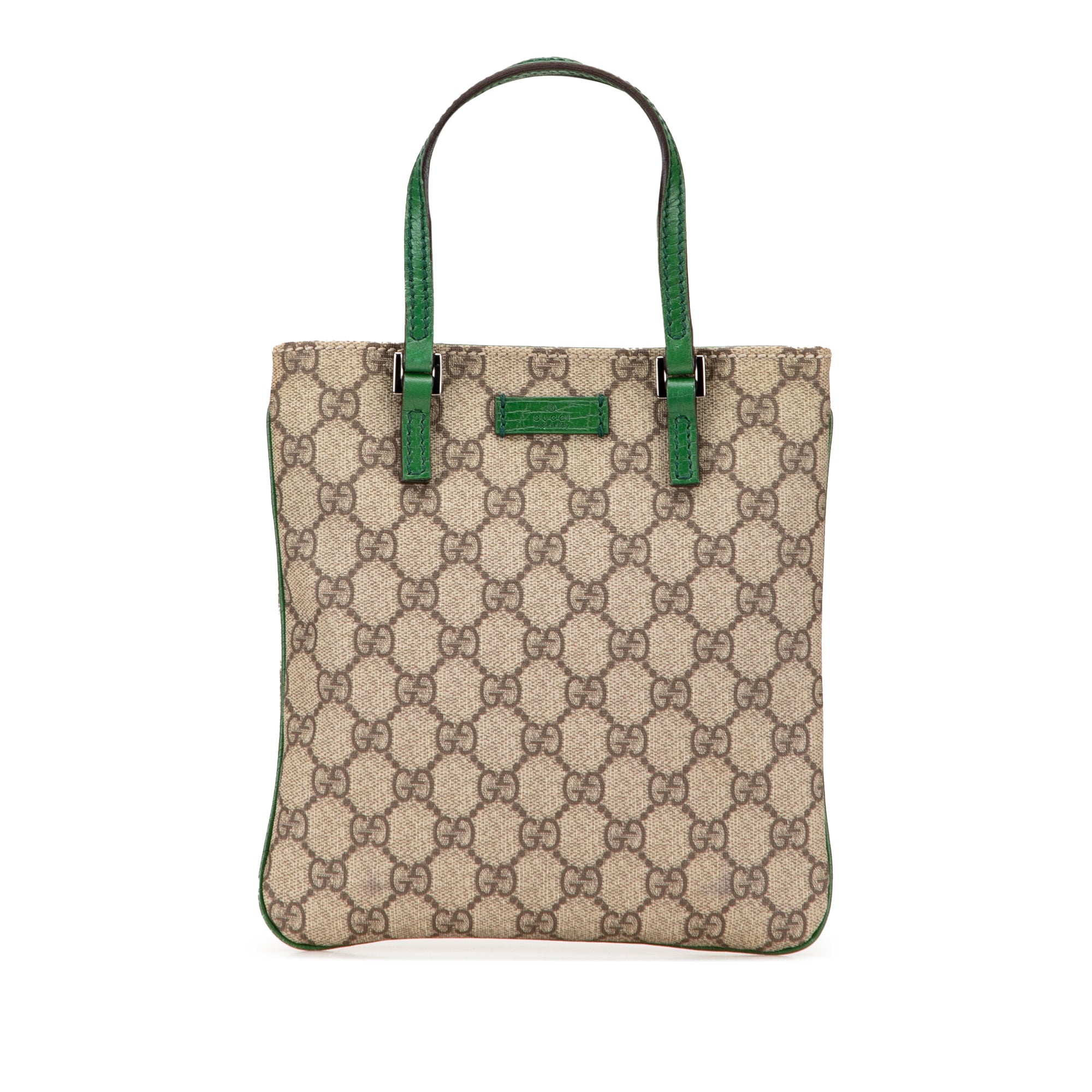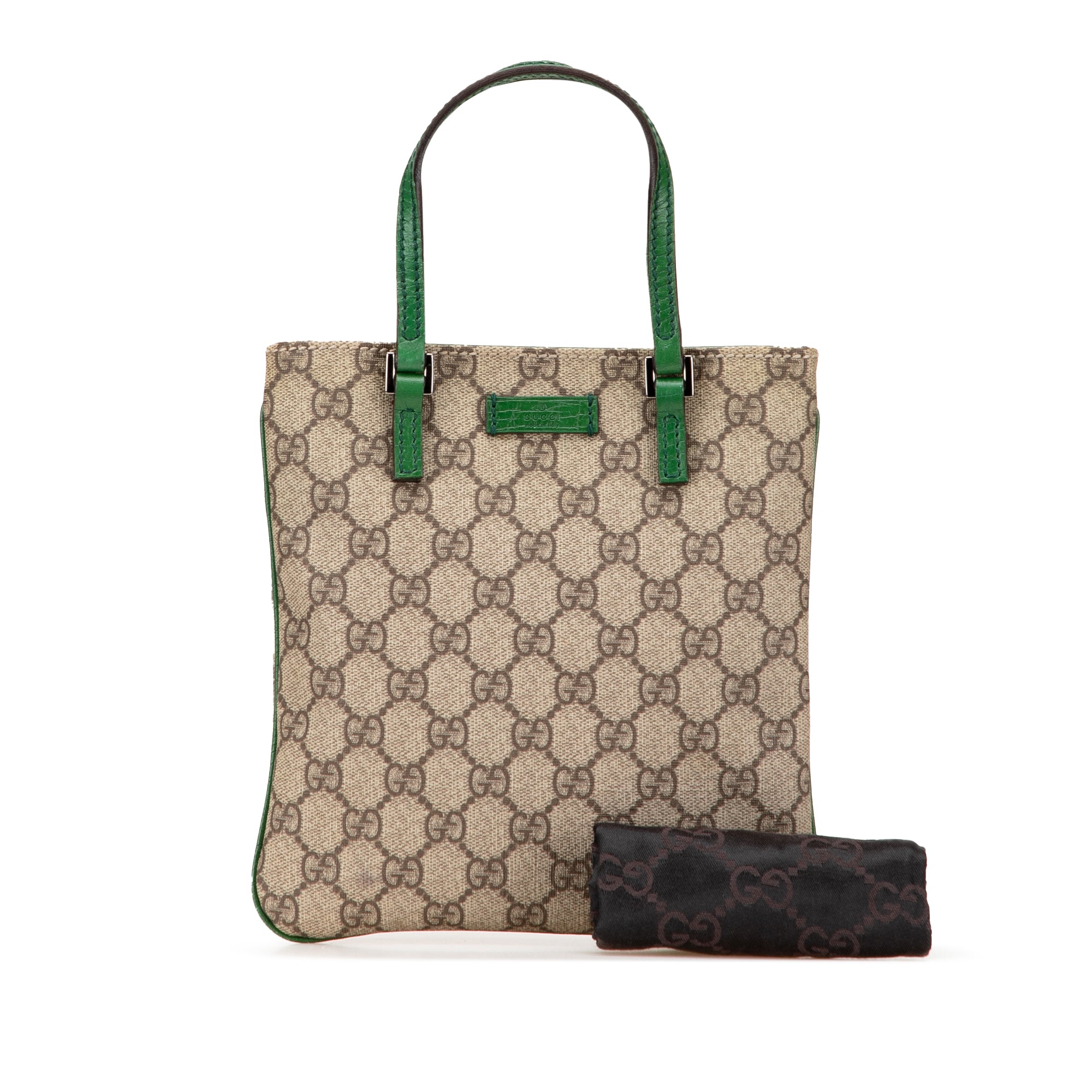 This handbag features a coated canvas body with leather trim, flat leather handles, an open top with magnetic snap closure, and an interior zip pocket. Inclusion: Dust bag. Retail Price: 780.00