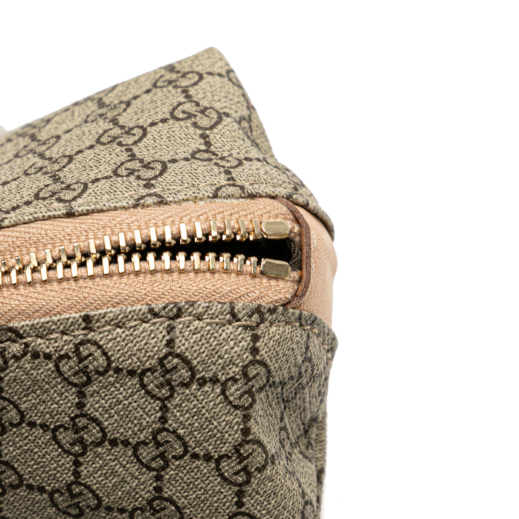 This pouch features a coated canvas and leather body, and a top zip closure. Retail Price: 550.00