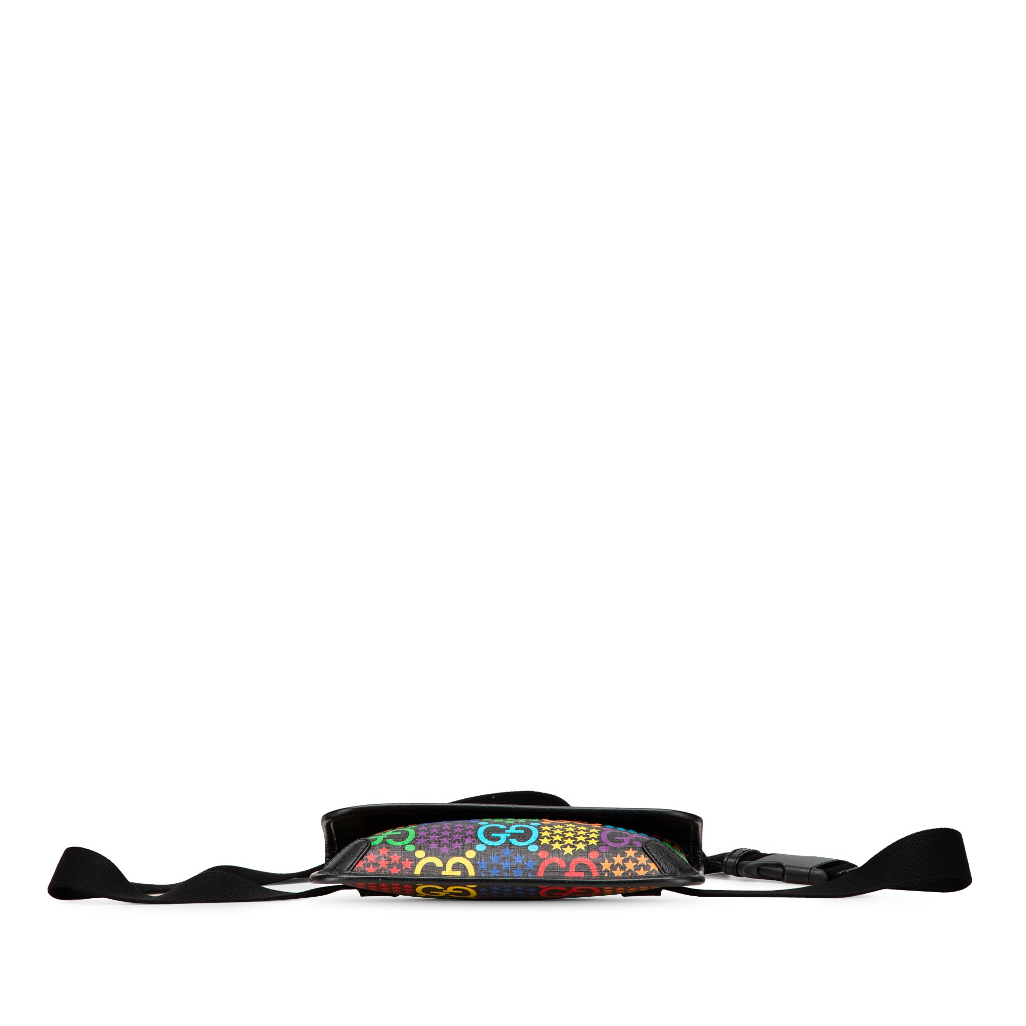 This belt bag features a coated canvas body with leather trim, a flat and adjustable nylon waist strap, a fold over front flap, and an interior slip pocket. Retail Price: 1240.00
