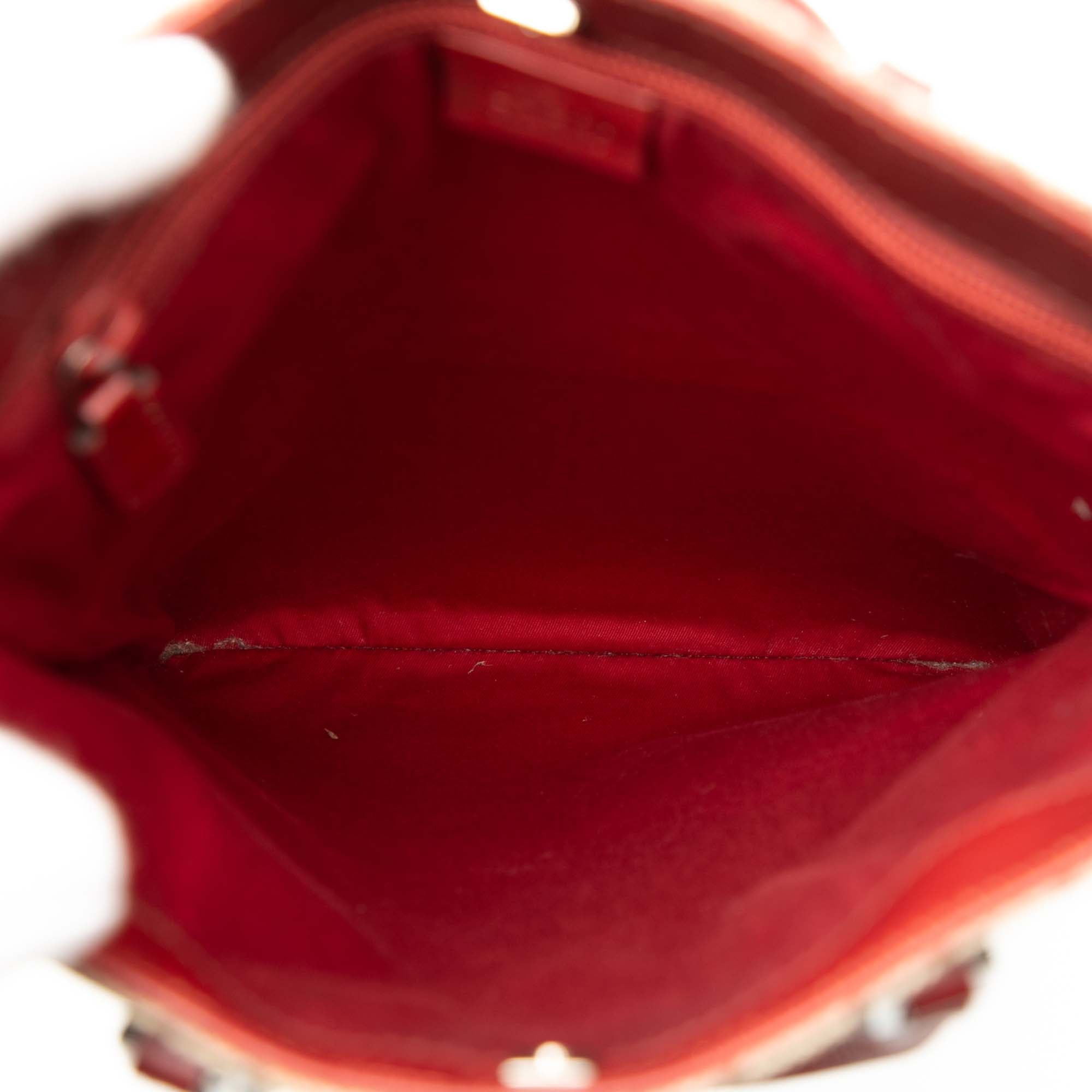 This tote bag features a coated canvas body, flat leather straps, an open top with a magnetic snap button closure, and an interior zip pocket. Inclusion: Dust bag. Retail Price: 1200.00