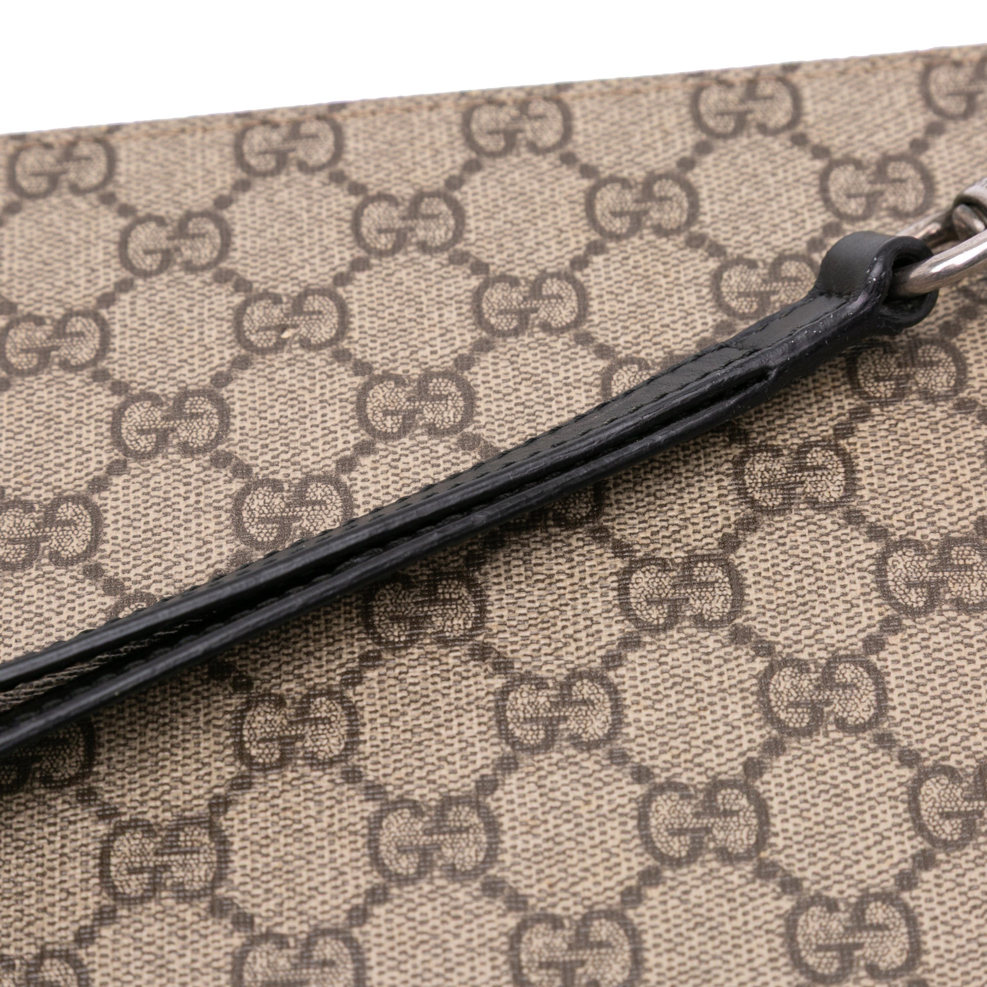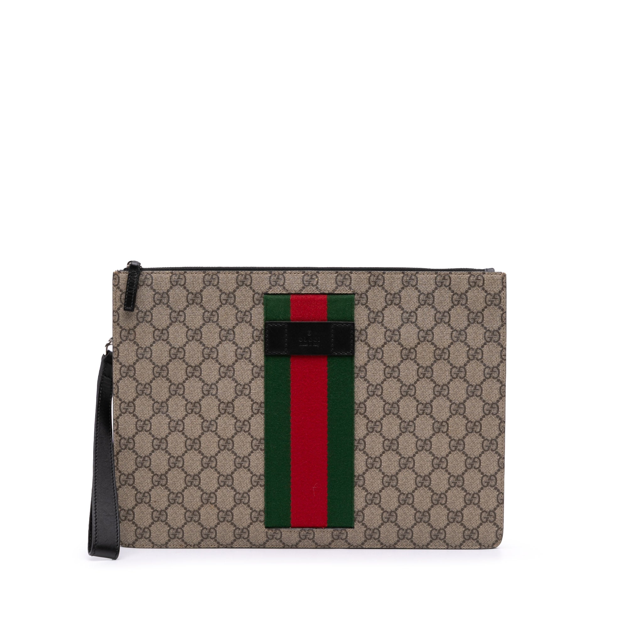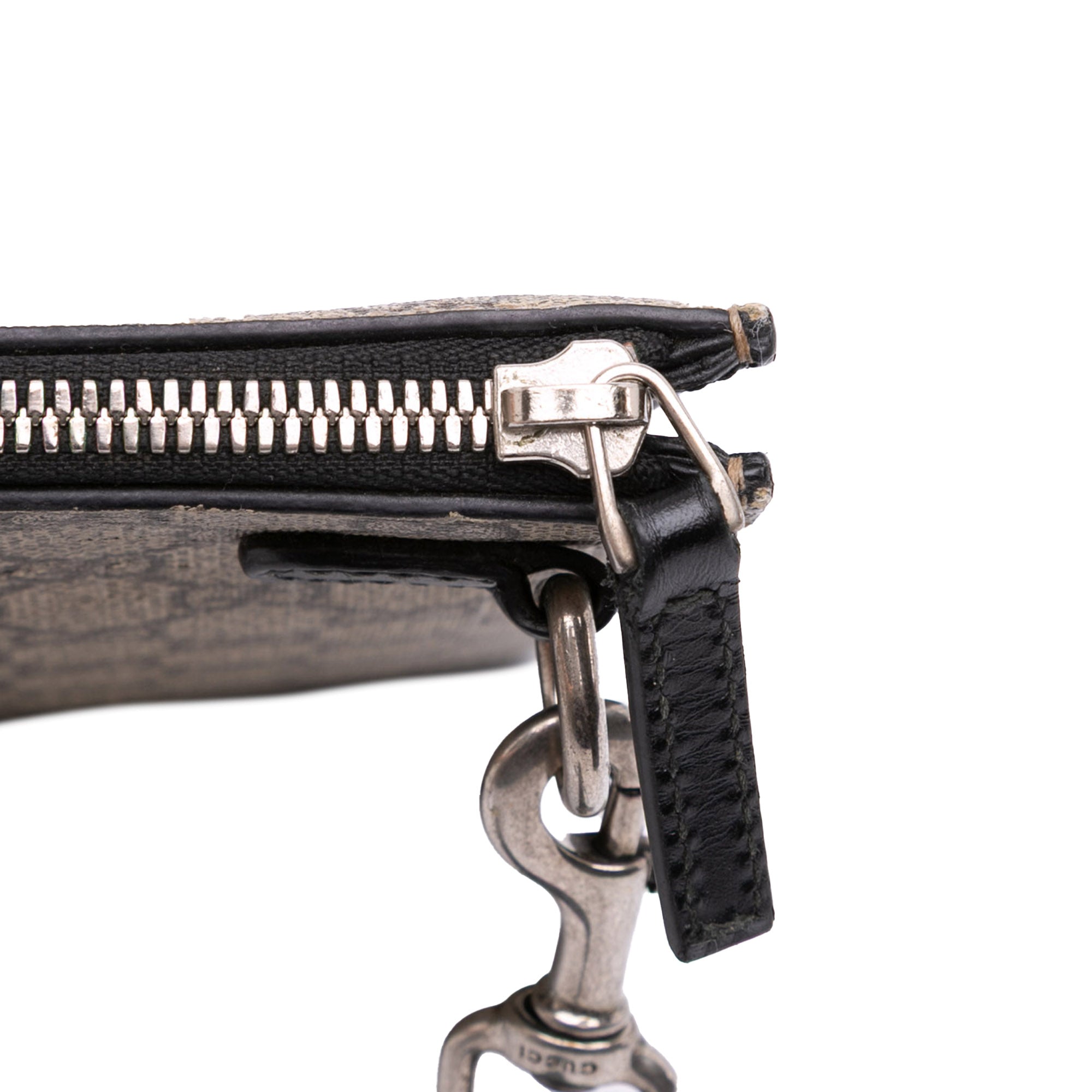 This clutch bag features a coated canvas body with web detail, a top zip closure, and an interior zip pocket. Retail Price: 1250.00