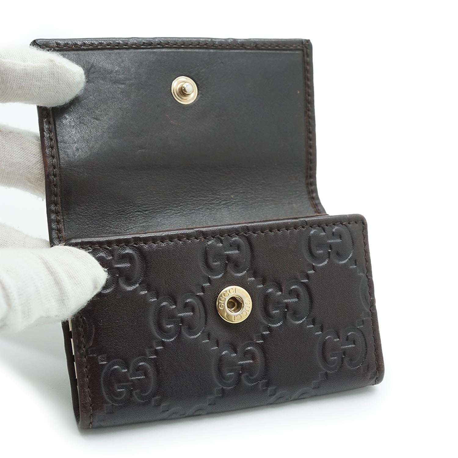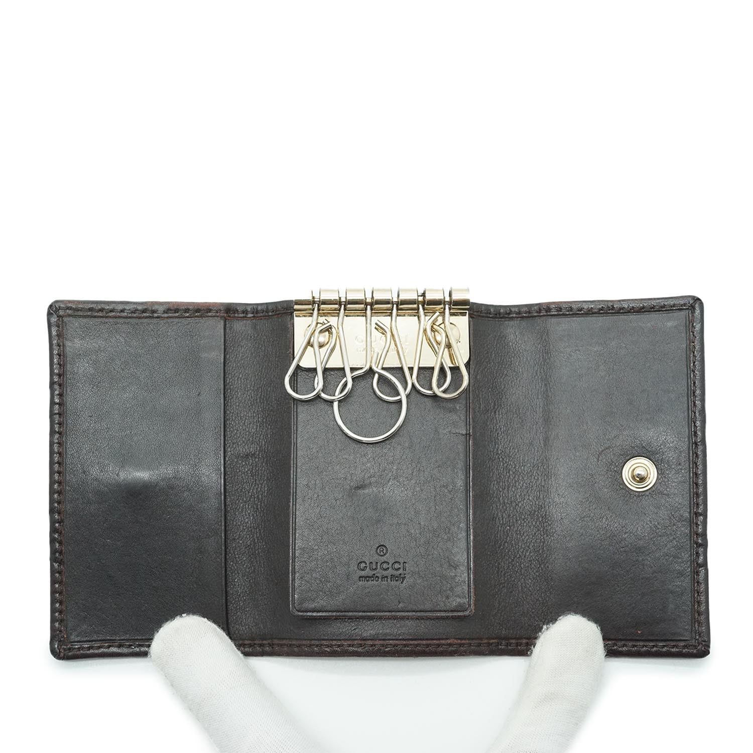 Guccissima 6 Row Key Case Black LeatherDepth: 1cmHeight: 6.5cmWidth: 9.5cmOutside Rank: BInside Rank: BDiscoloration: Some hardware tarnishScratch: A bit on the corners (corner rub)Peeling: Some peeling leather on the insideWorn: Previous use evidentOdor: No odor presentSKU: 6100087