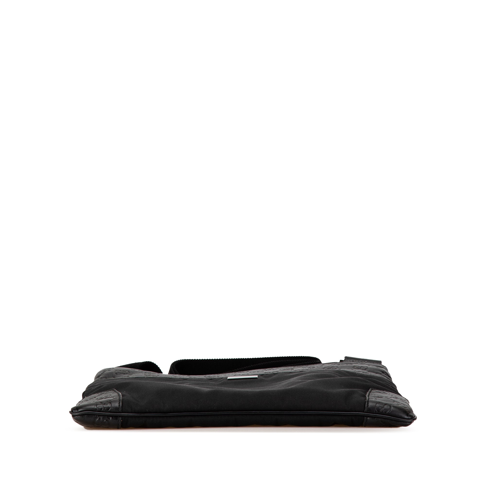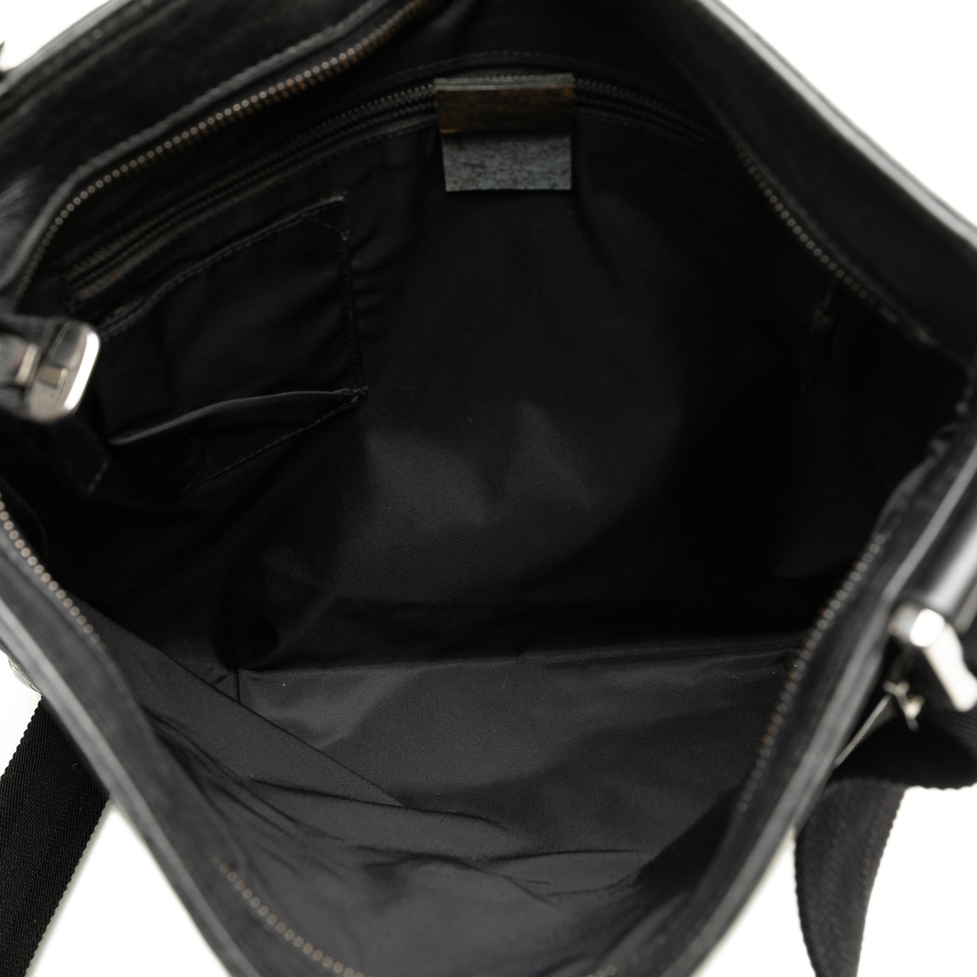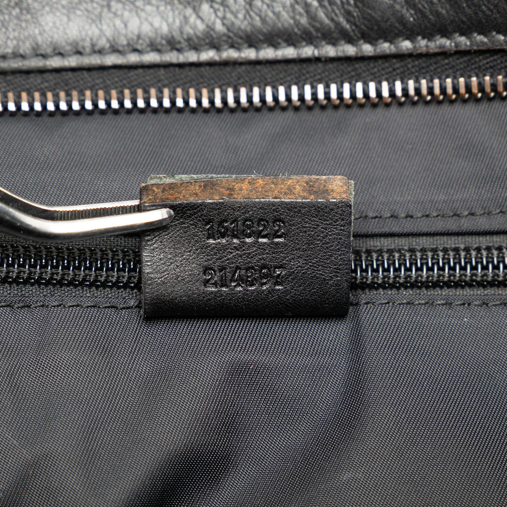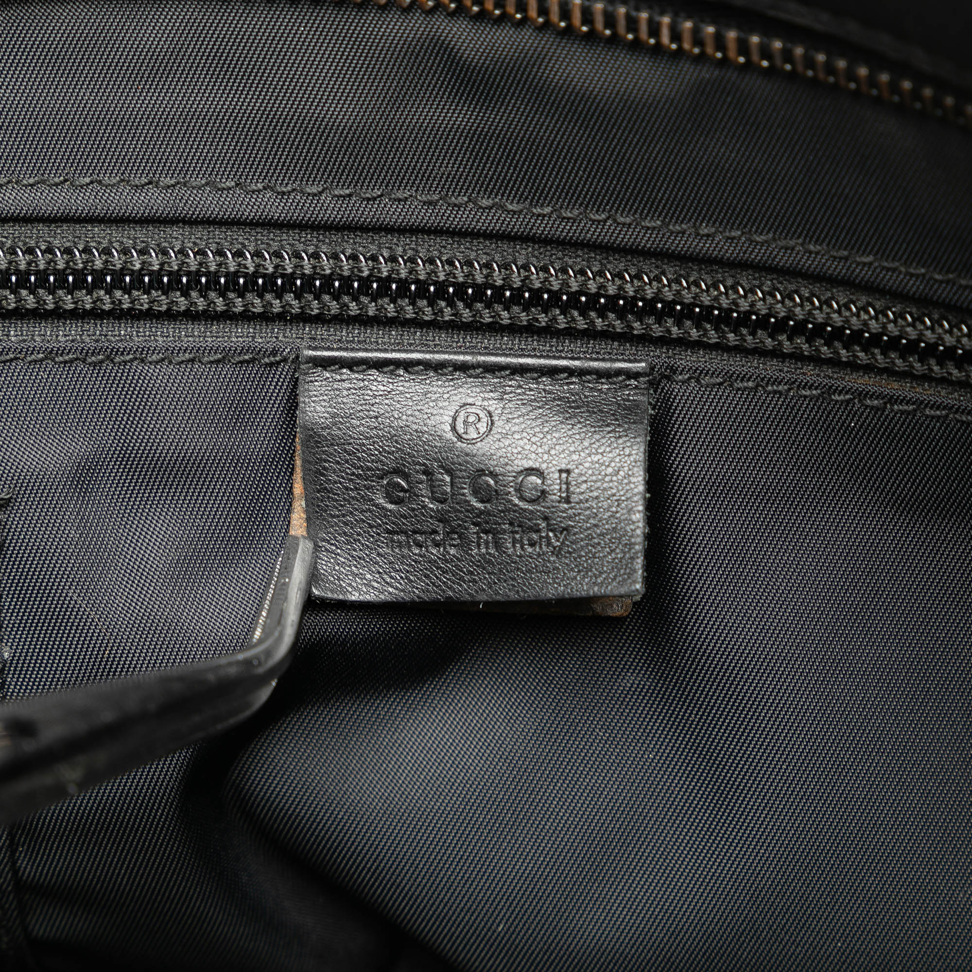 This crossbody bag features a nylon body with guccissima leather trim, an adjustable flat shoulder strap, a top zip closure, an exterior slip pocket, and interior zip and slip pockets. Retail Price: 800.00