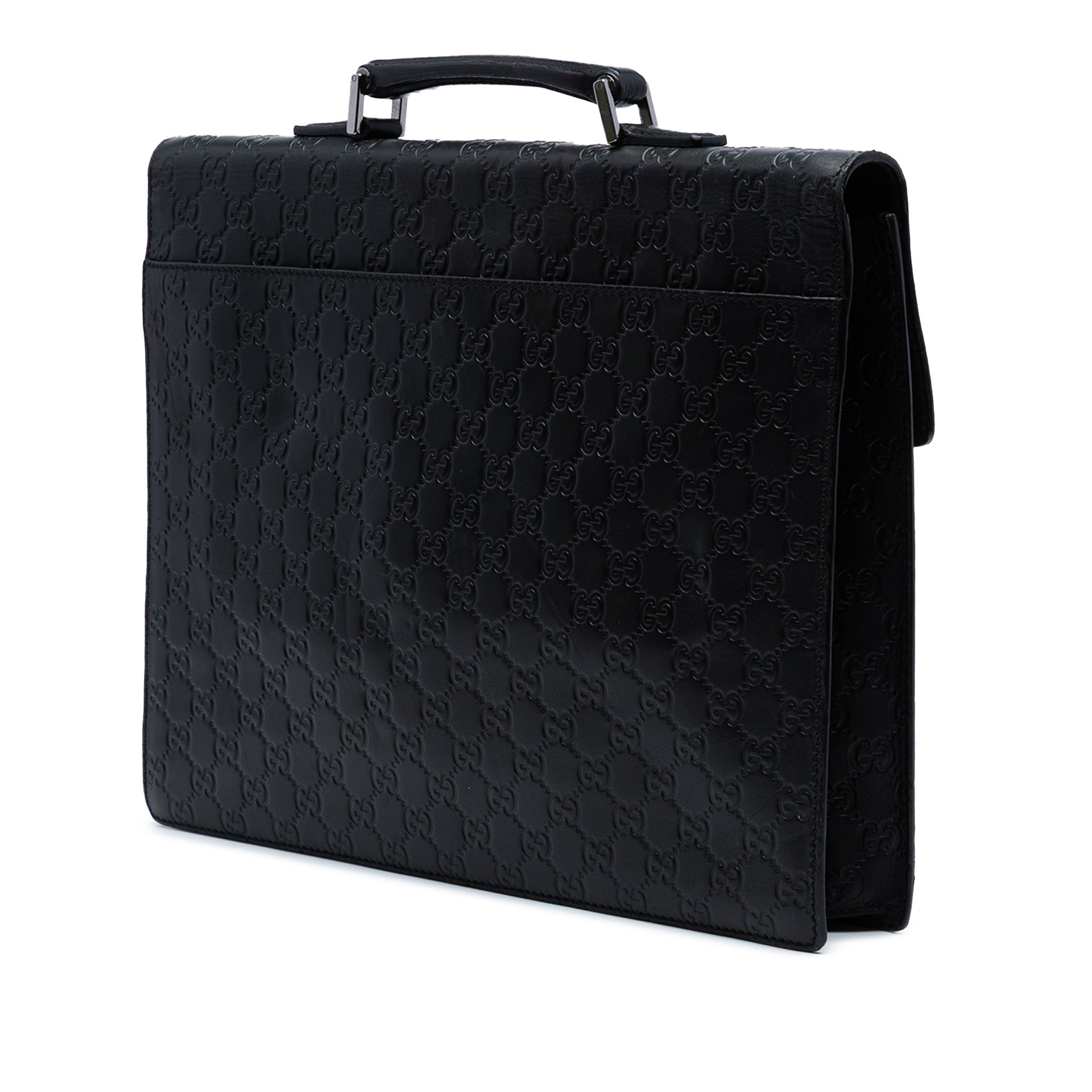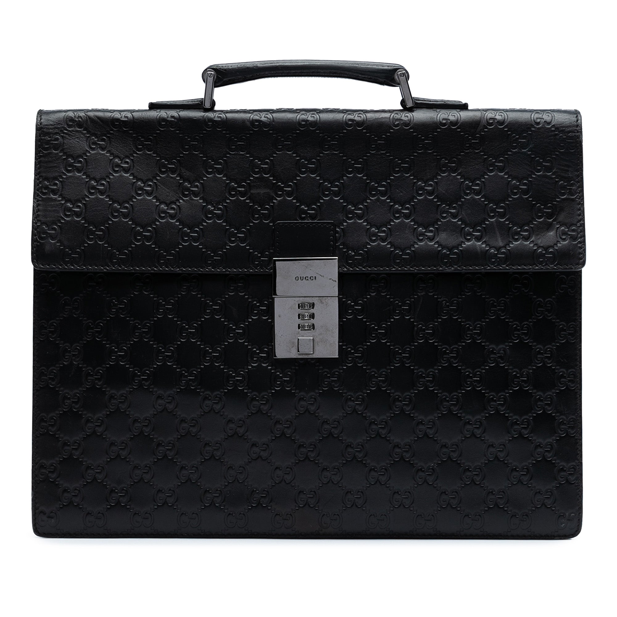 This business bag features an embossed leather body, a leather top handle, a top flap with dial closure, and interior zip and slip pockets. Retail Price: 1950.00