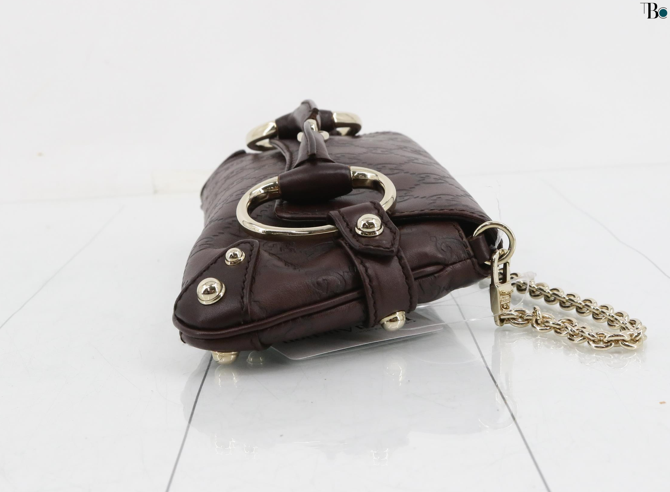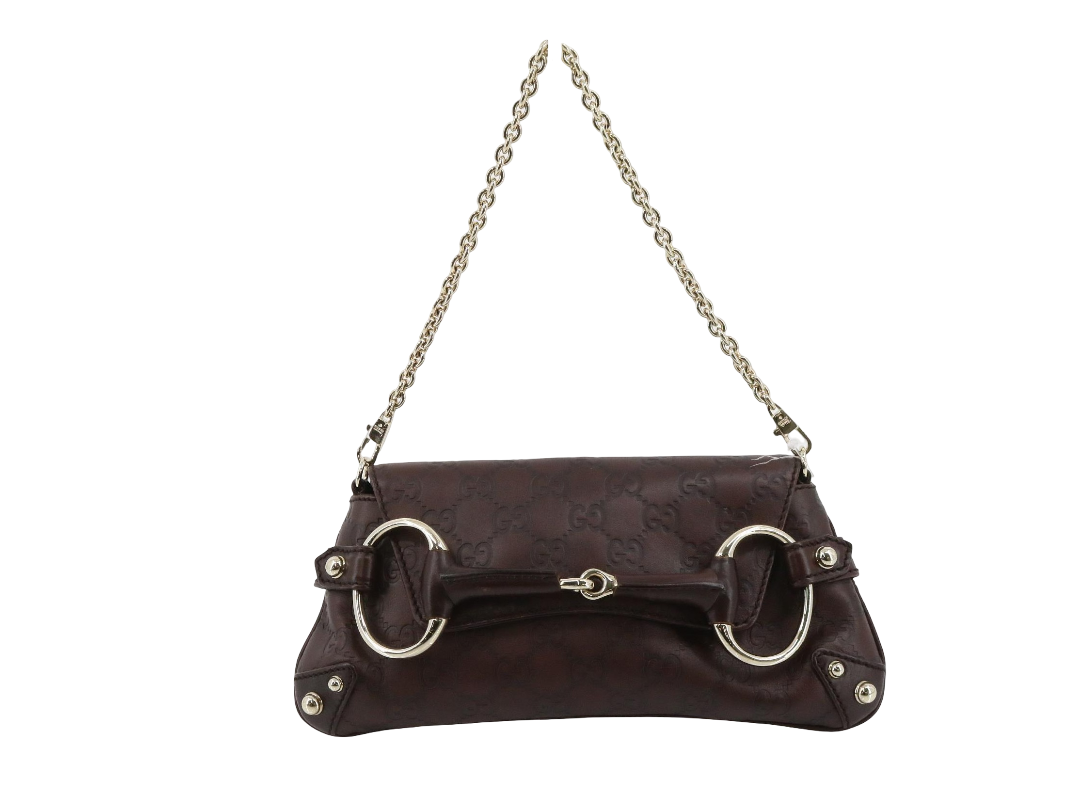 Brand : Gucci Model : Horsebit chain clutch Style : Leather Dimensions (W x H x D) : 26cm x 1cm x 14cm Serial number : 131470