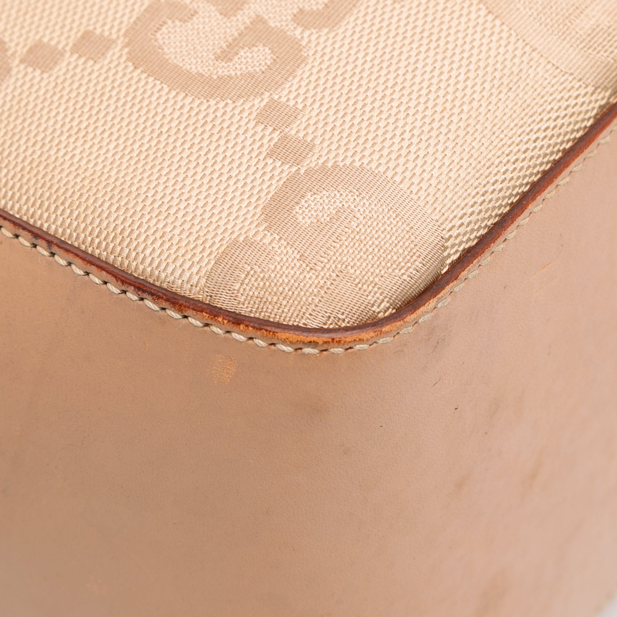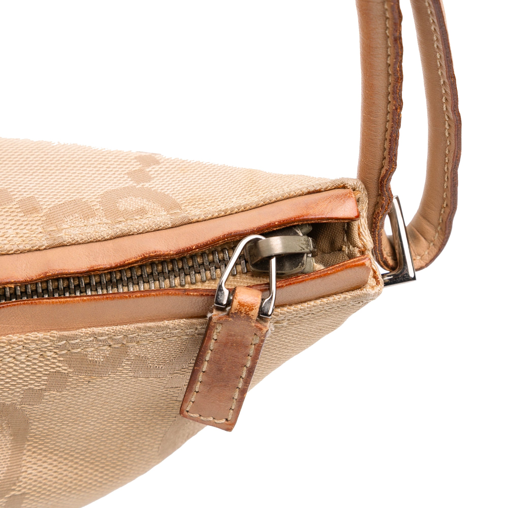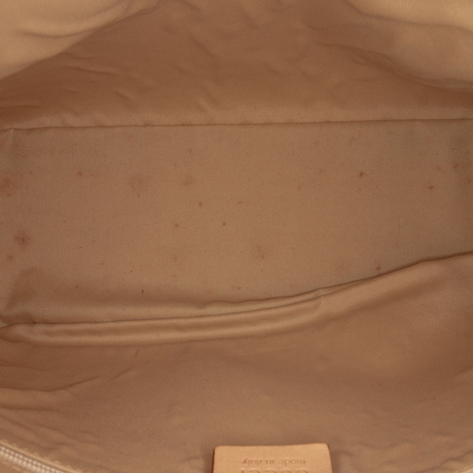 This shoulder bag features a canvas body with leather trim , a flat leather shoulder strap, a 2 way top zip closure, and an interior zip pocket. Retail Price: 900.00