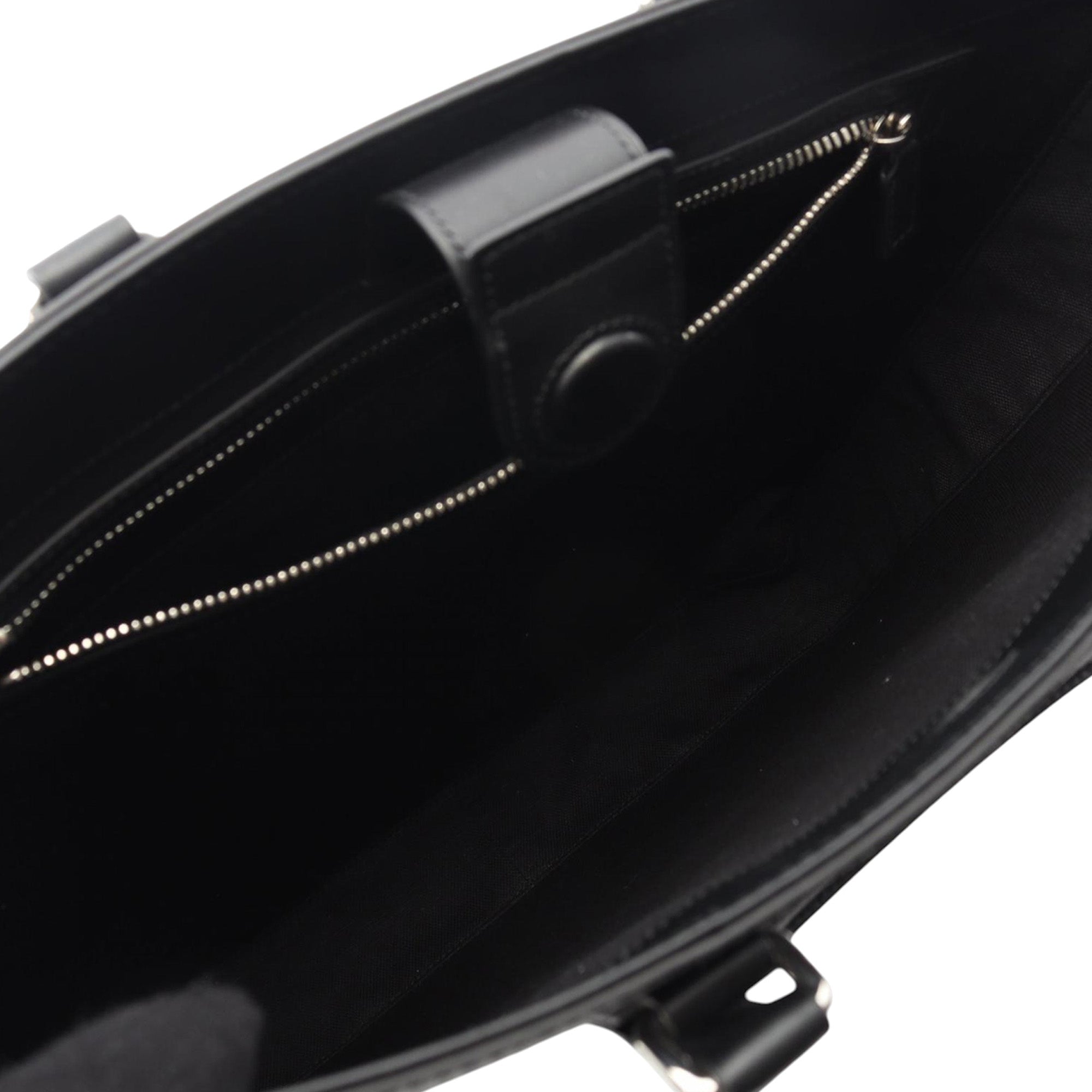 This satchel features a coated canvas body with leather trim, rolled leather handles, an adjustable and detachable flat canvas web strap, an open top with magnetic snap closure, and interior zip and flap pockets. Inclusion: Dust bag. Retail Price: 2500.00
