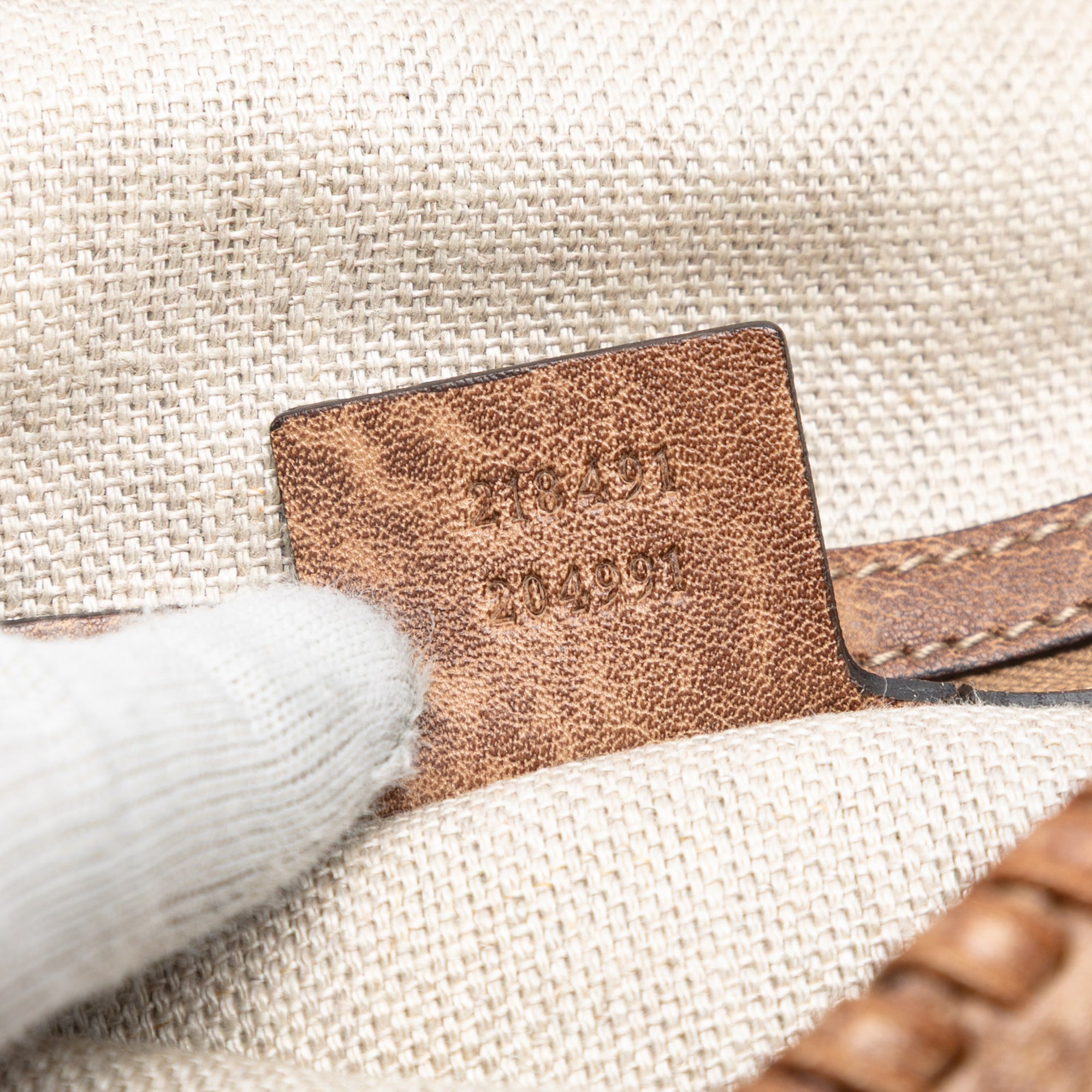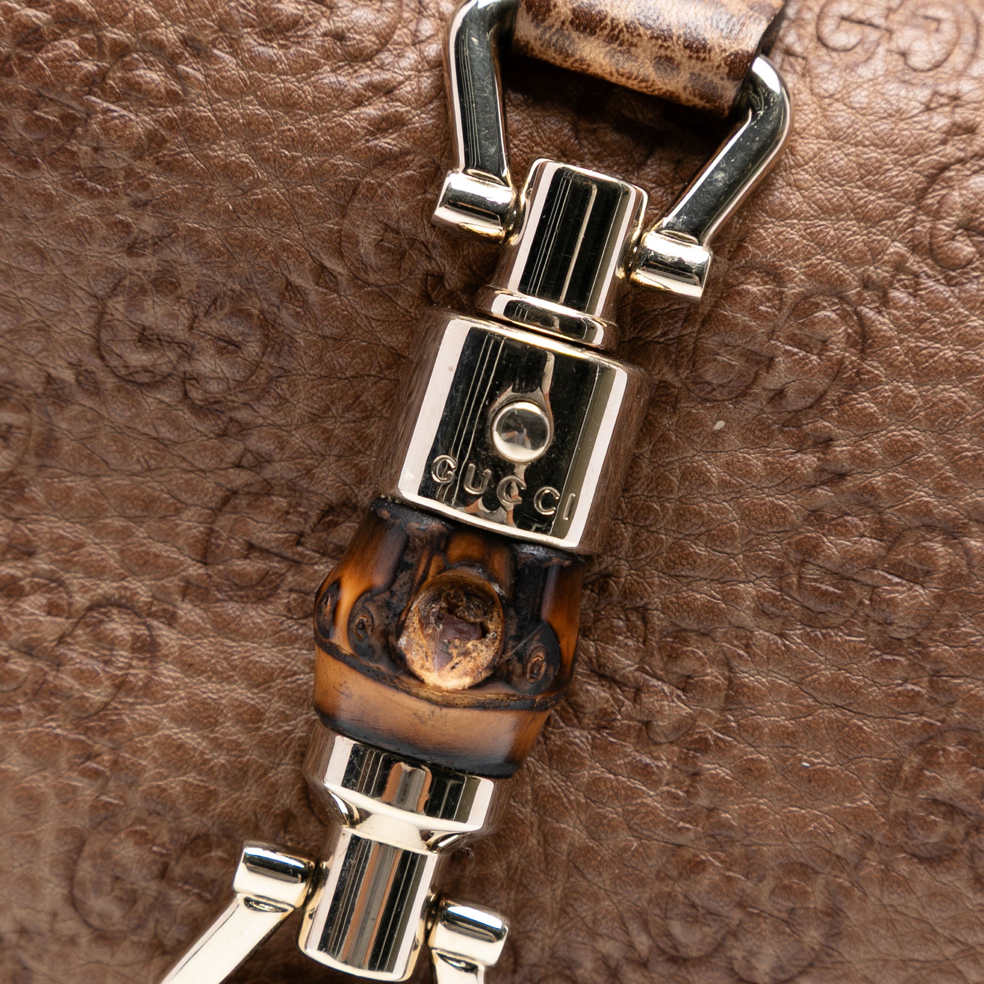 The New Jackie features a leather body, a flat leather strap, a detachable flat strap, an open top with a piston lock front closure, and an interior zip pocket. Retail Price: 2598.00