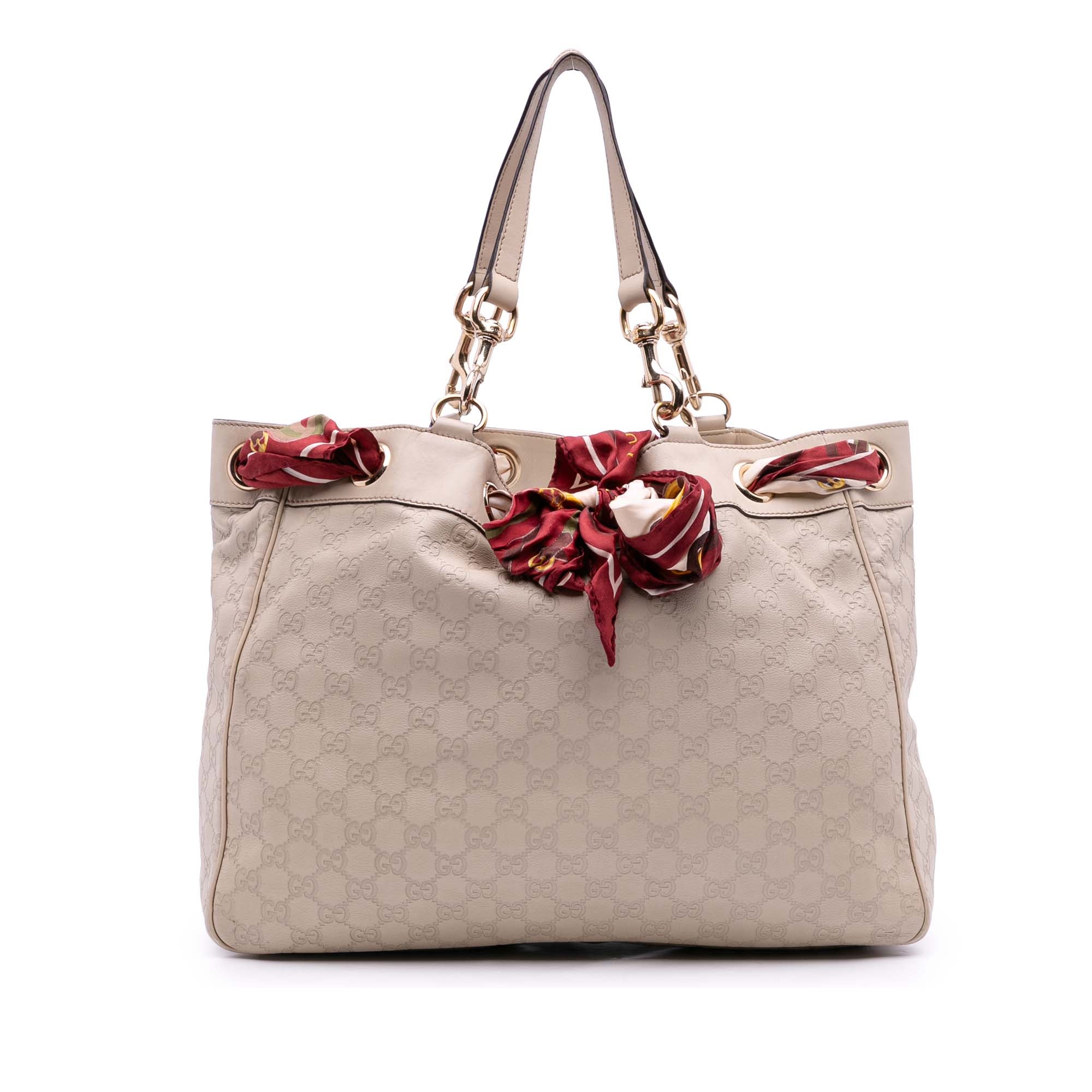 The Positano features an embossed leather body, flat leather strap, an open top with scarf drawstring detail, and interior zip and slip pockets. Retail Price: 1350.00