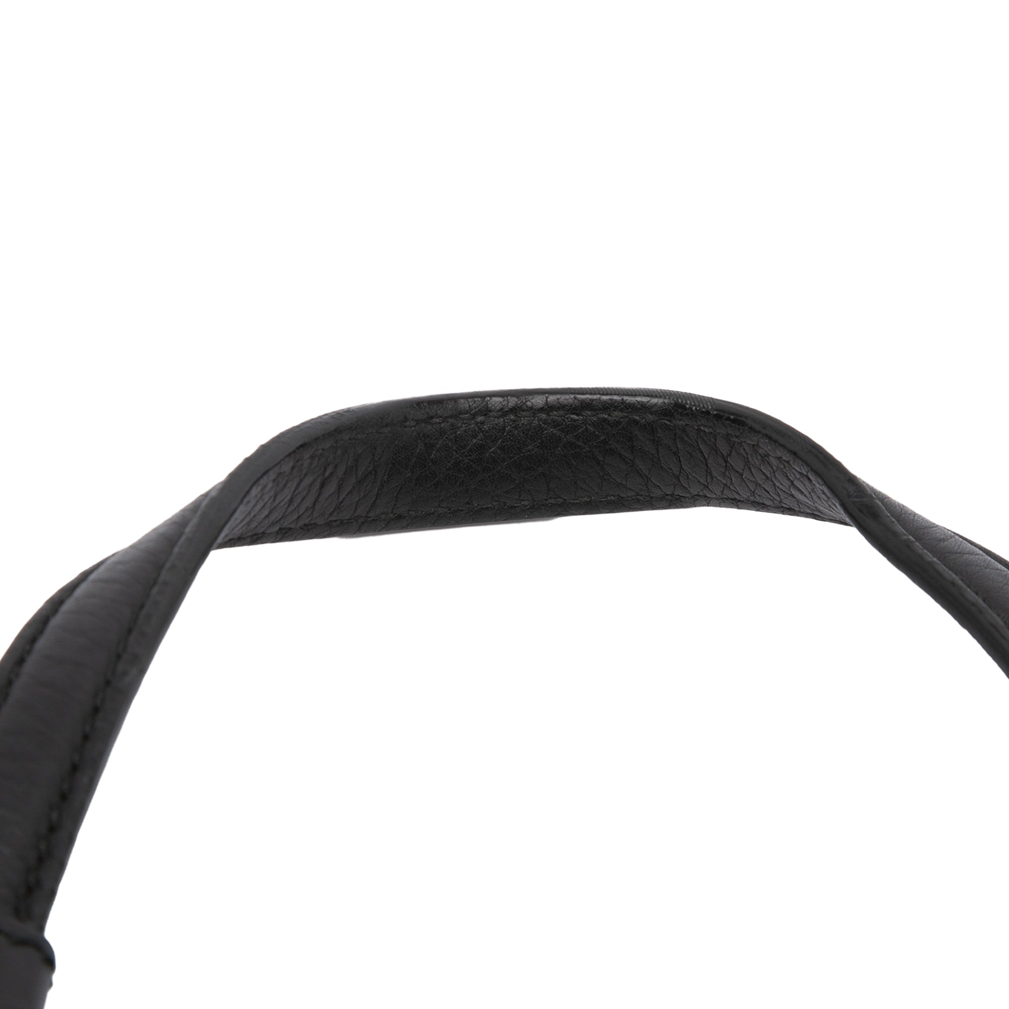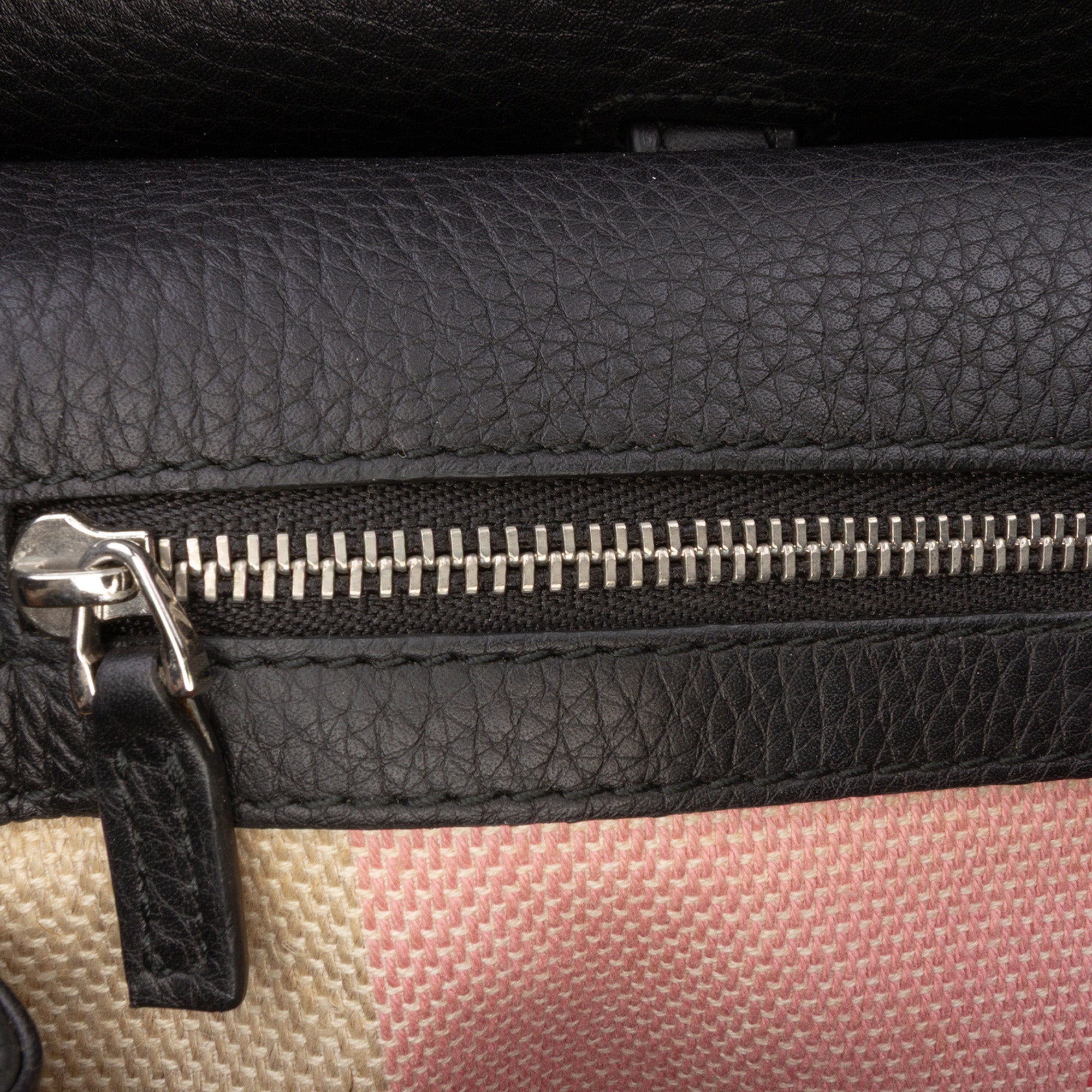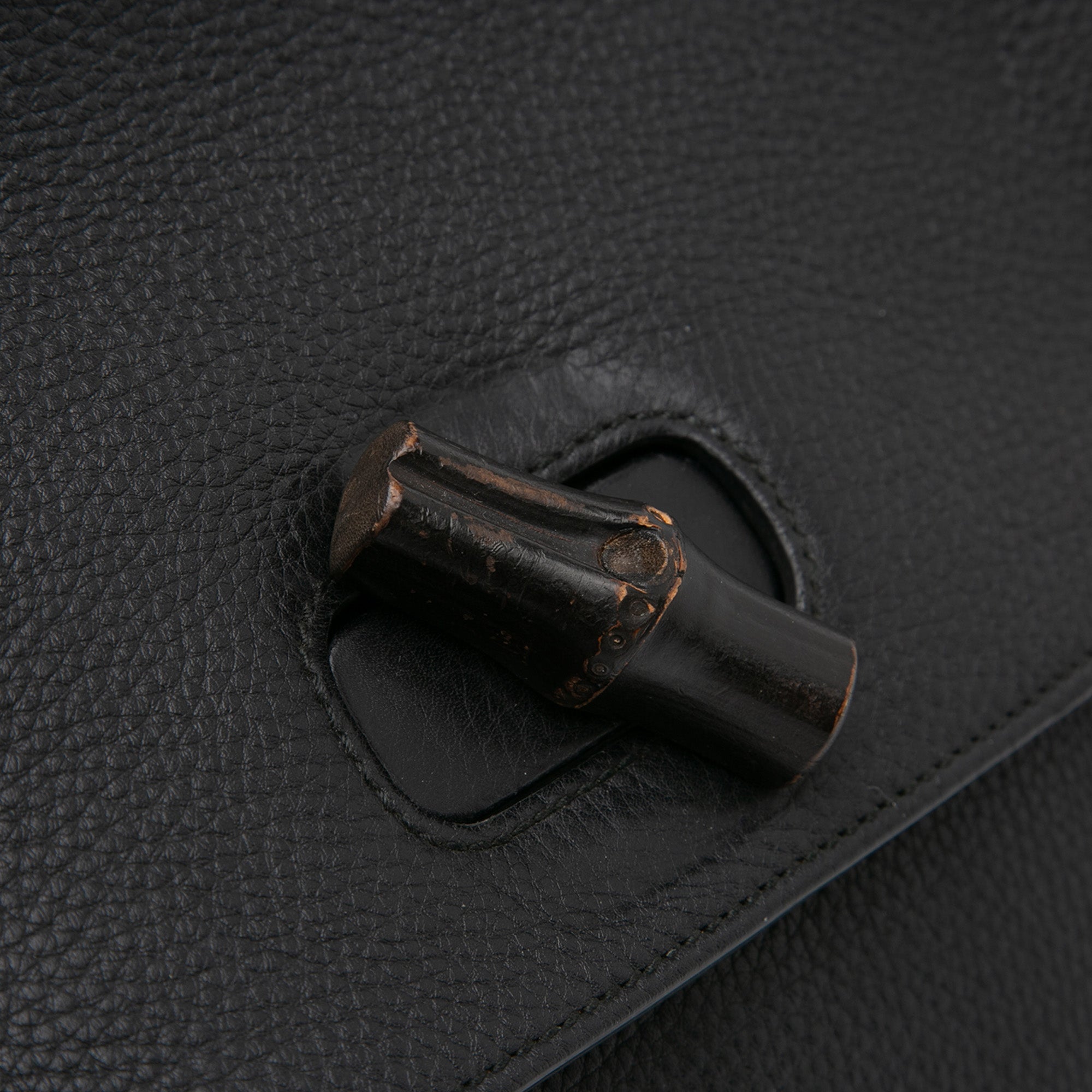 The Large Bamboo Daily Satchel features a leather body, a flat leather top handle, a detachable flat strap, a top flap with a bamboo twist lock closure, and interior zip and slip pockets. Retail Price: 2450.00
