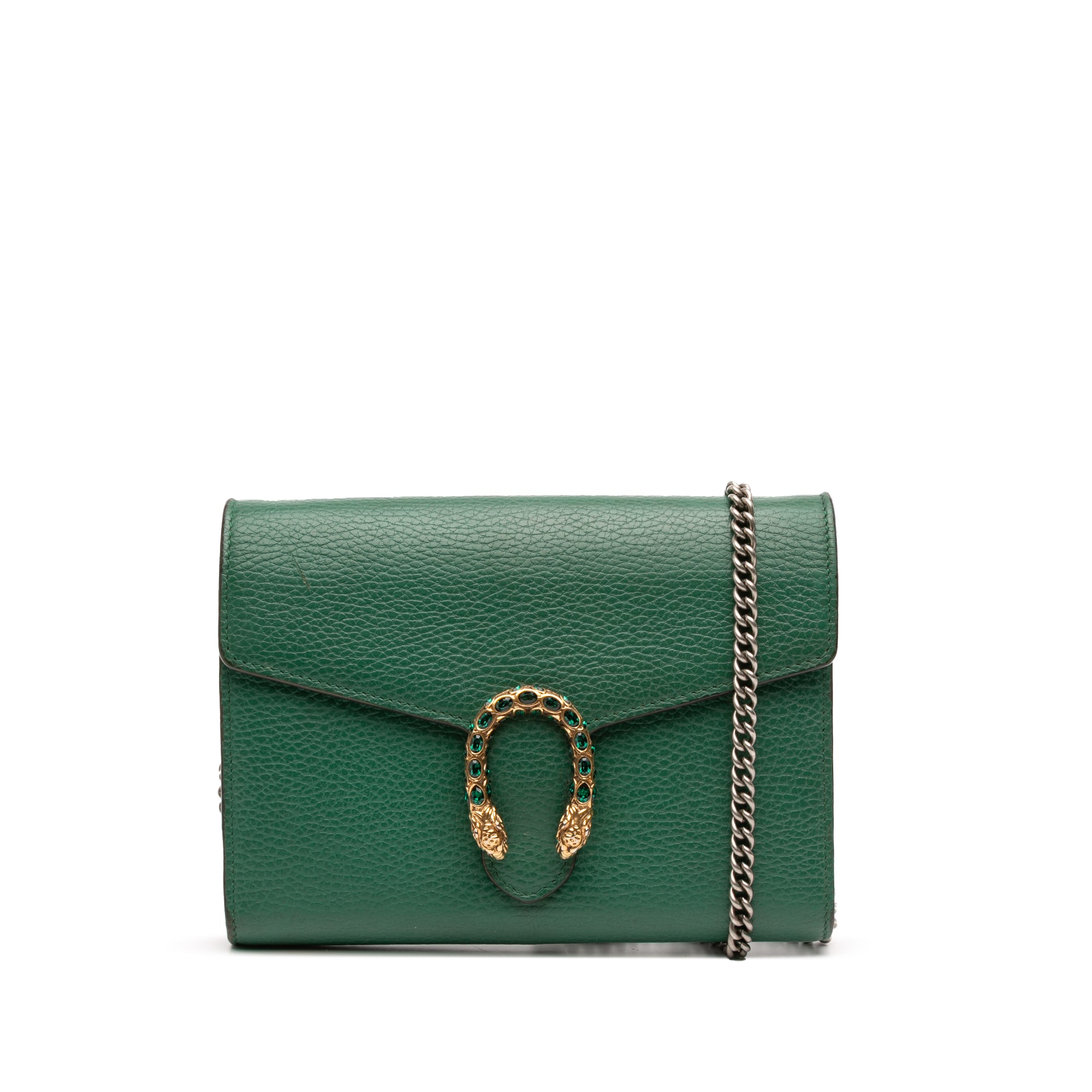 The Dionysus features a leather body, a chain link shoulder strap, a front flap with snap button closure, and interior zip and slip pockets. Inclusion: Dust bag. Retail Price: 1800.00