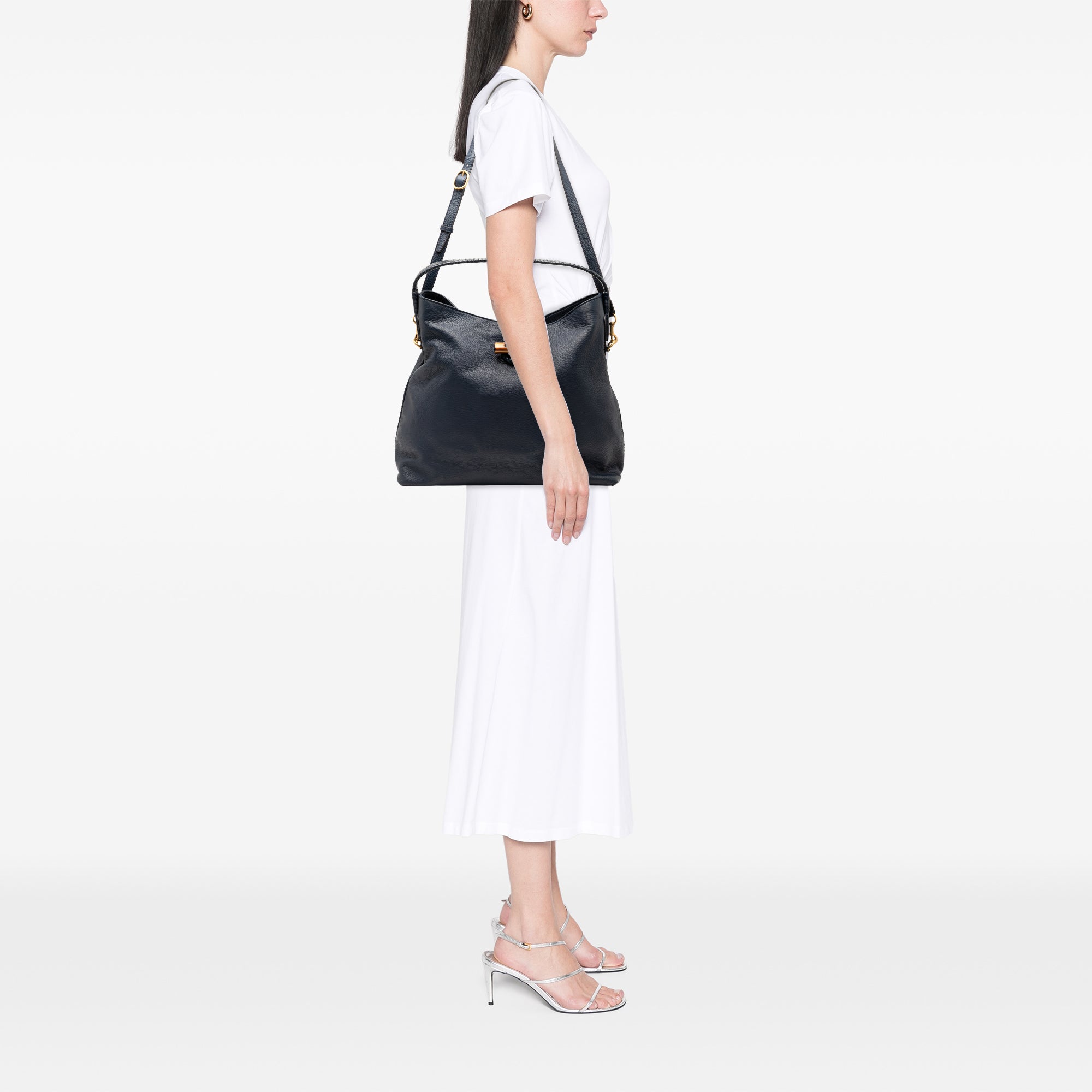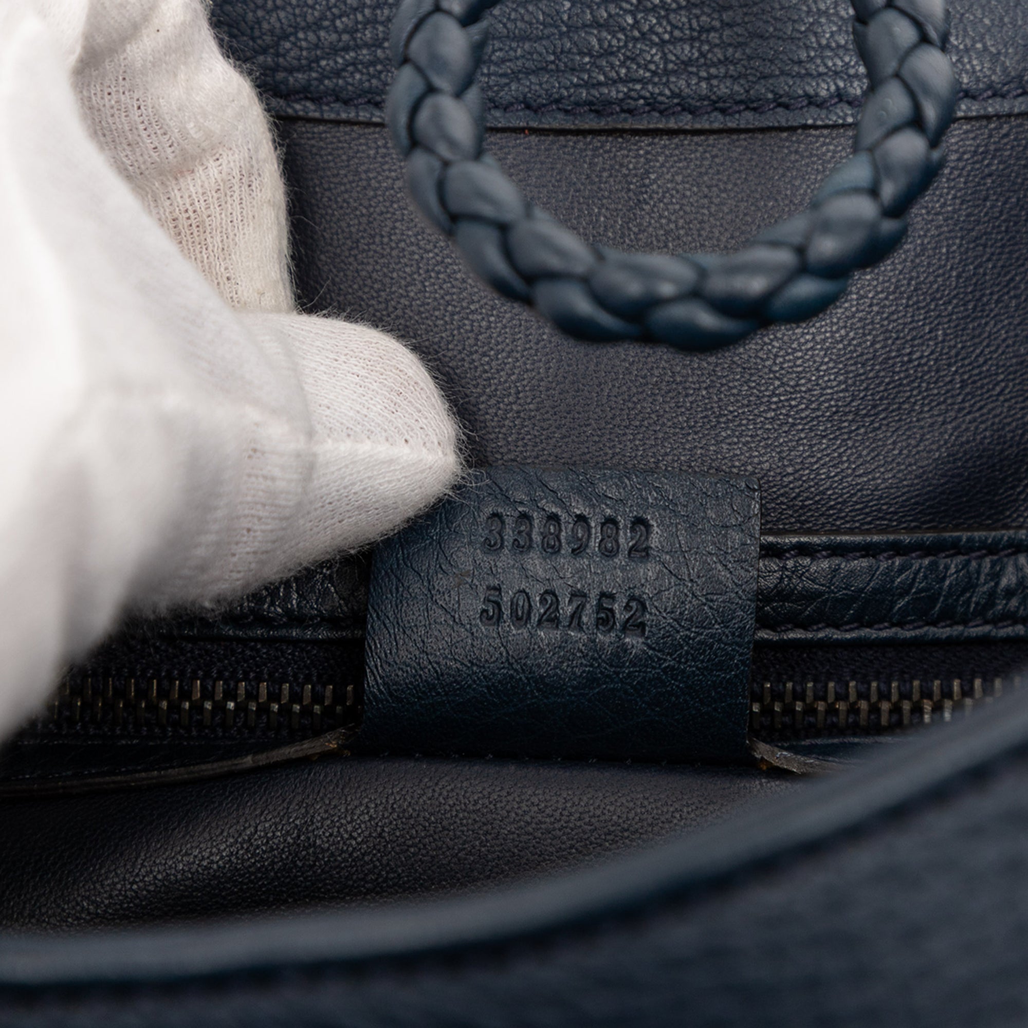 This satchel features a leather body, a braided flat strap, an adjustable and detachable flat shoulder strap, an open top with leather cord and bamboo toggle closure, and interior zip and slip pockets. Inclusion: Dust bag. Retail Price: 2900.00
