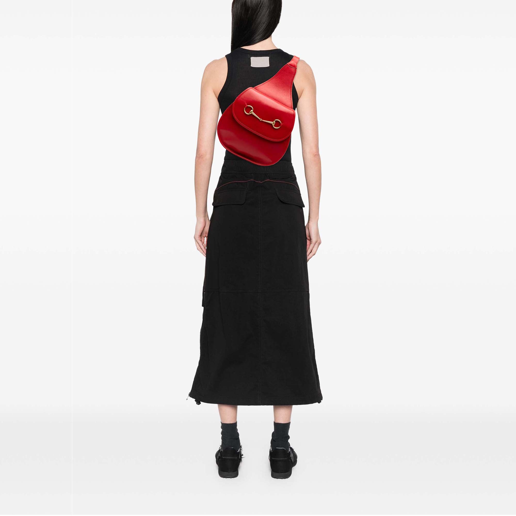 This sling bag features a calf leather body, a flat back strap, a front flap with a magnetic snap closure, and an interior zip pocket. Retail Price: 995.00