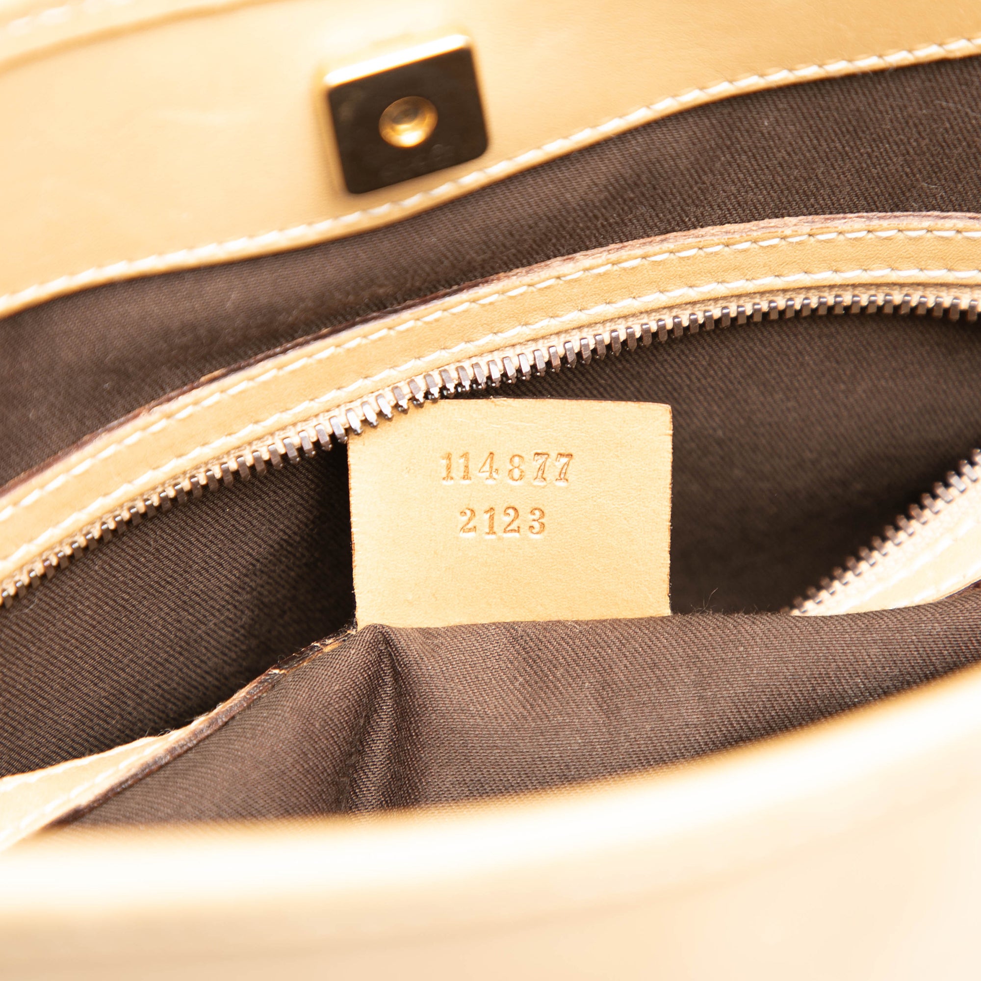 This shoulder bag features a leather body with gold-tone double G hardware, a flat leather strap, an open top with a magnetic closure, and an interior zip pocket. Inclusion: Dust bag. Retail Price: 850.00