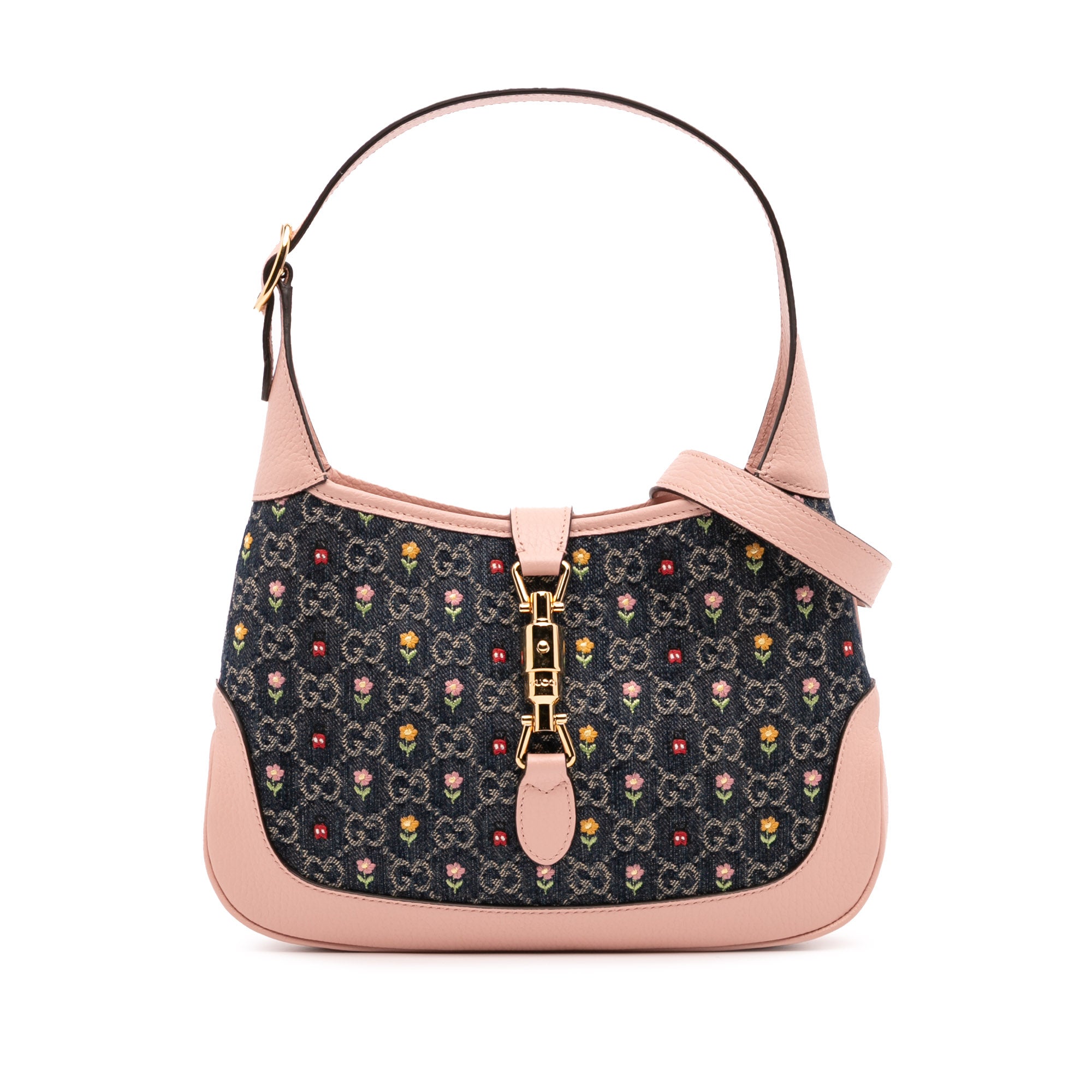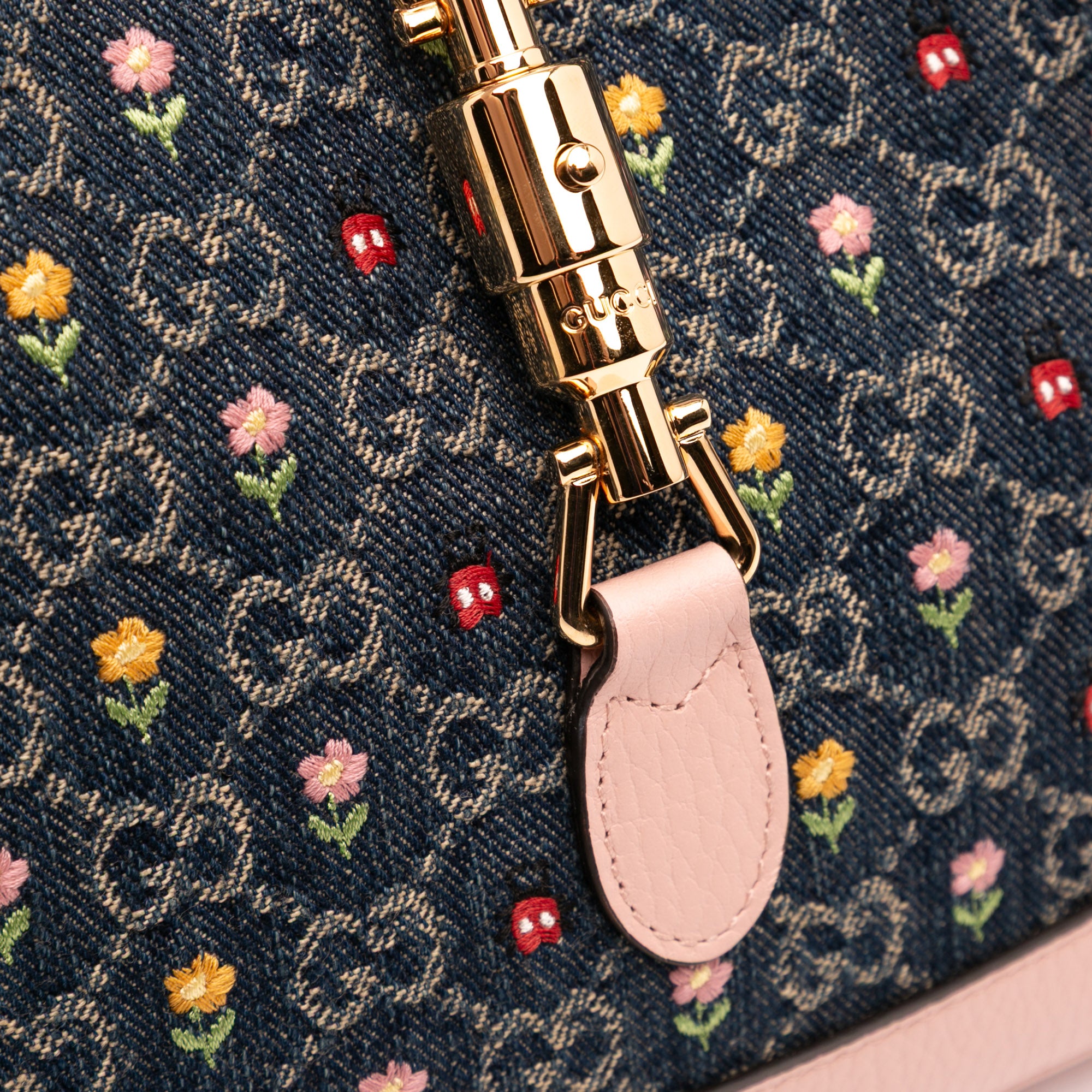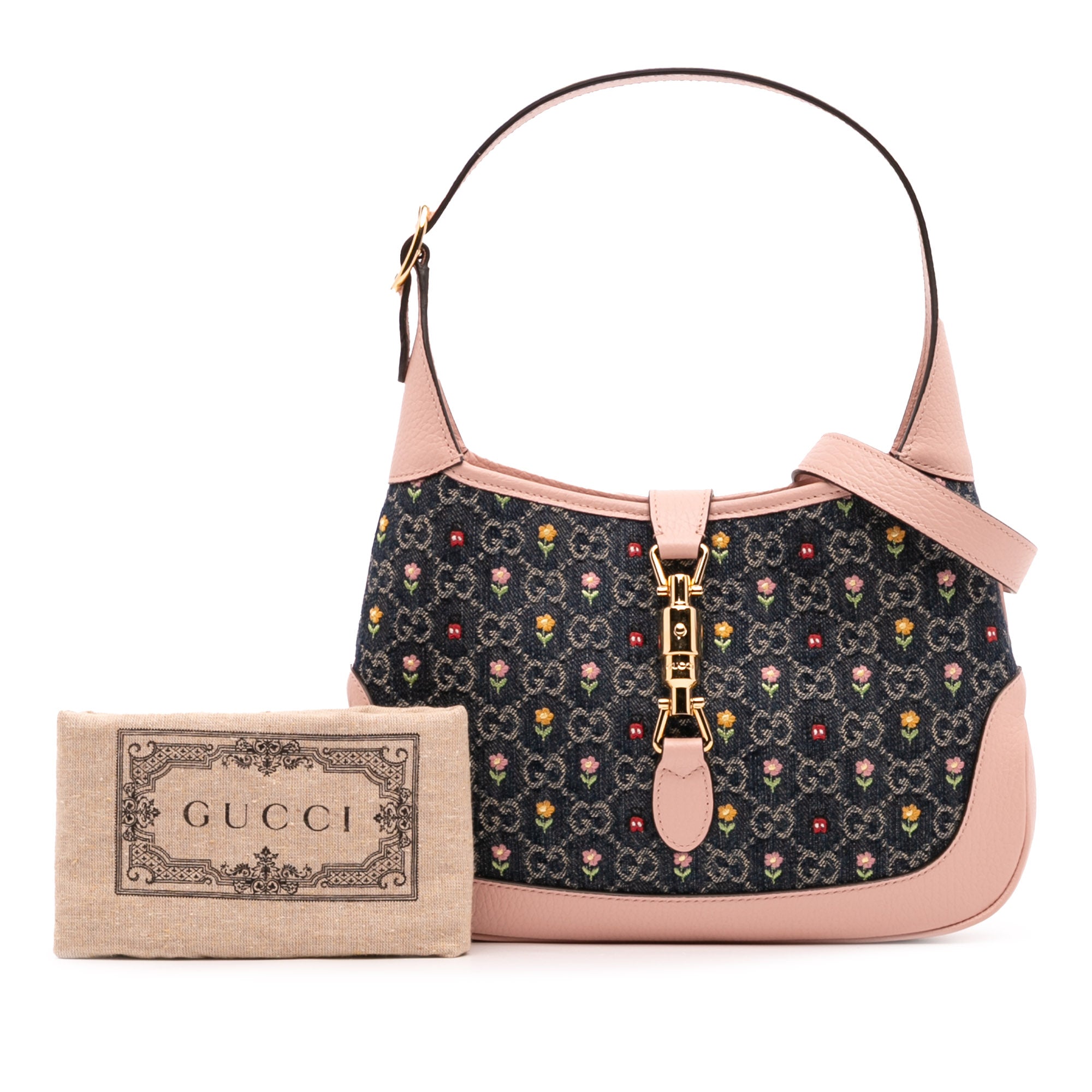 Gucci Limited Edition Small GG Denim Embroidered Floral Jackie 1961 Crossbody