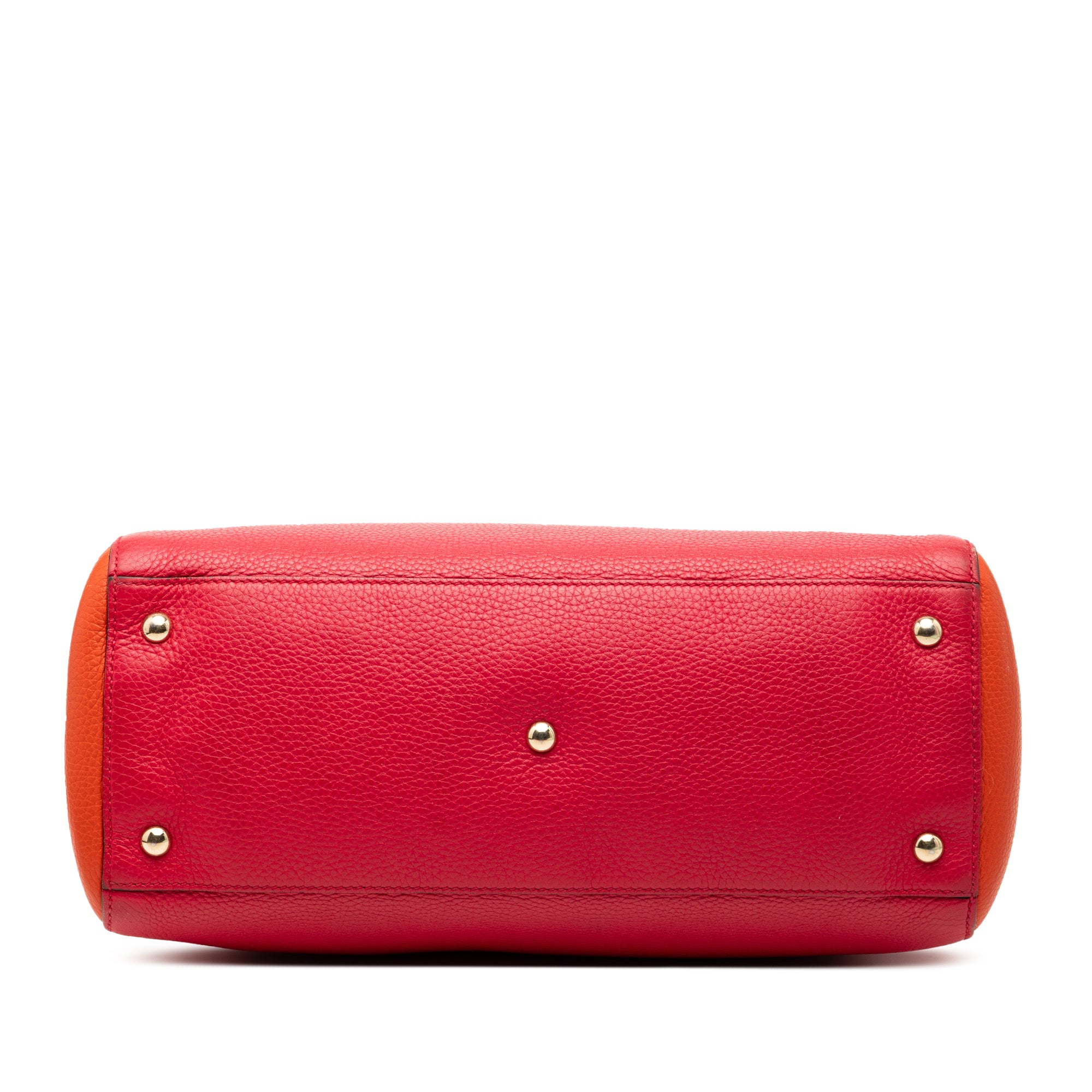 The Medium Bamboo Shopper features a bicolor leather body, bamboo top handles, a detachable and adjustable flat leather shoulder strap, an open top with magnetic snap closure, and interior zip and slip pockets. Retail Price: 2190.00